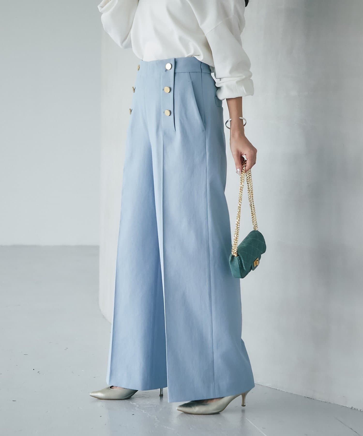 ゴールド釦が上品な大人のマリンパンツ