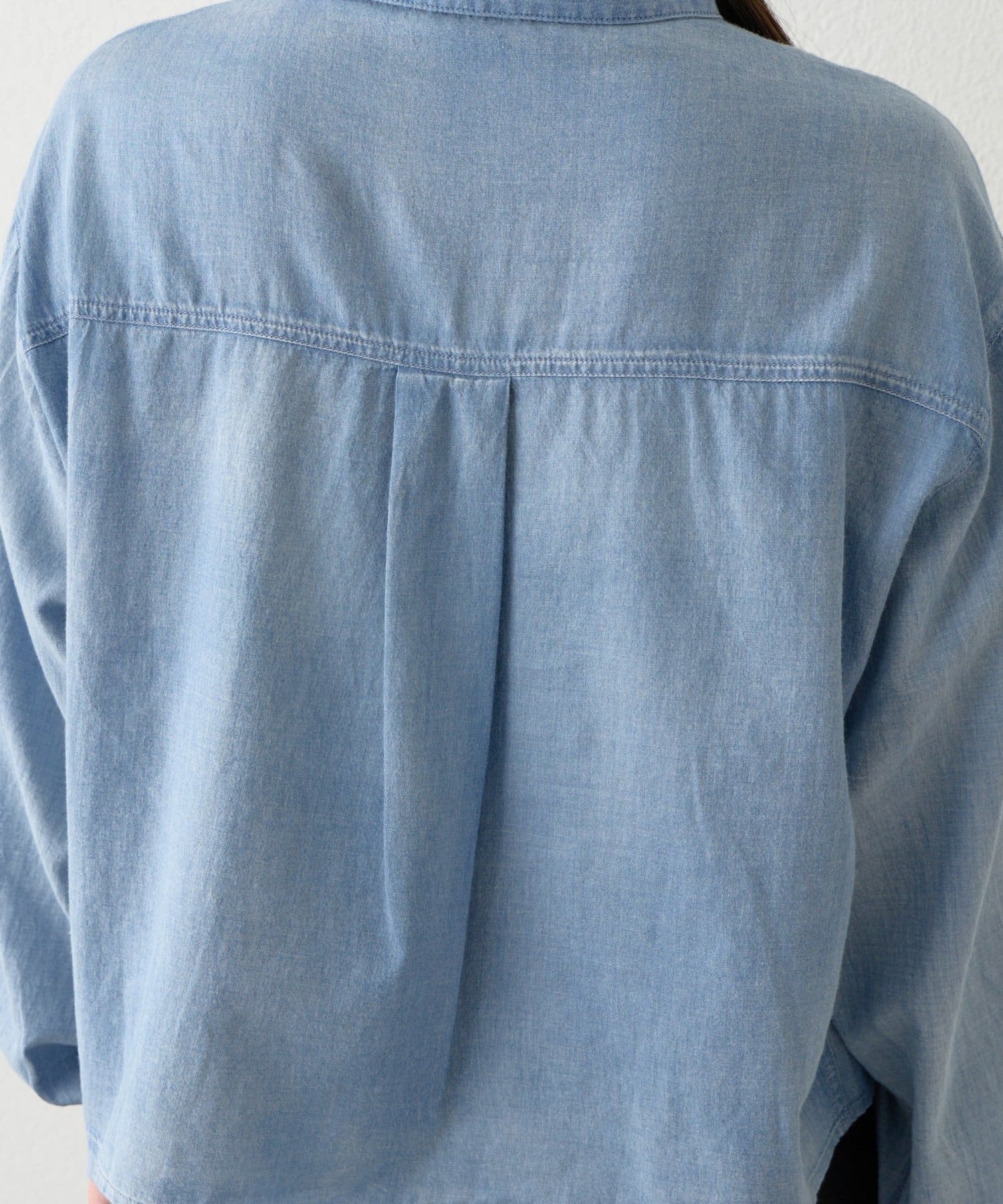 シアー感のあるライトオンスデニムが新鮮に見せてくれるクロップド丈のシャツ。