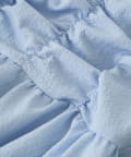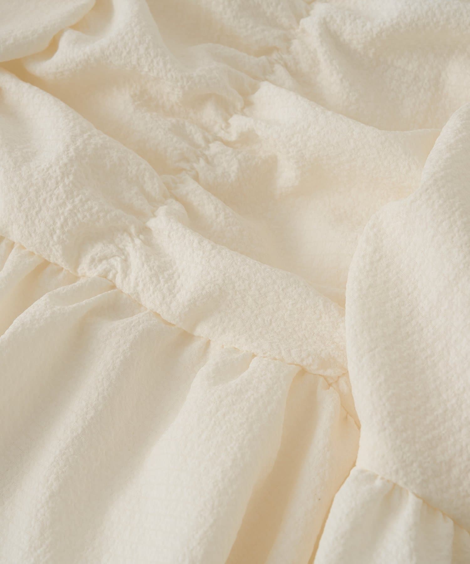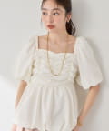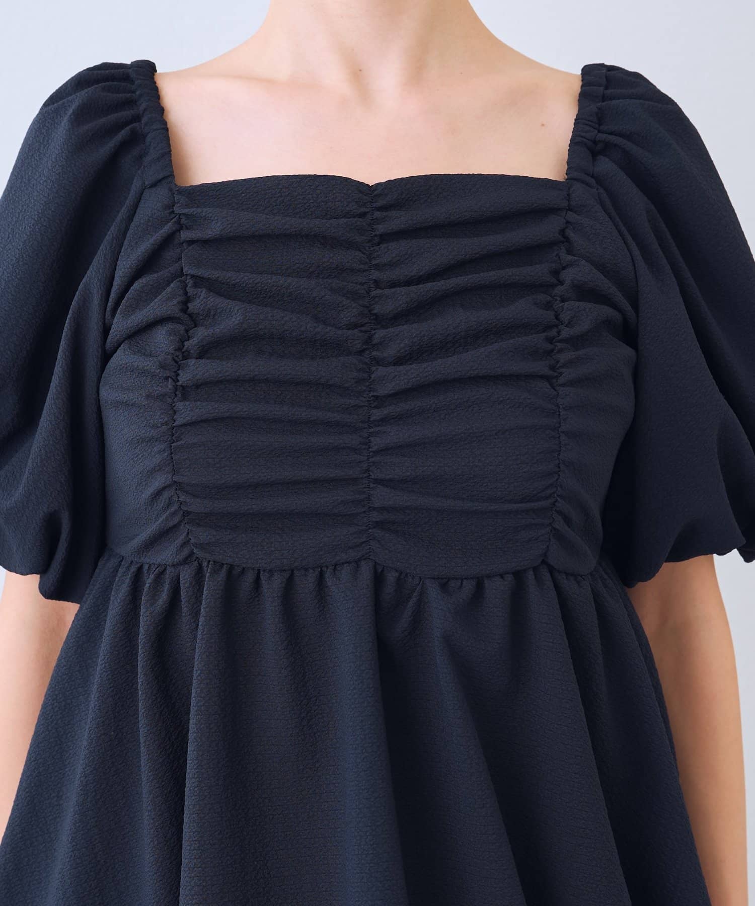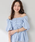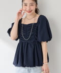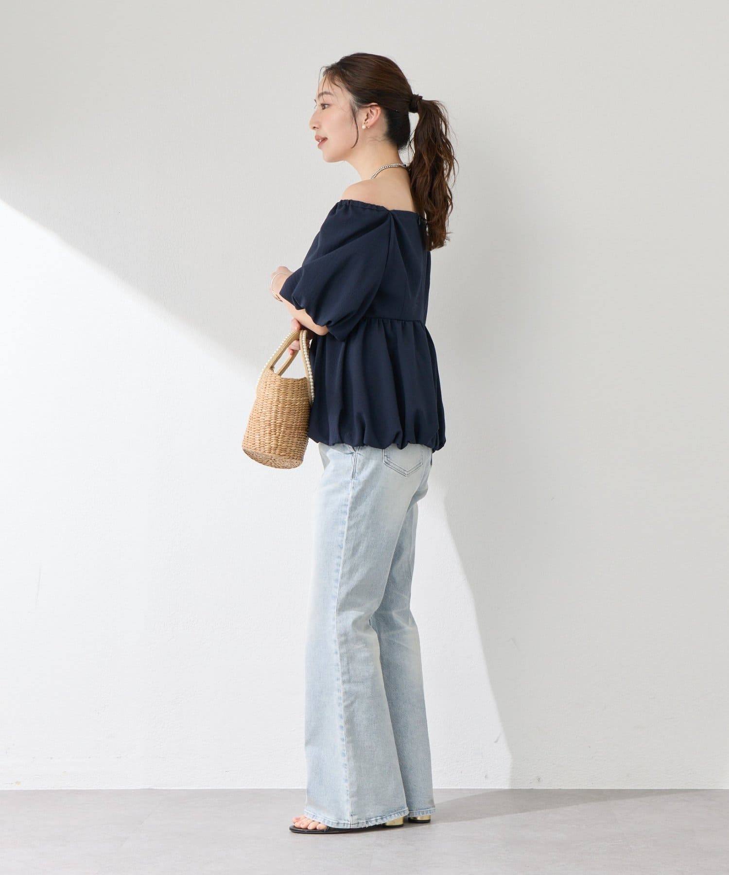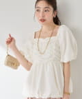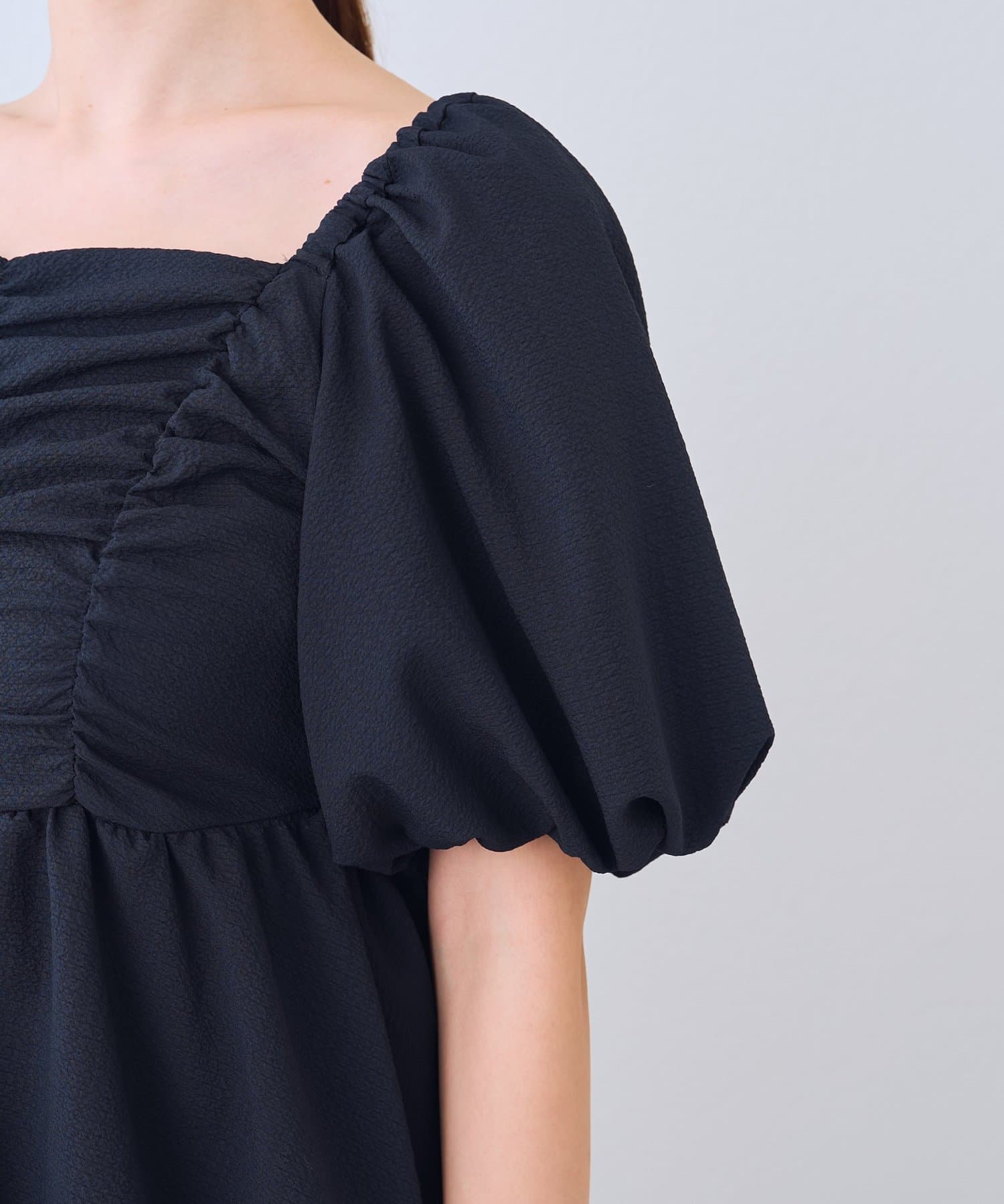 ふんわりとしたボリュームスリーブと、裾に向かって広がるペプラムシルエットが