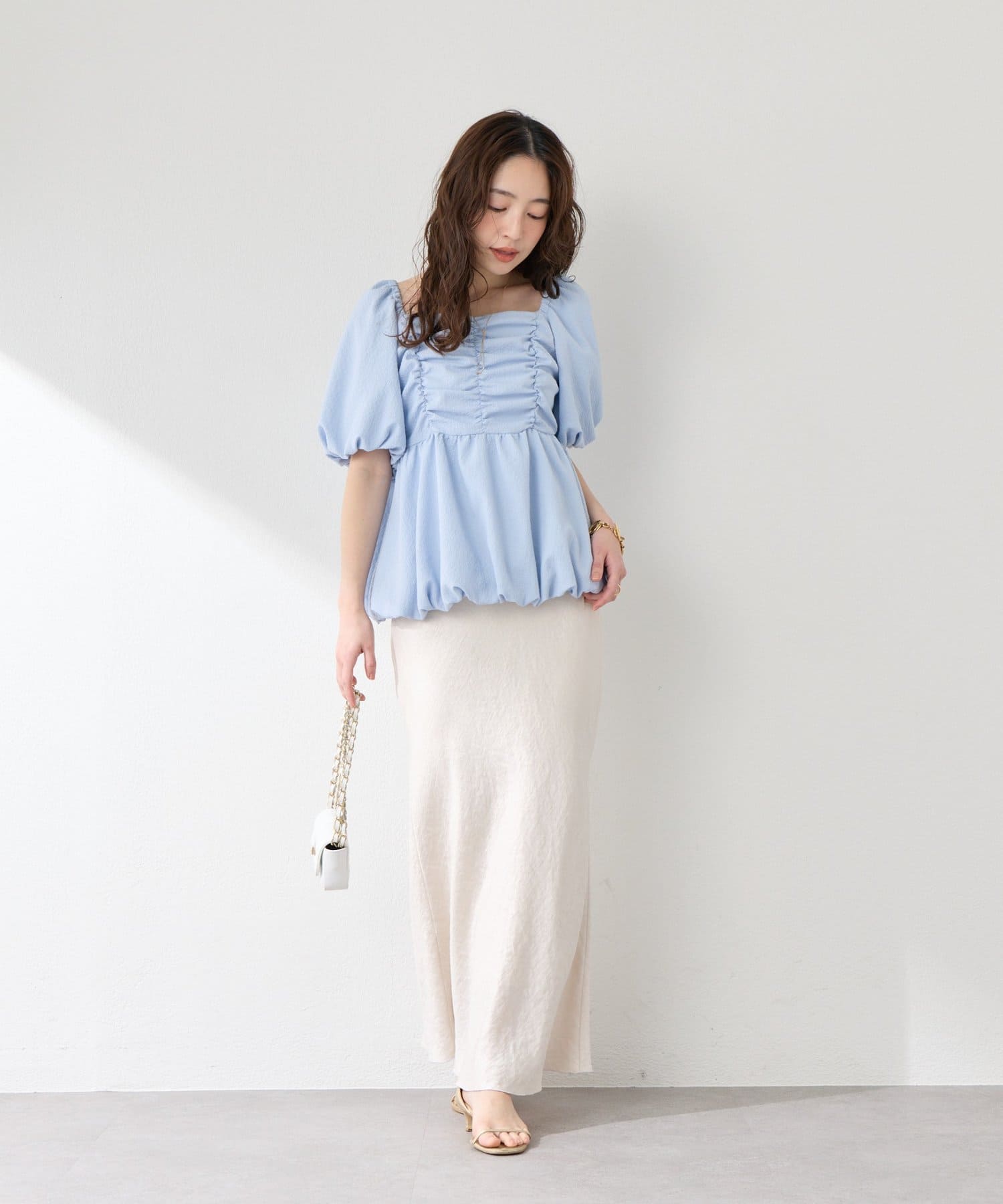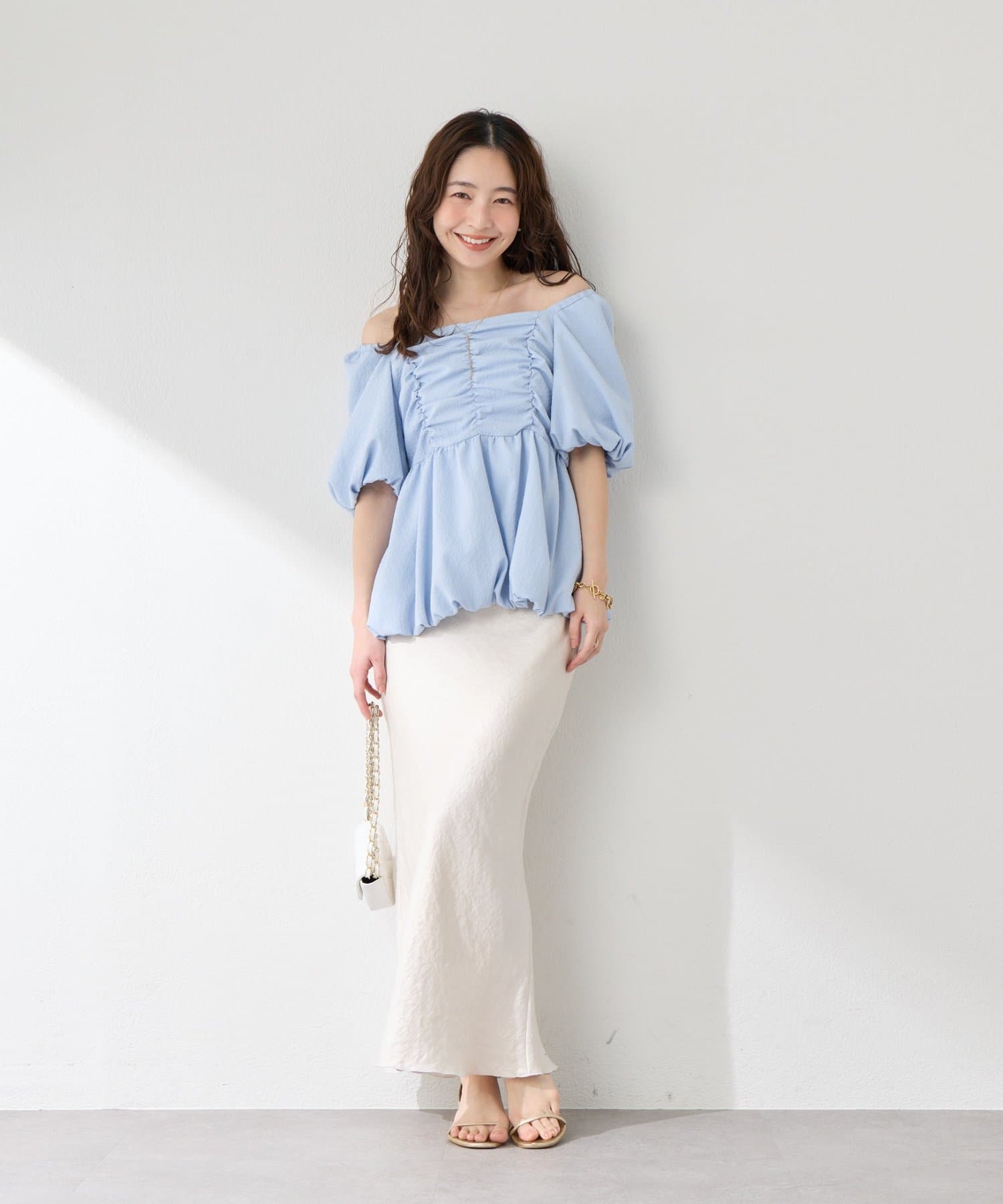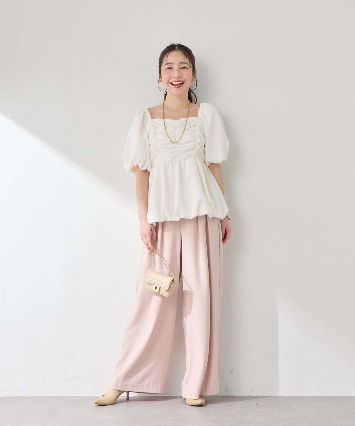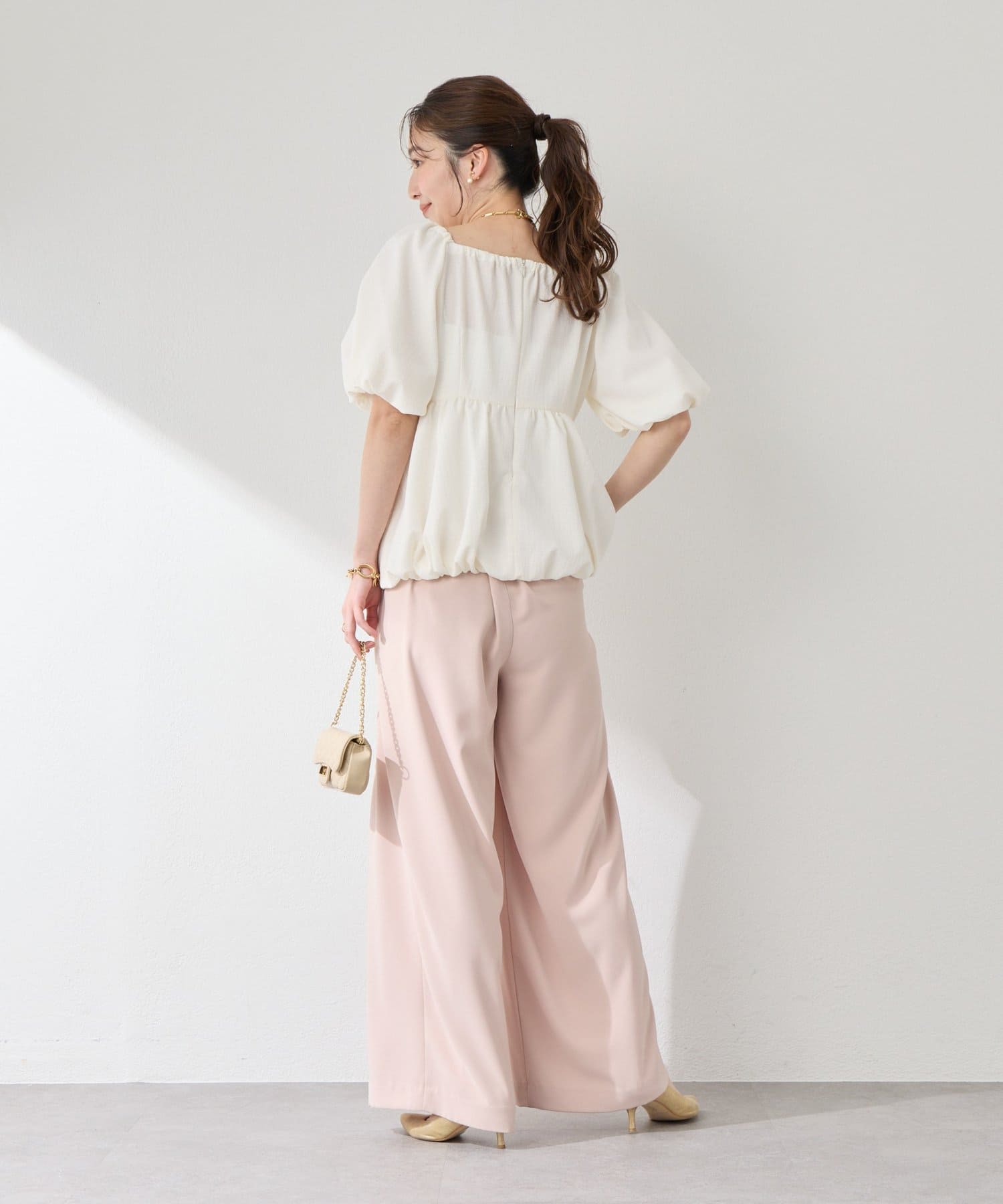 ボリュームのあるブラウスなので、シンプルなタイトスカートやワイドパンツ合わせがお勧めです。