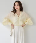 • La boutique BonBon(ラブティックボンボン) 【復刻・新色イエロー登場!】リボンボリュームスリーブシアーブラウス
