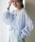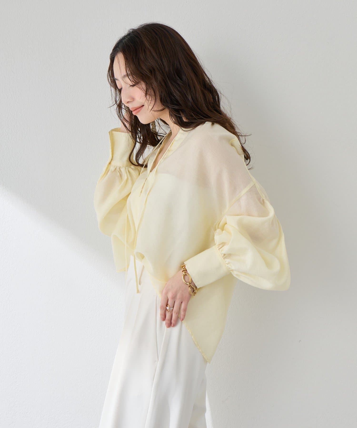 【復刻・新色イエロー登場!】リボンボリュームスリーブシアーブラウス