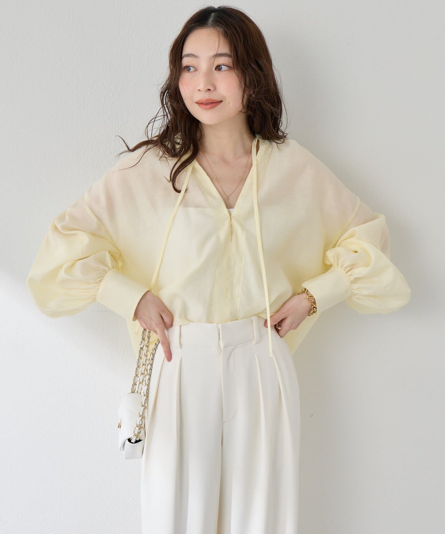 TOP > La boutique BonBon > レディース > トップス > シャツ/ブラウス(プルオーバー) > 【復刻・新色イエロー登場!】リボンボリュームスリーブシアーブラウス