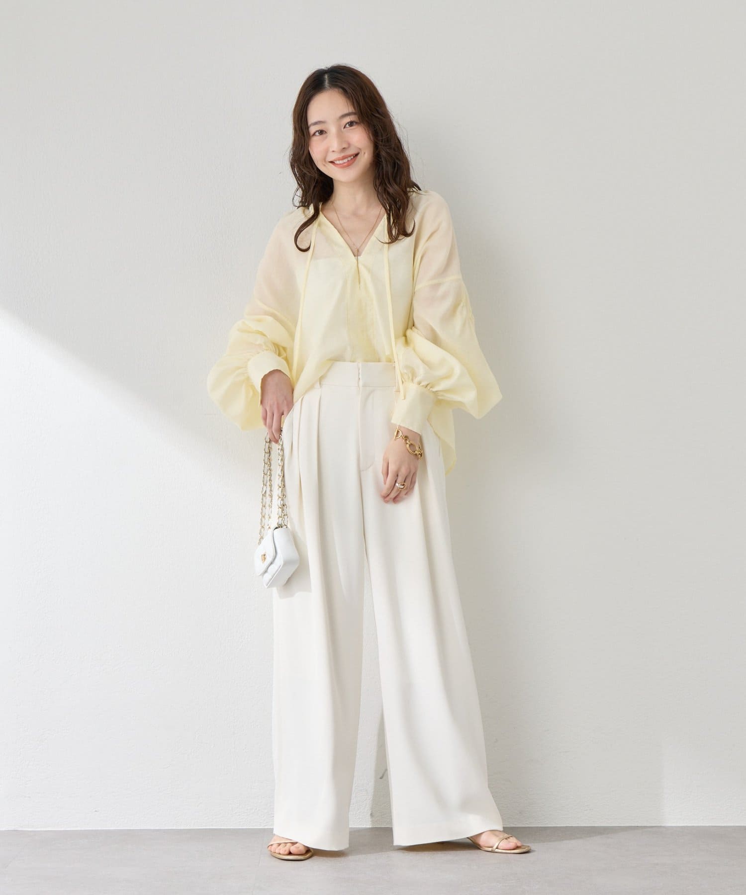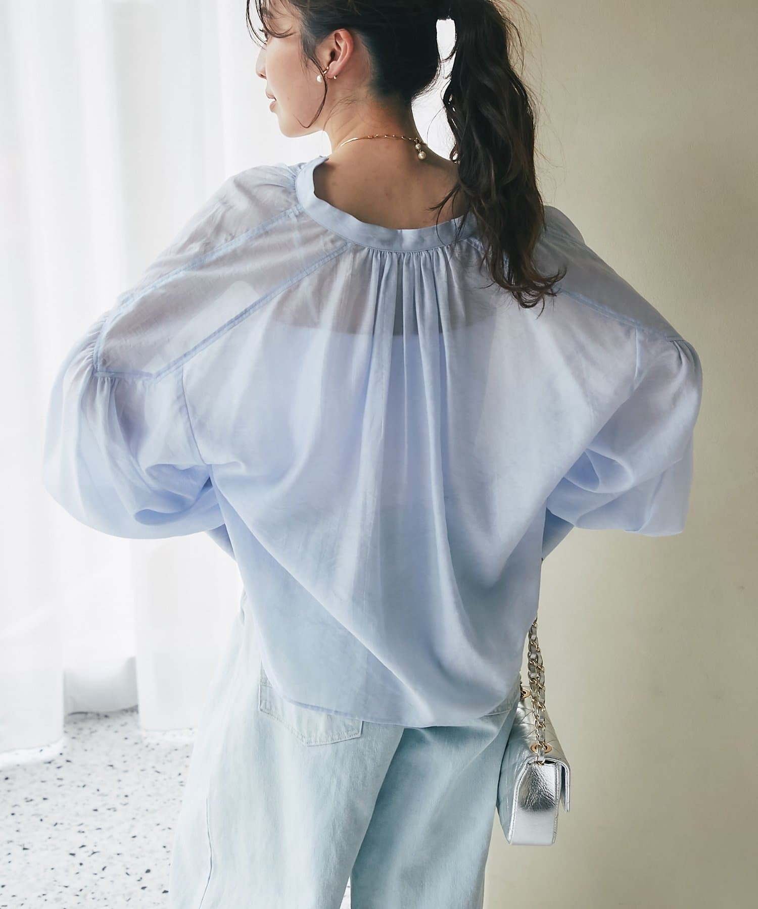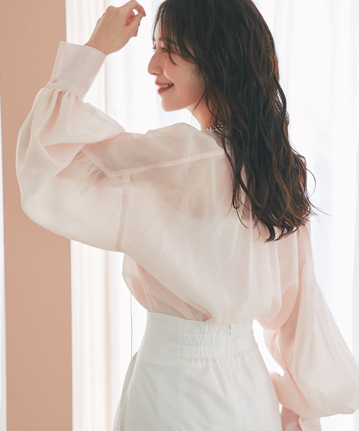 程よい透け感のあるバルーンスリーブは、腕を華奢に見せ女性らしい優しさをプラス。