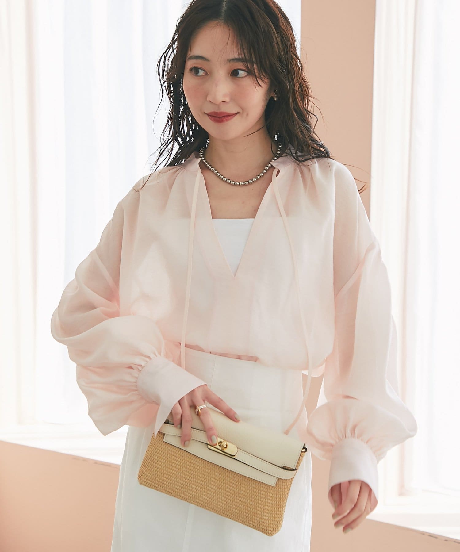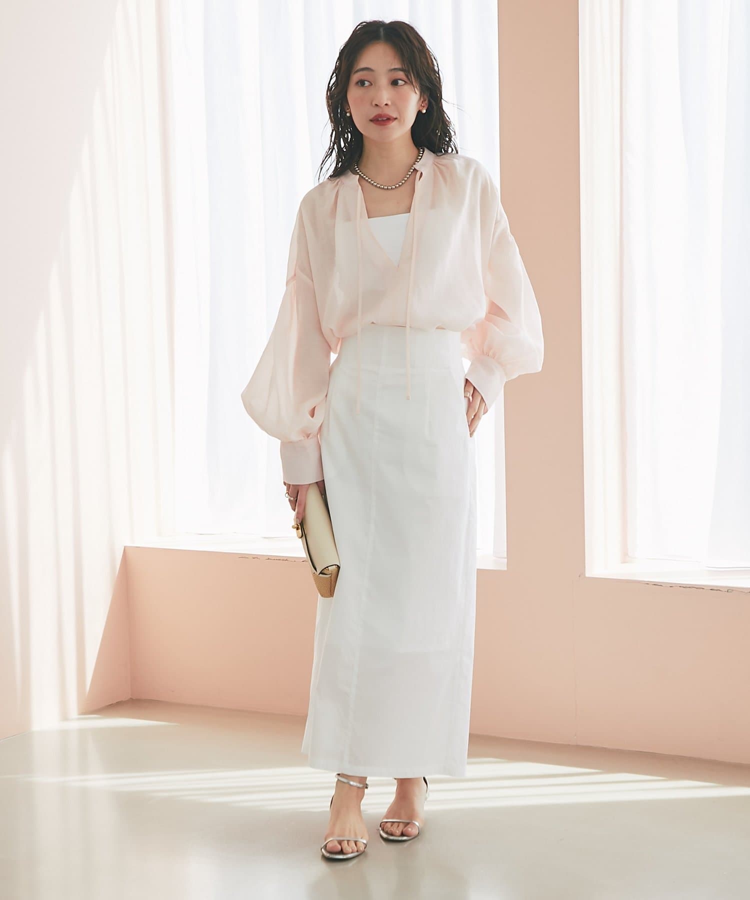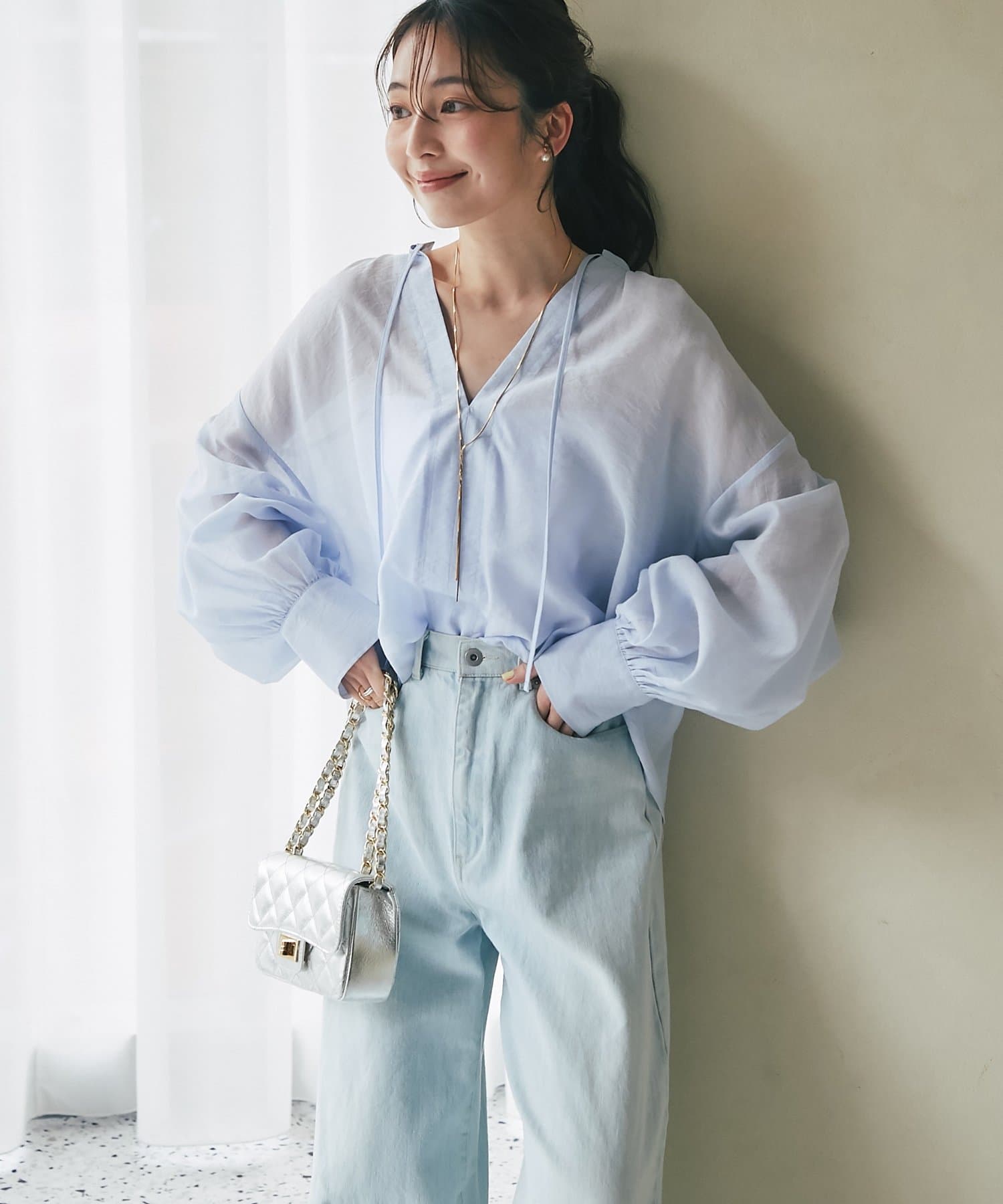 程よい透け感のあるバルーンスリーブは、腕を華奢に見せ女性らしい優しさをプラス。