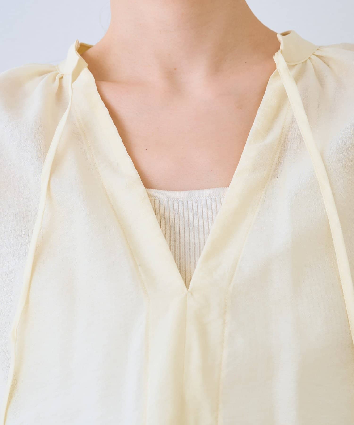 清涼感と上品さを兼ね備えた大人のブラウス