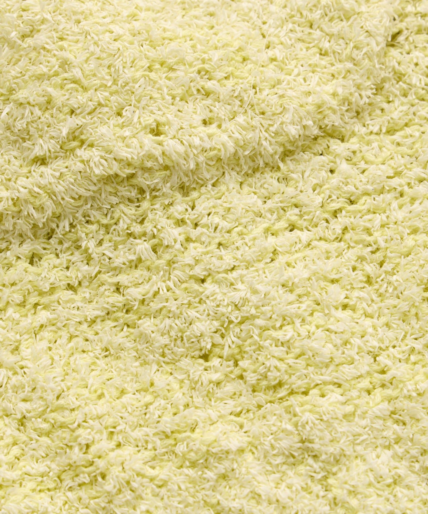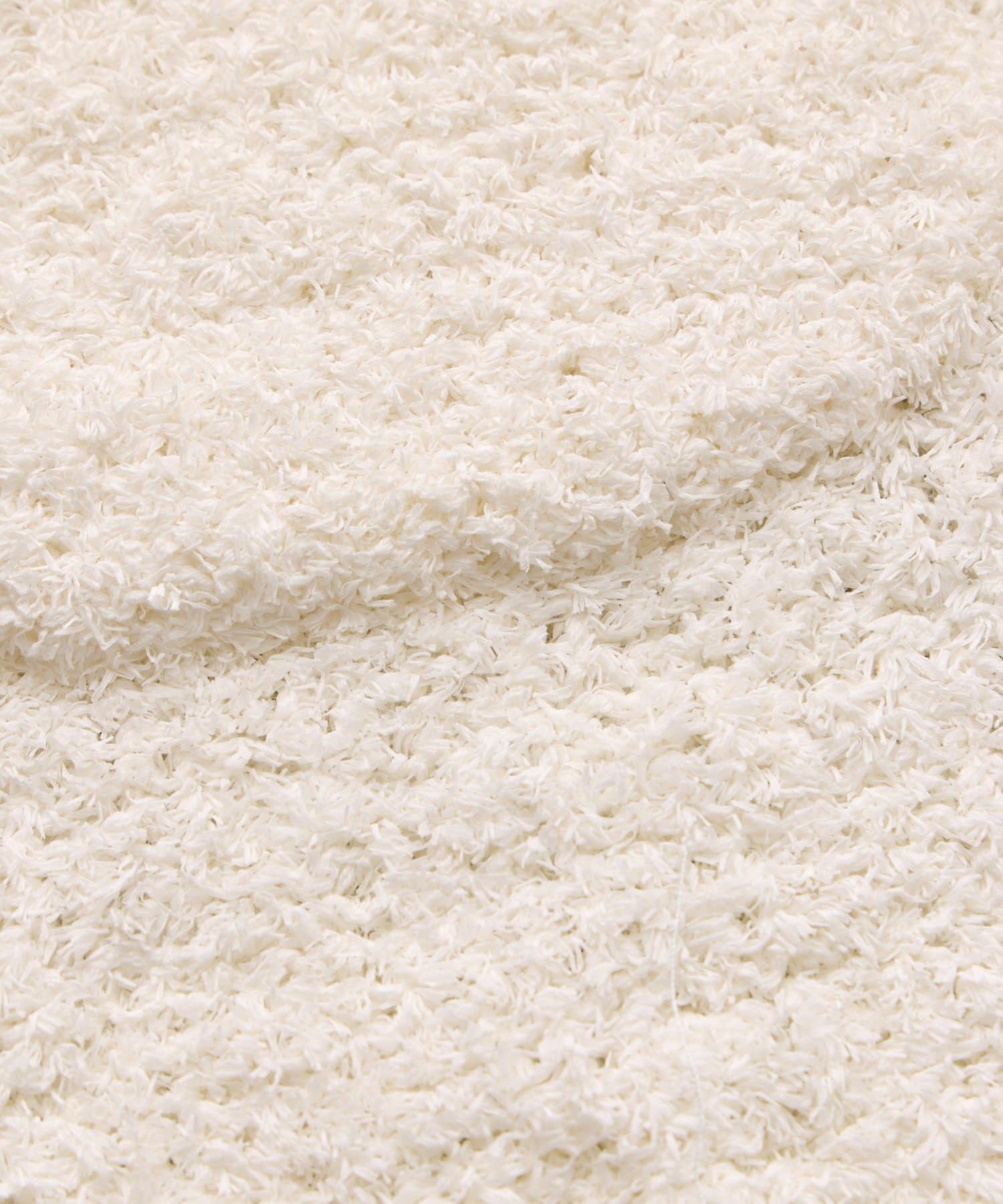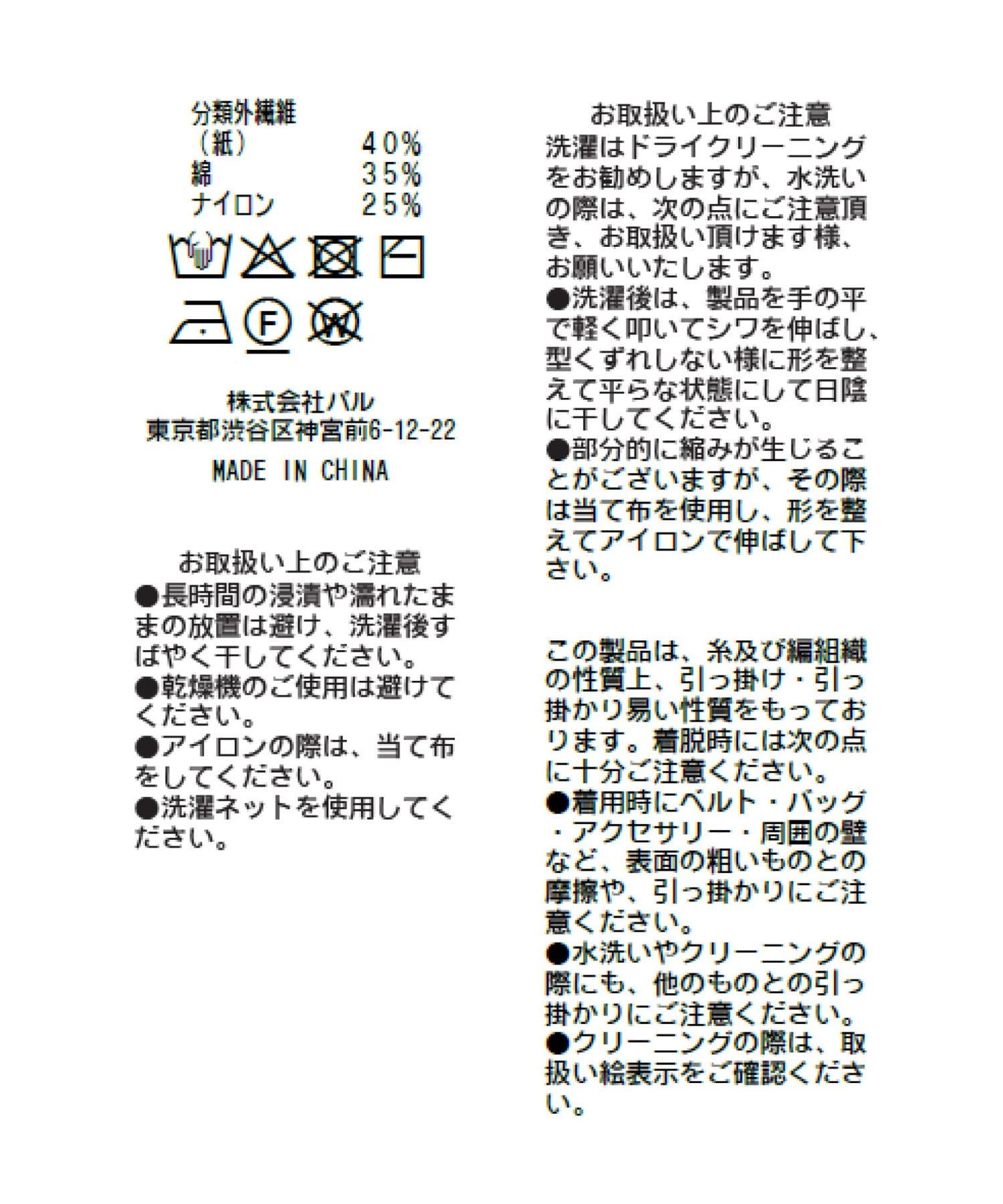 ペーパーヤーンにコットンとナイロンを入れたフサフサと表情のある特徴的な糸を使用。