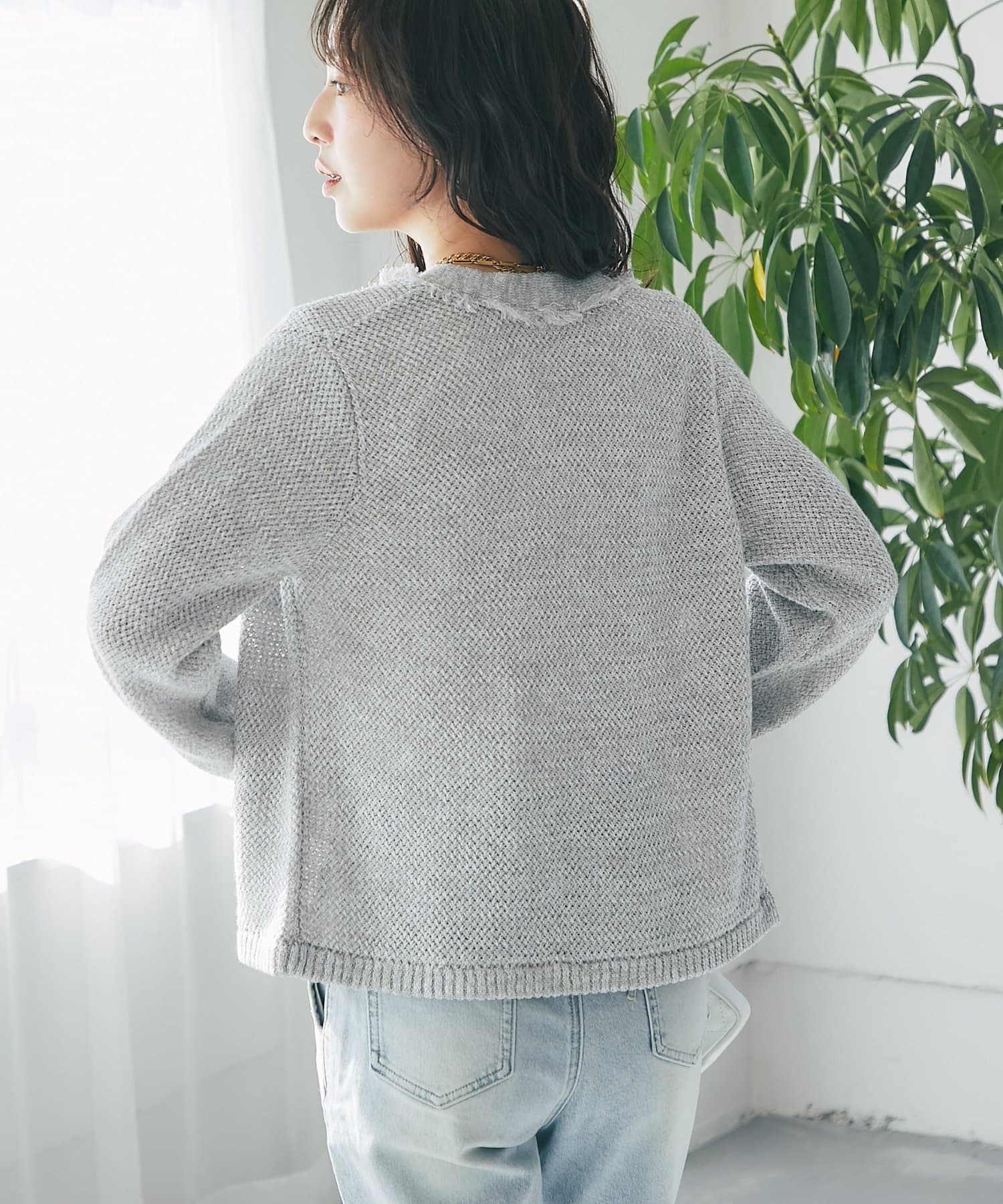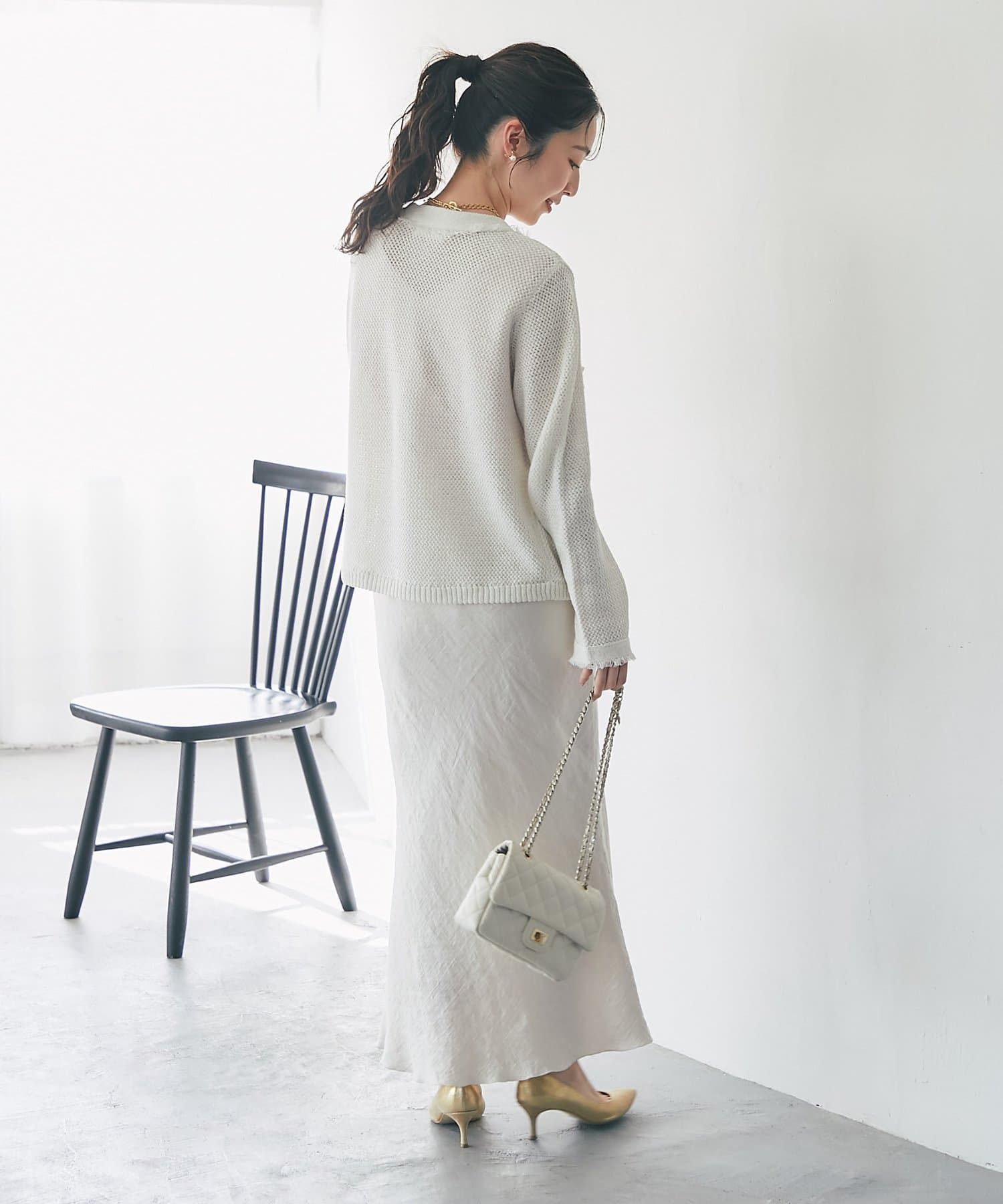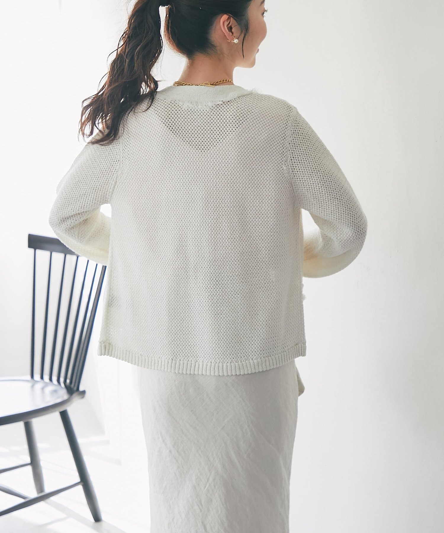 軽やかな透け感と凹凸のある編地が、女性らしく上品な表情を演出します。
