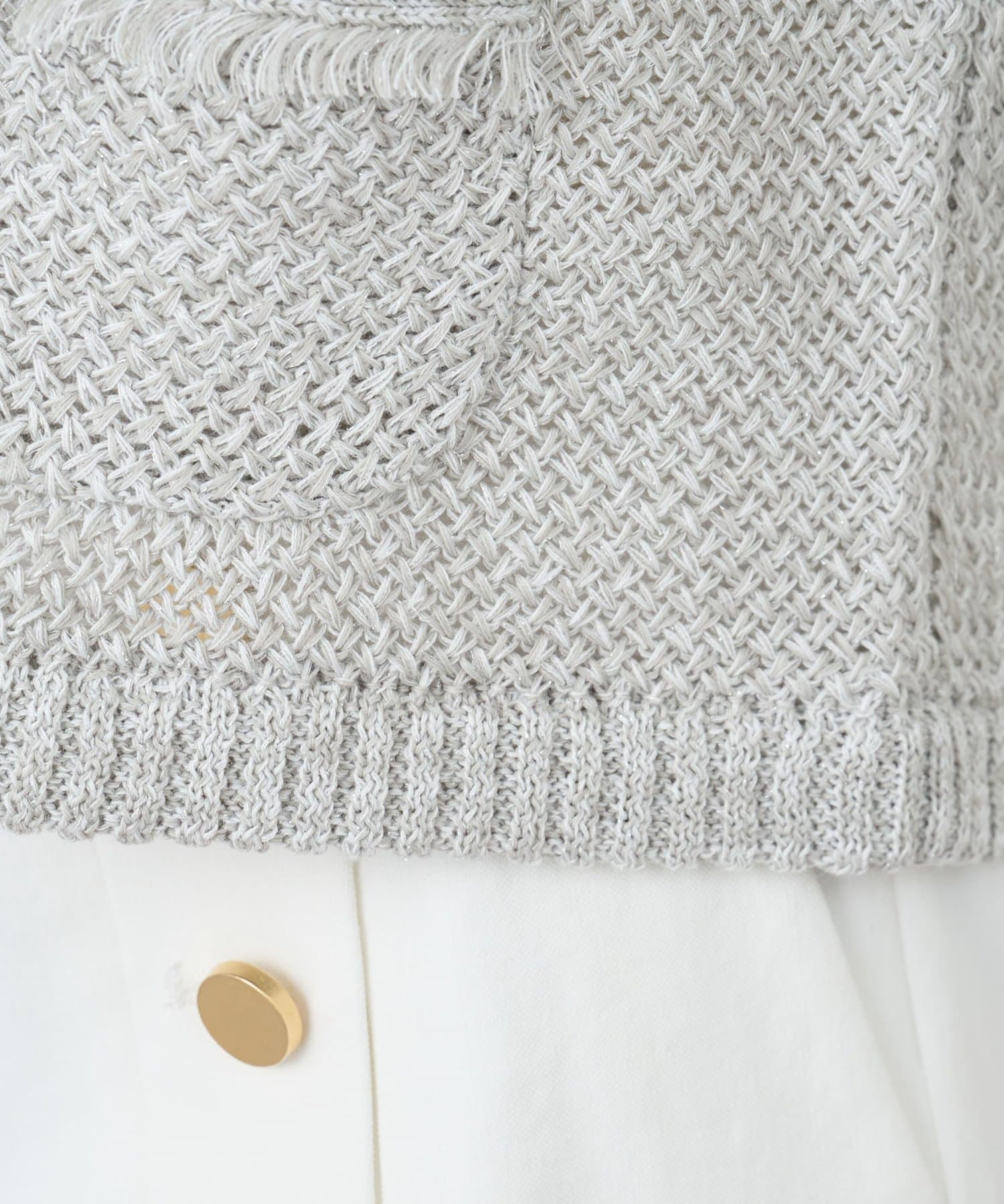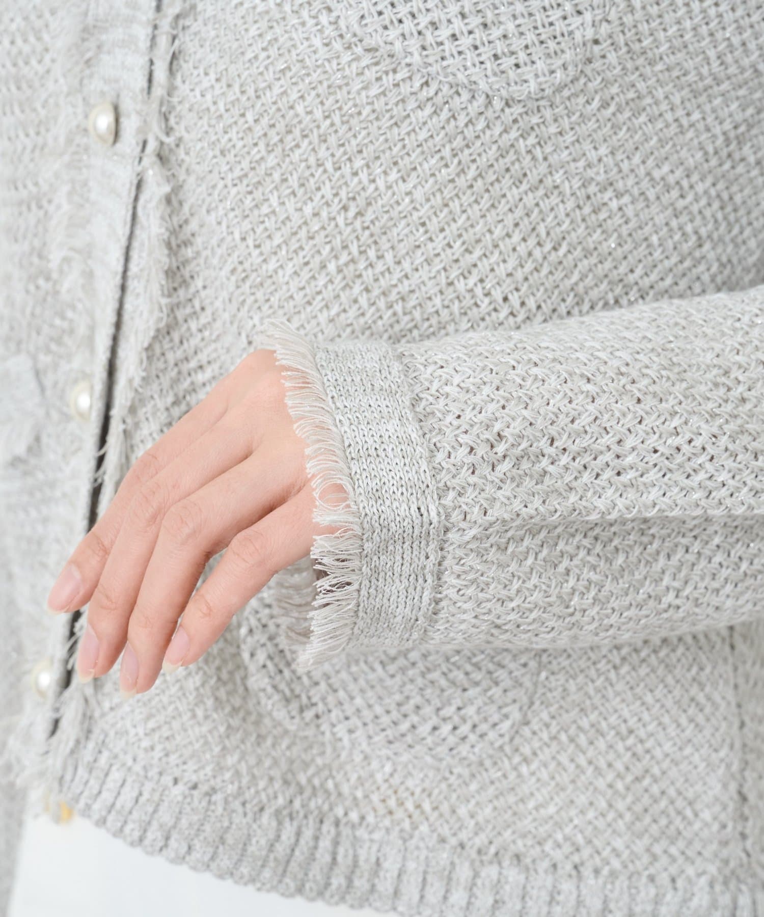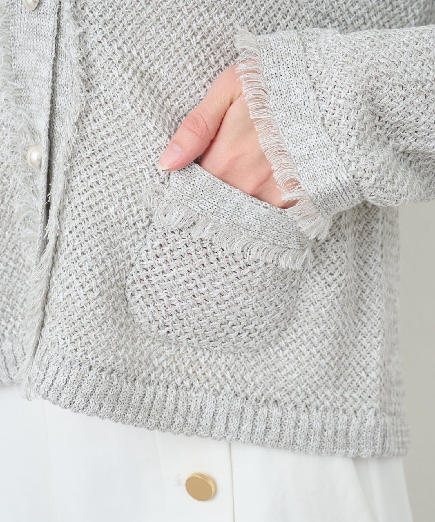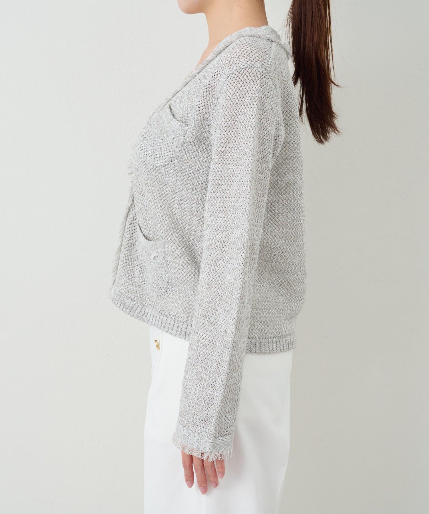 【オフでもオフィスでも】綿麻ラメバスケットカーディガン