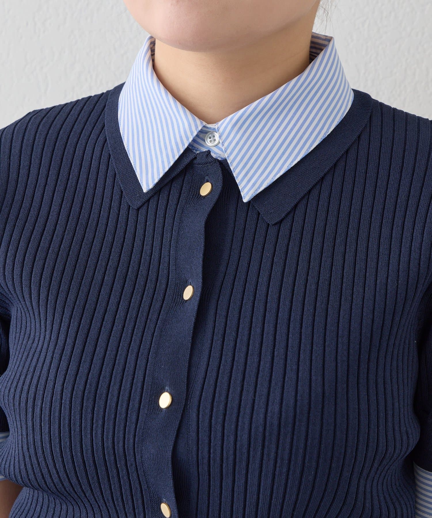 夏も快適に着られる衿付きニットカーディガン。