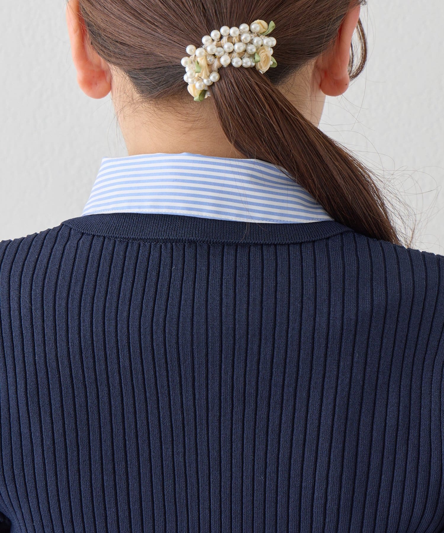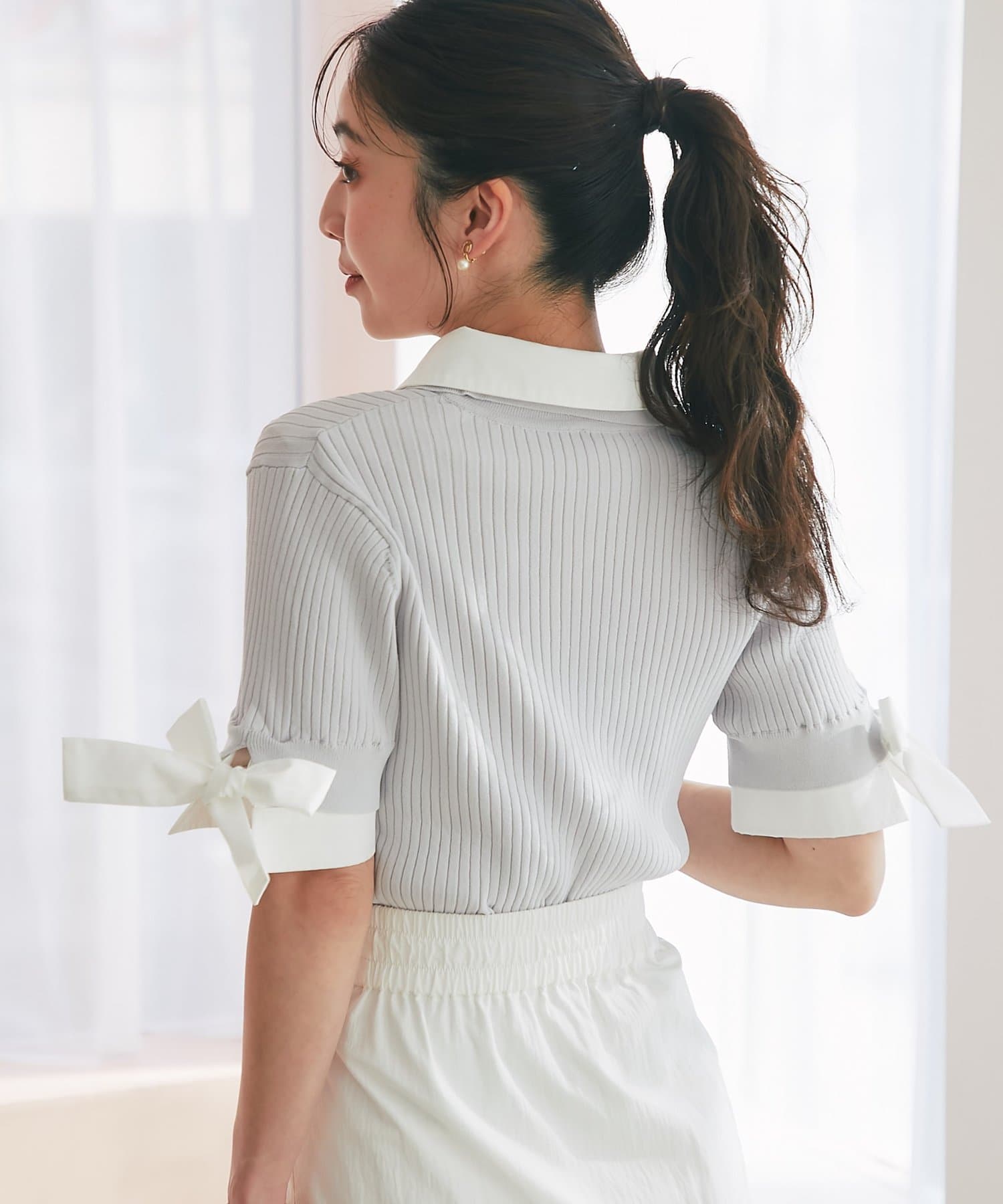 リブ編みのコンパクトなシルエットが、上品で清楚な印象を演出します。