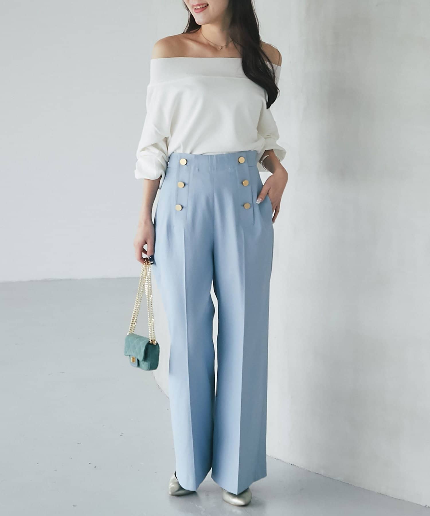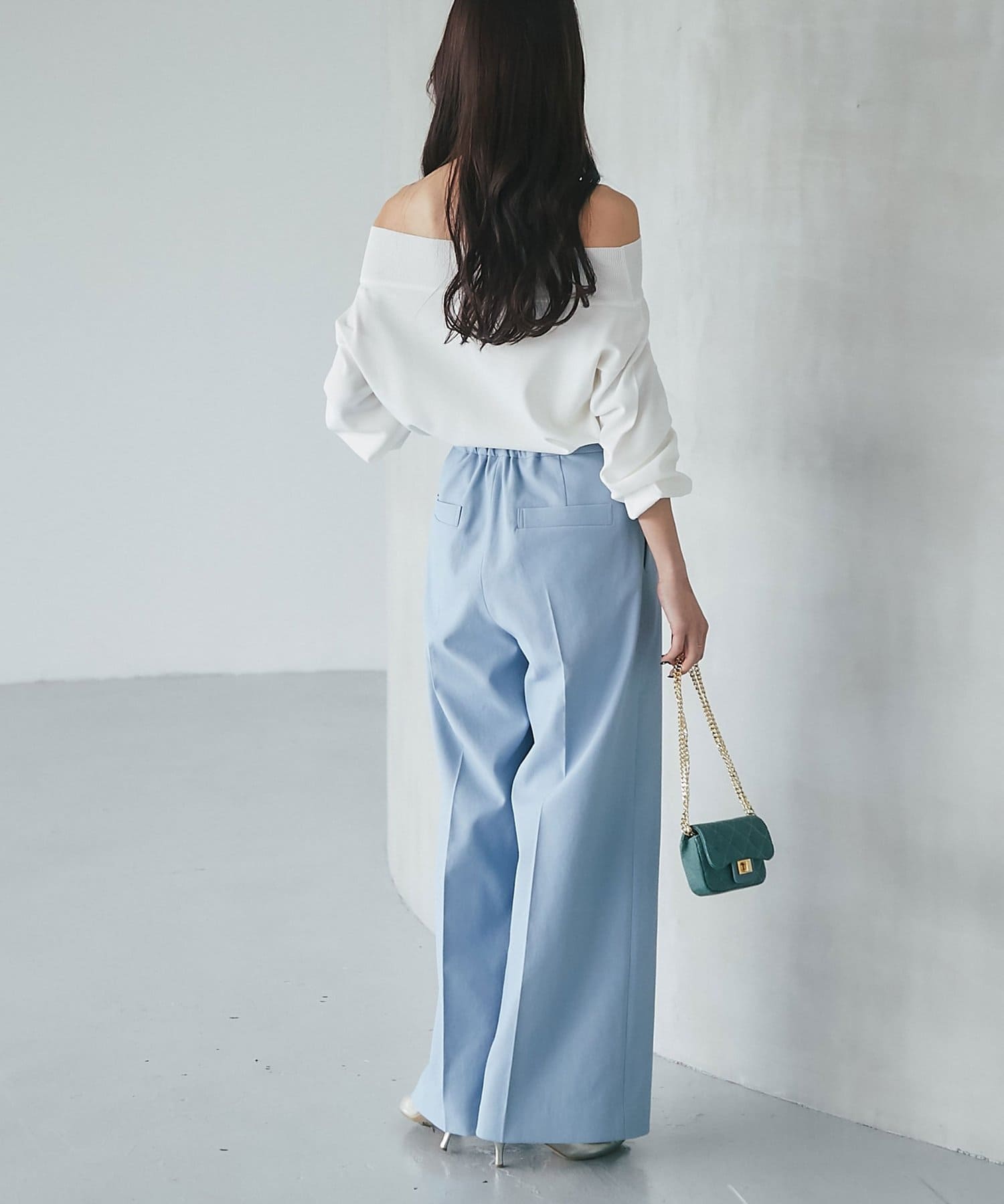 ネックラインは太めのリブ仕様でオフショルでも安心な着用感。