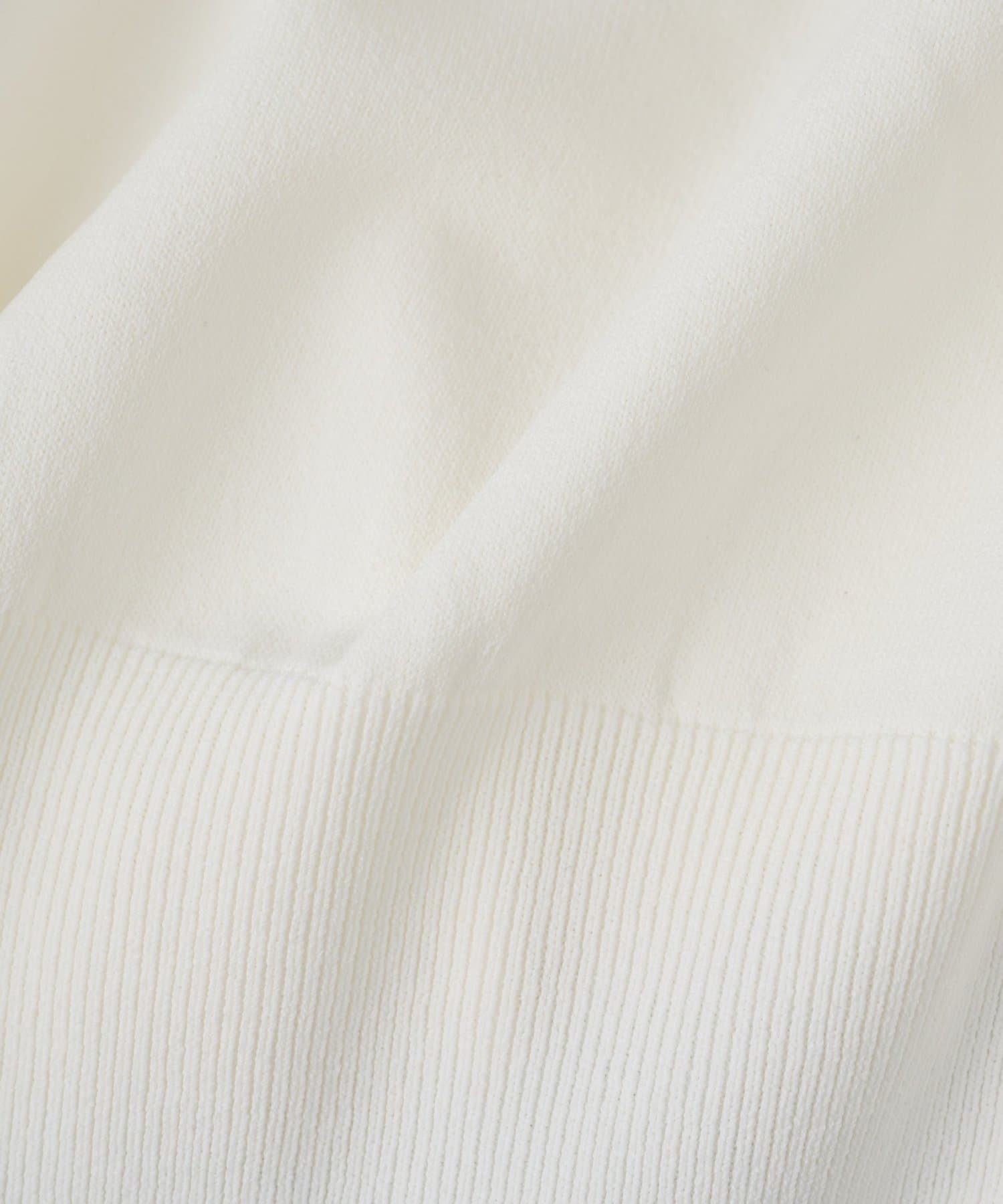 透けずに、程よくフィットしながらも体のラインを拾わない総針の編地で仕上げています。