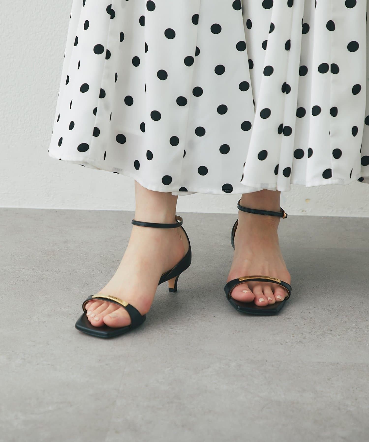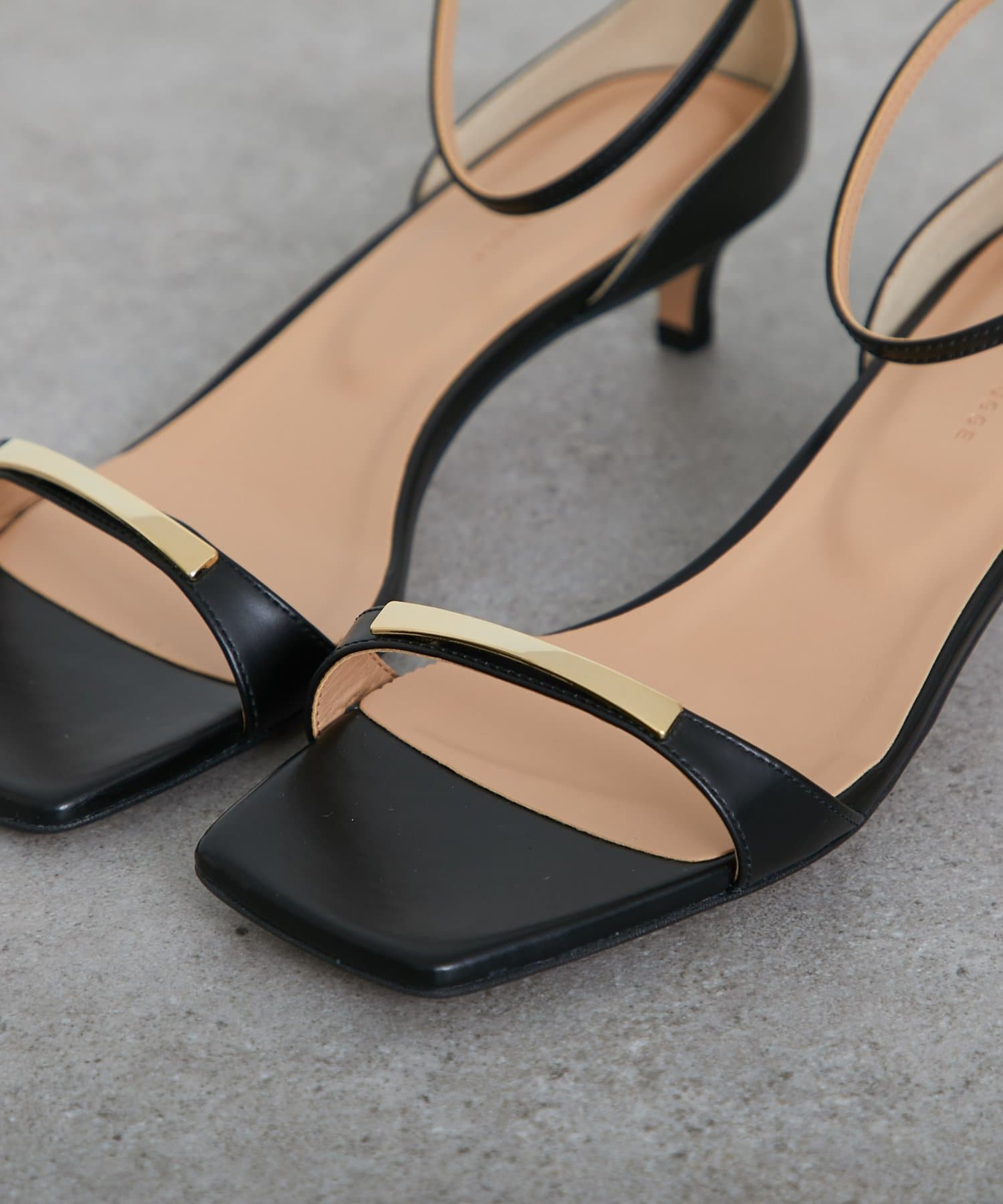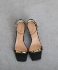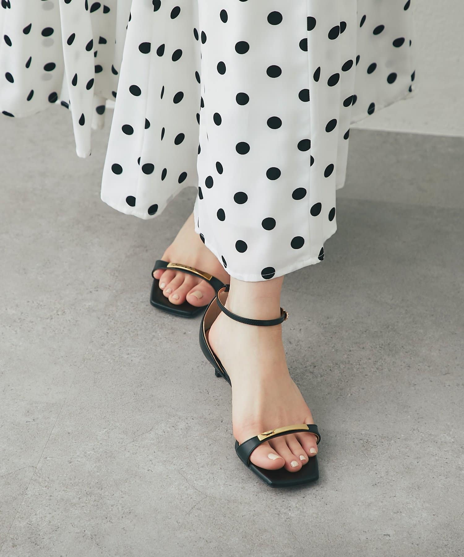 メタリックバーがアクセントになる上品な雰囲気のサンダル。