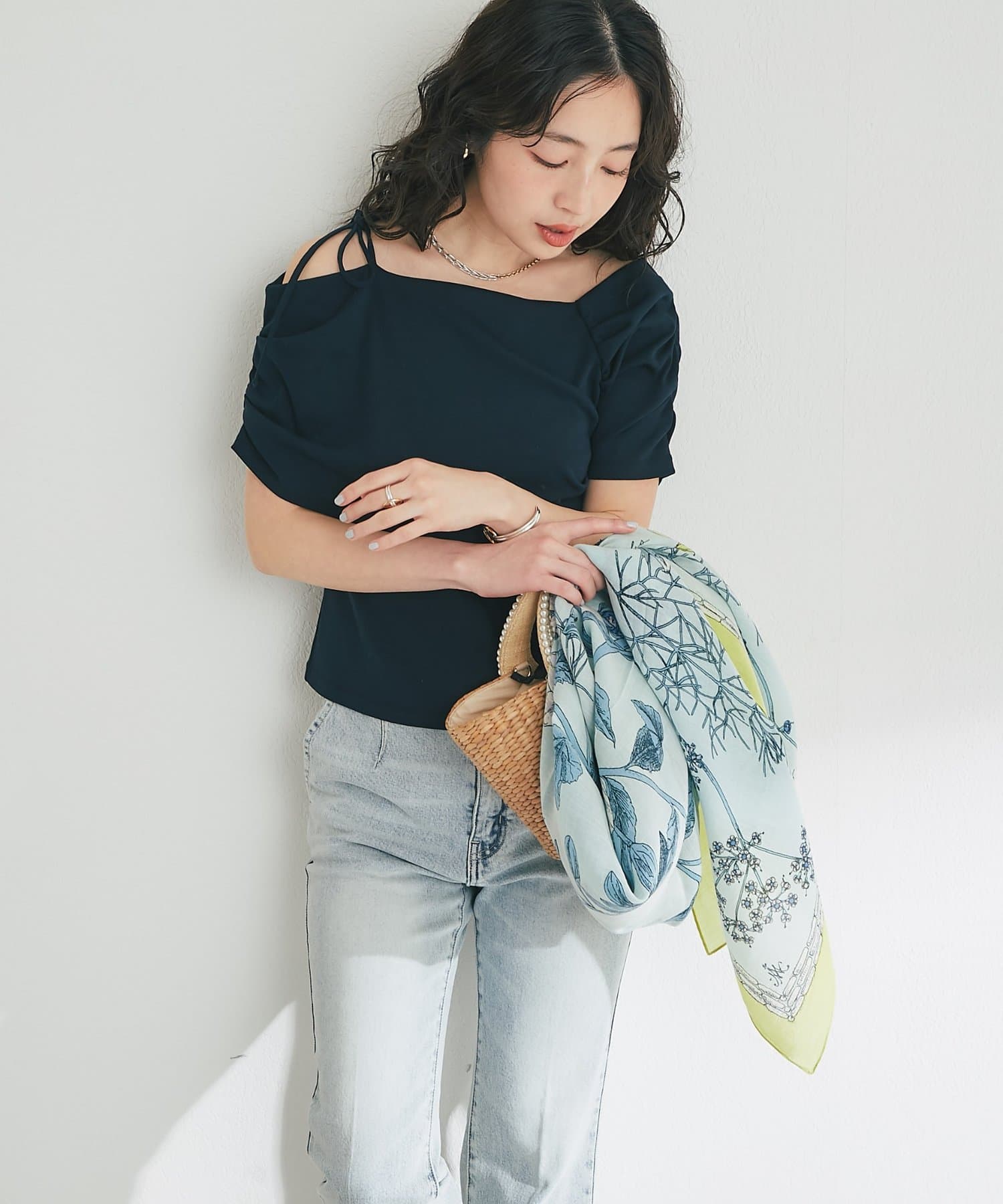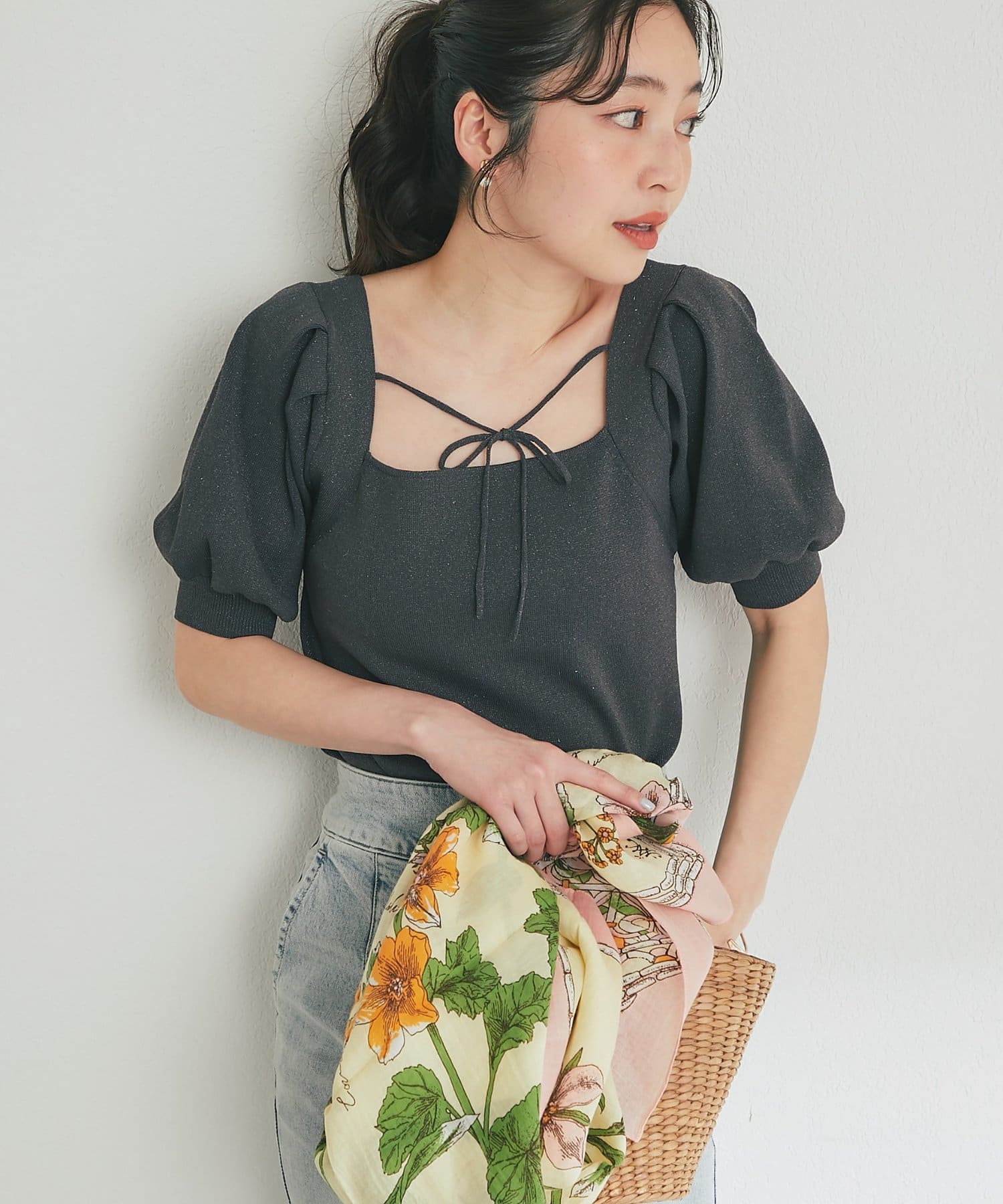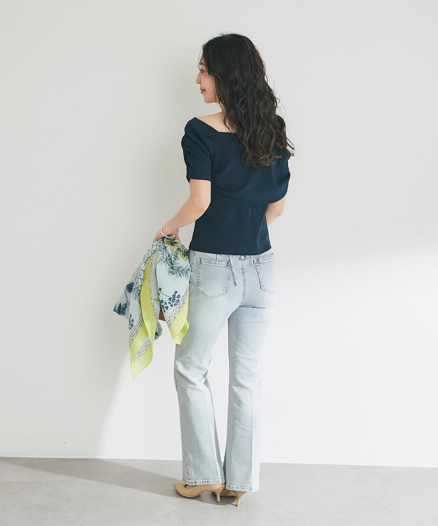 エレガントな印象ですが、デニムなどのカジュアルアイテムとも好相性なのが嬉しいです。