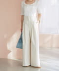 ハイウエストで太く裾に広がるシルエットでスタイルアップ効果も。