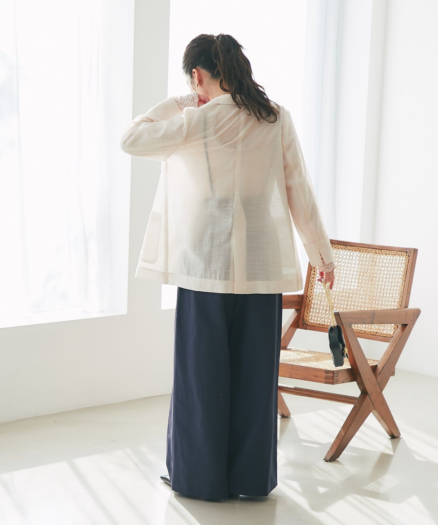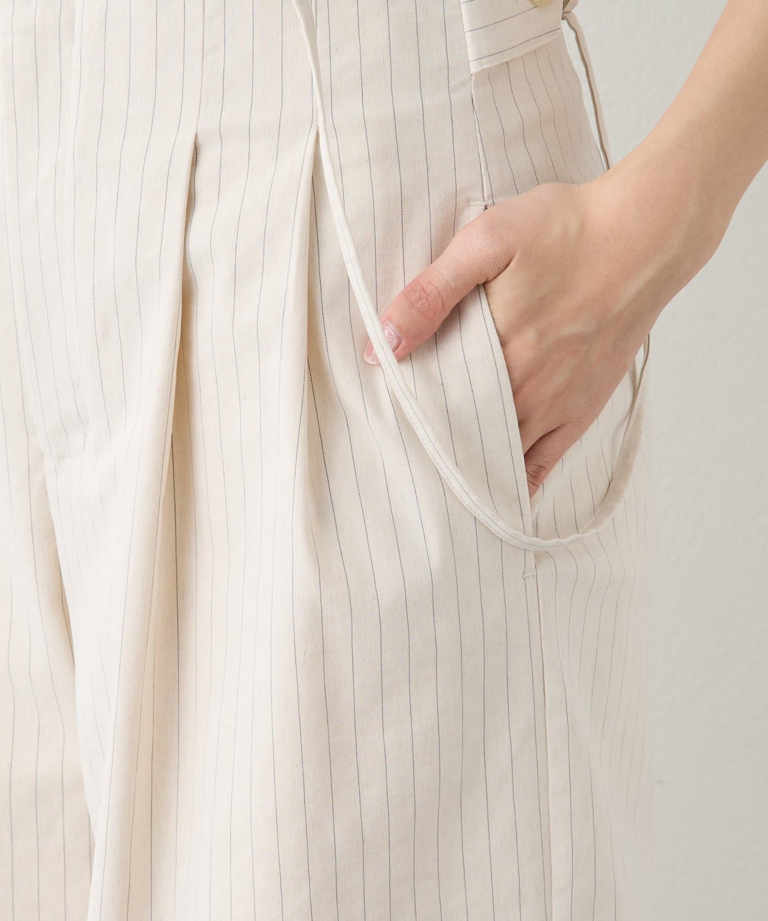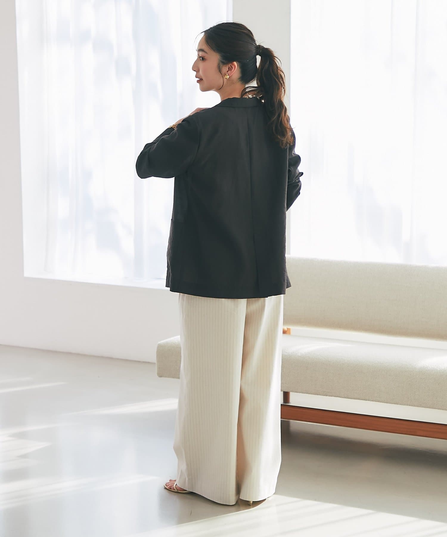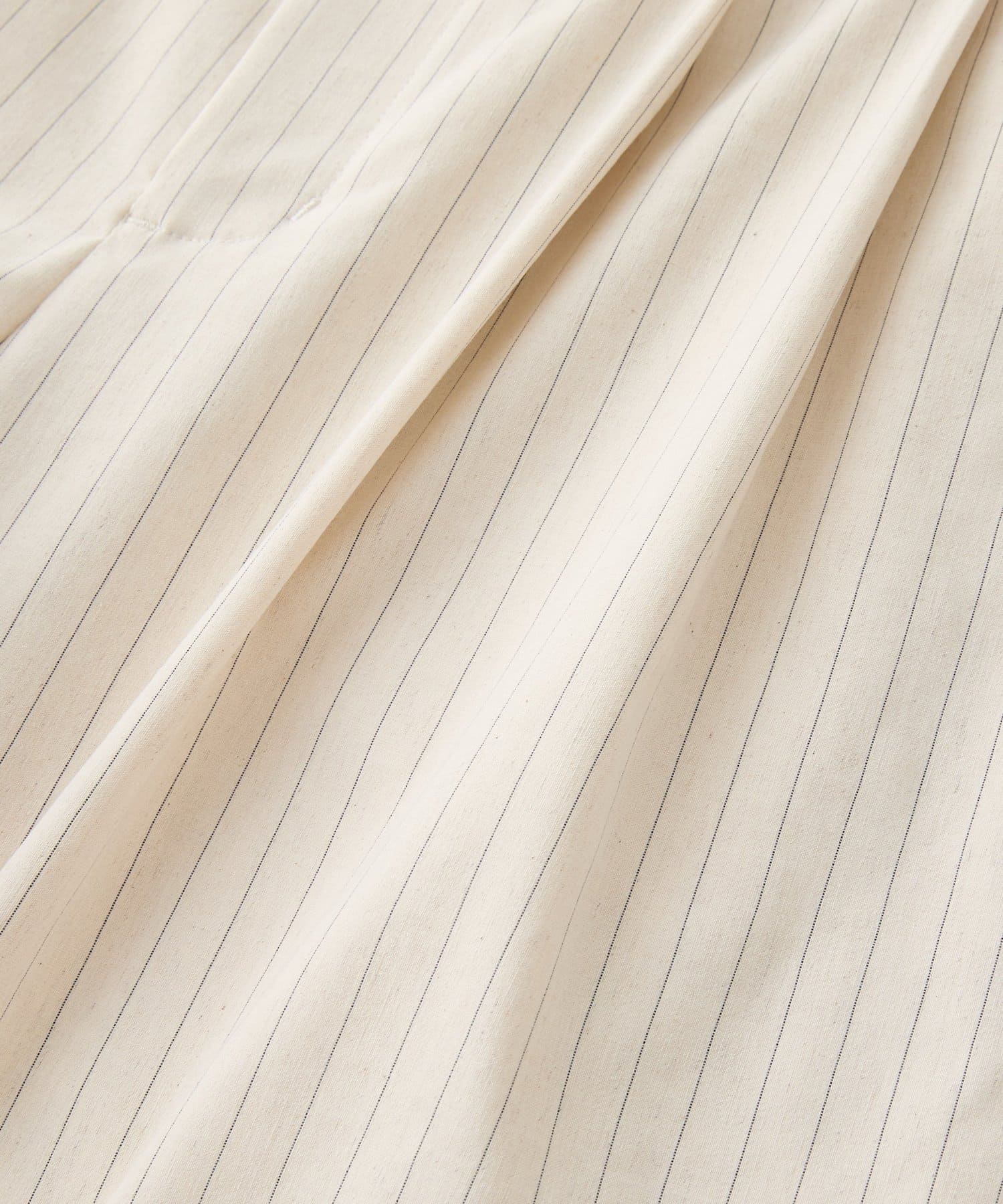 リネンのナチュラルさを生かしつつハリ感とキックバックのあるストレッチ性の程よいバランスで履き心地の良い生地です。