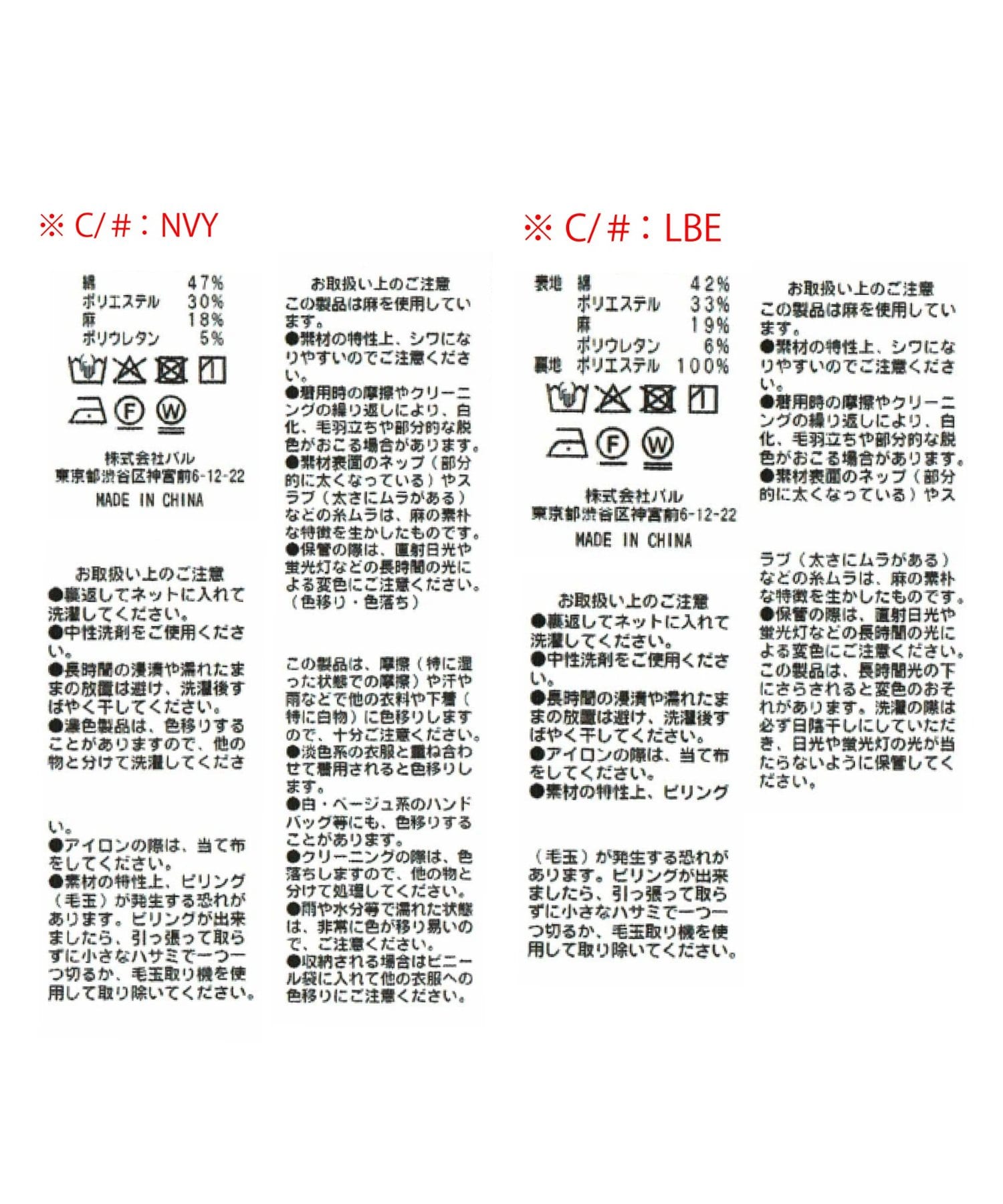 綿47%/ポリエステル30%/麻18%/ポリウレタン5%