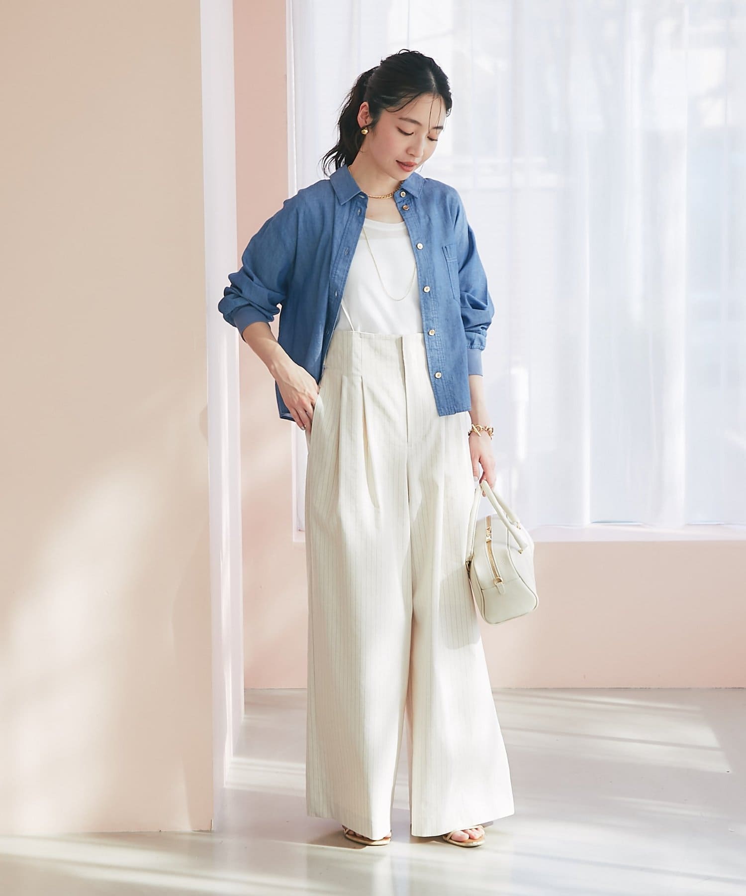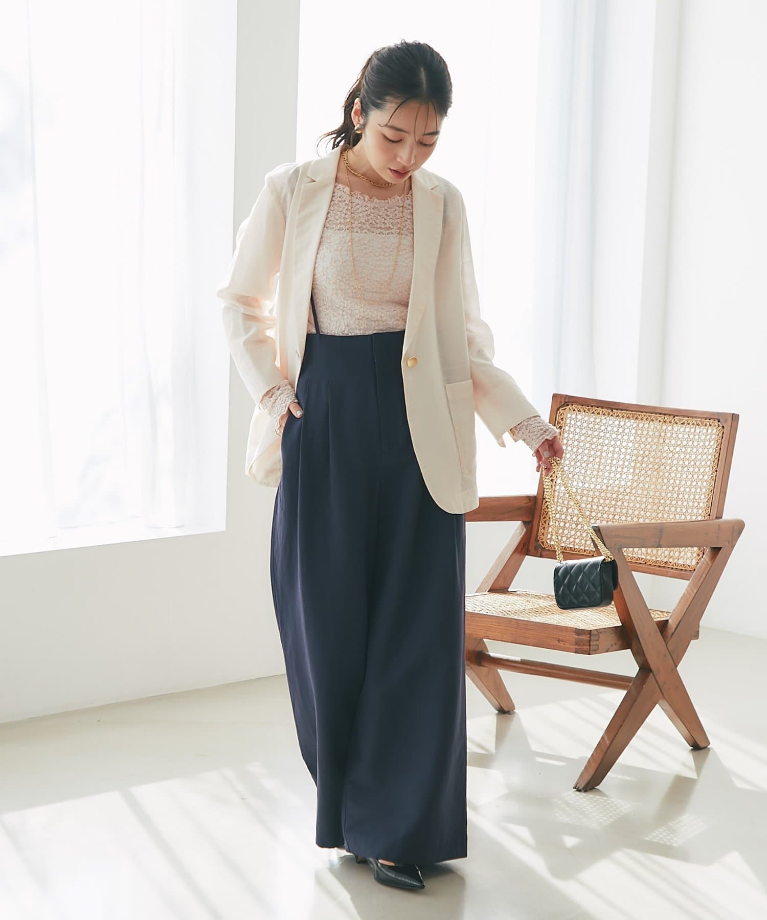 柔らかなブラウス合わせでキレイめスタイルやTシャツ合わせでカジュアルなスタイルまで楽しめます。