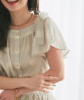 La boutique BonBon(ラブティックボンボン) 【セットアップ可・お上品愛され】シアーチェックリボンショルダーブラウス