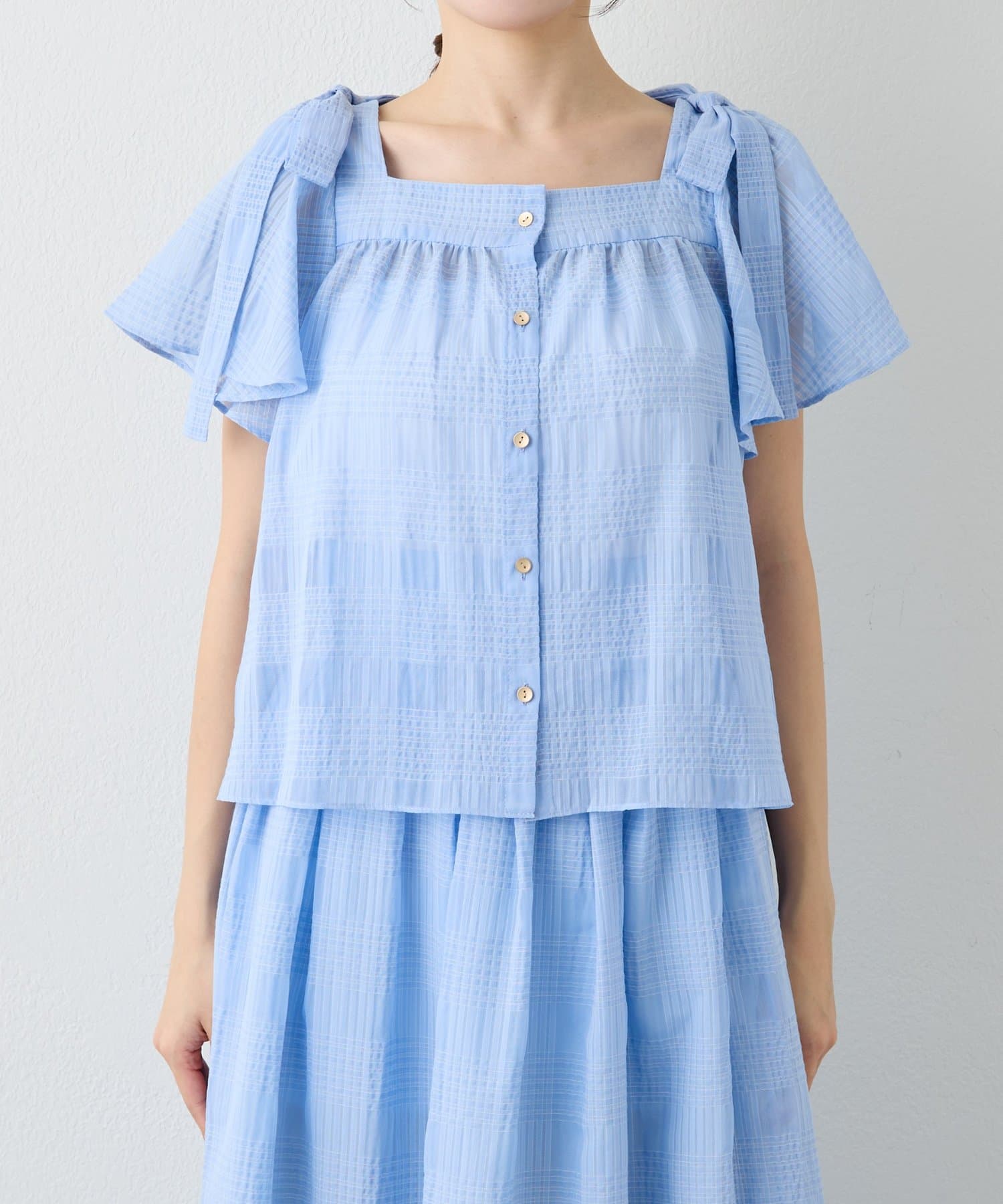 TOP > La boutique BonBon > レディース > トップス > シャツ/ブラウス(ボタン) > 【セットアップ可・お上品愛され】シアーチェックリボンショルダーブラウス