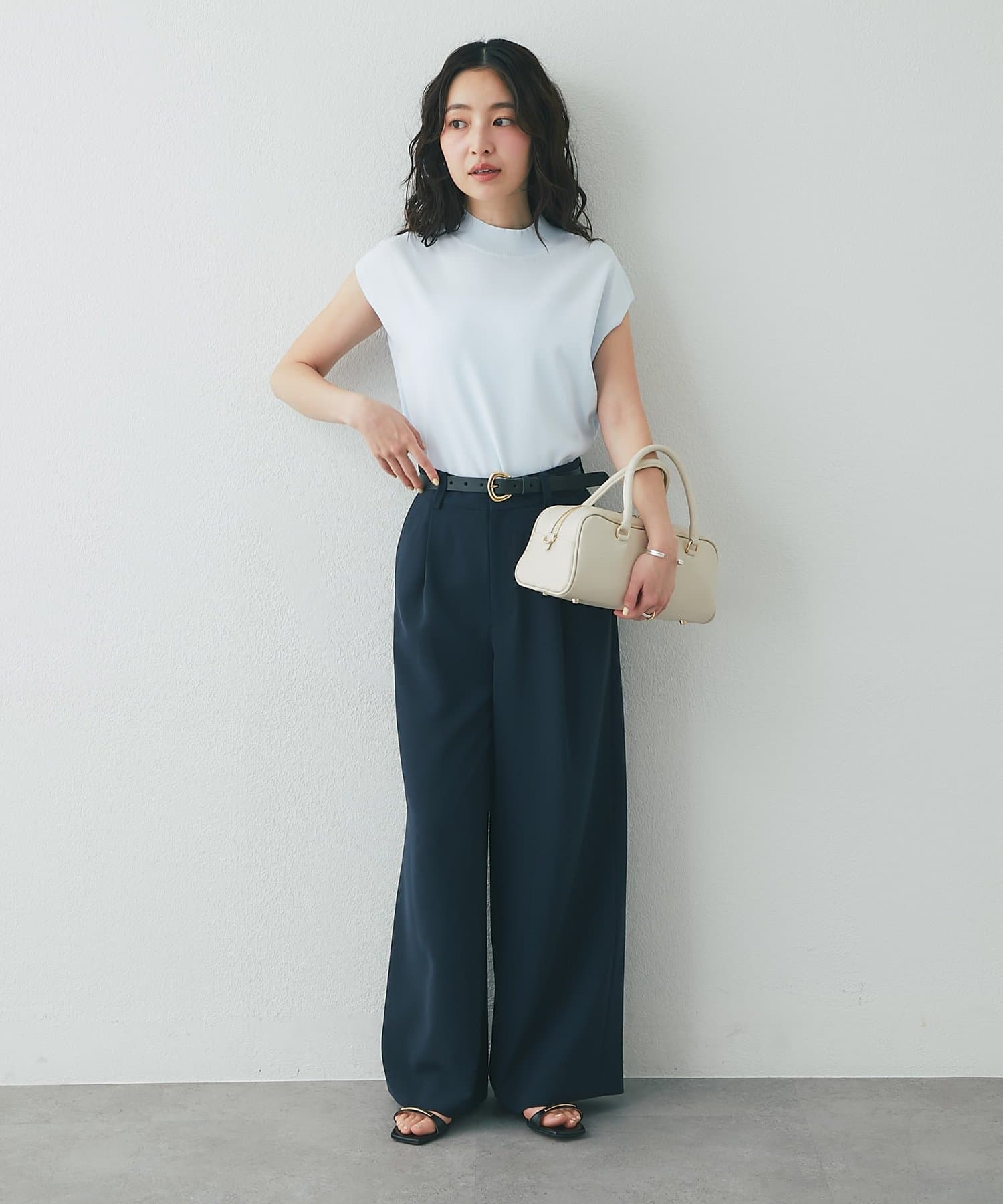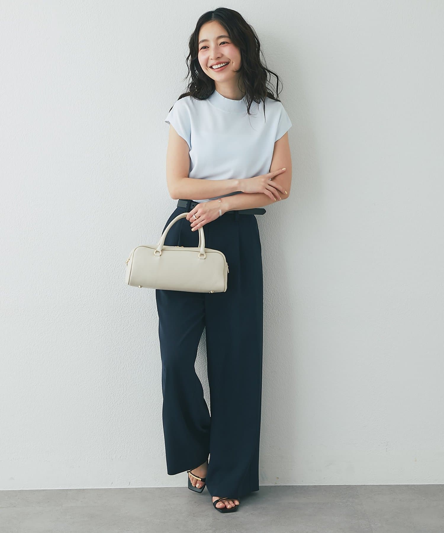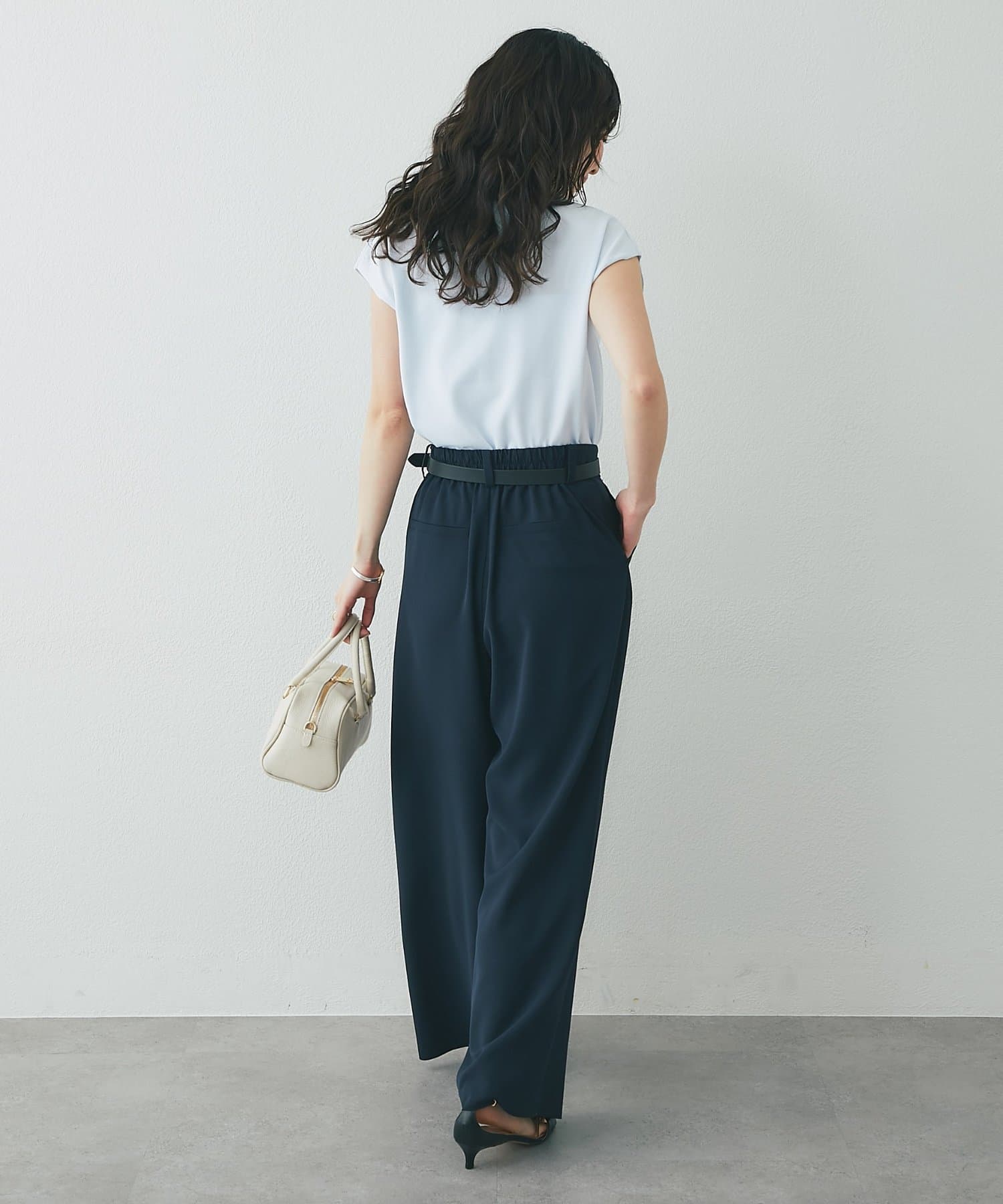 オフィスシーンのきれいめボトムからカジュアルなデニムまで幅広く合わせていただけます。