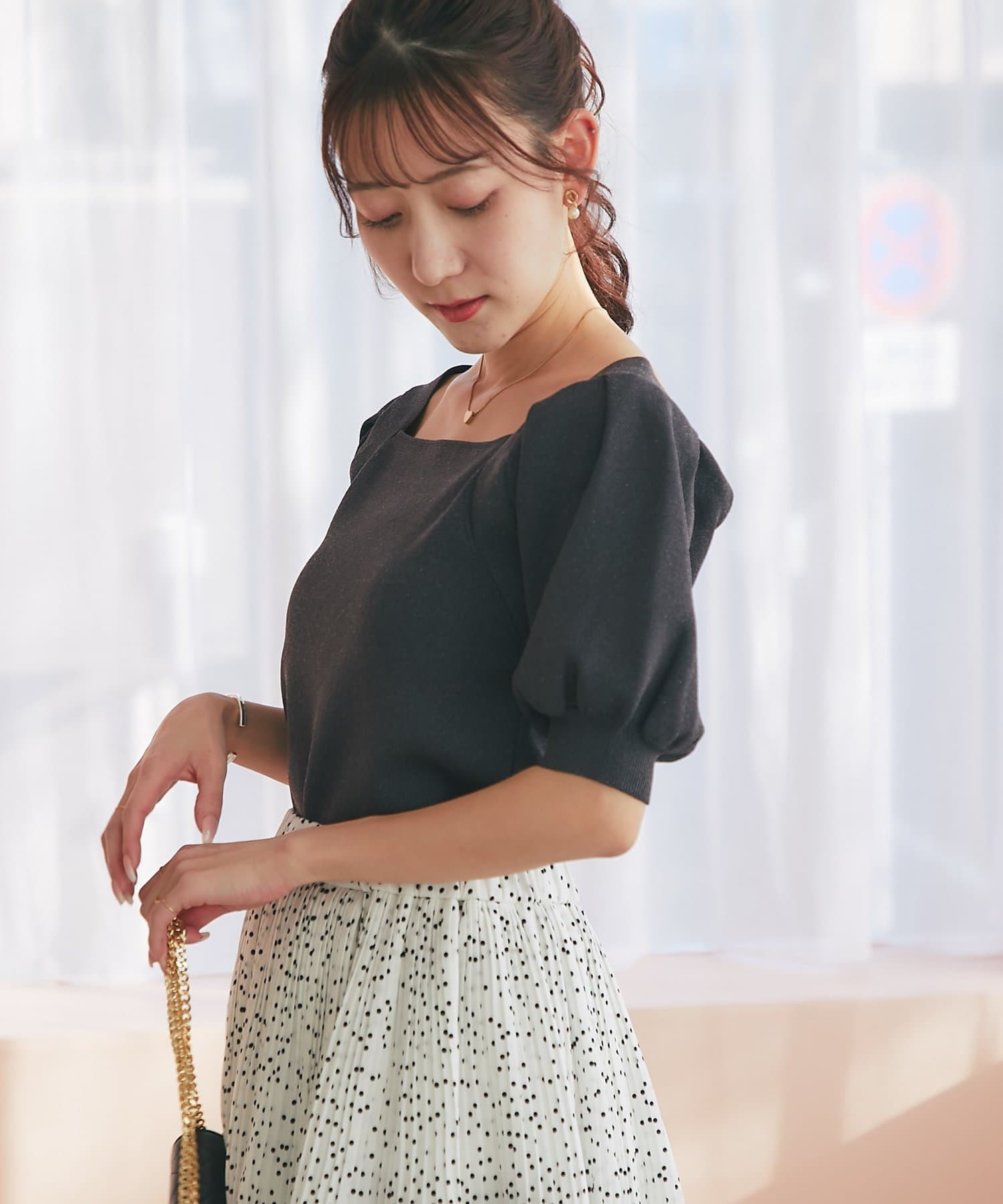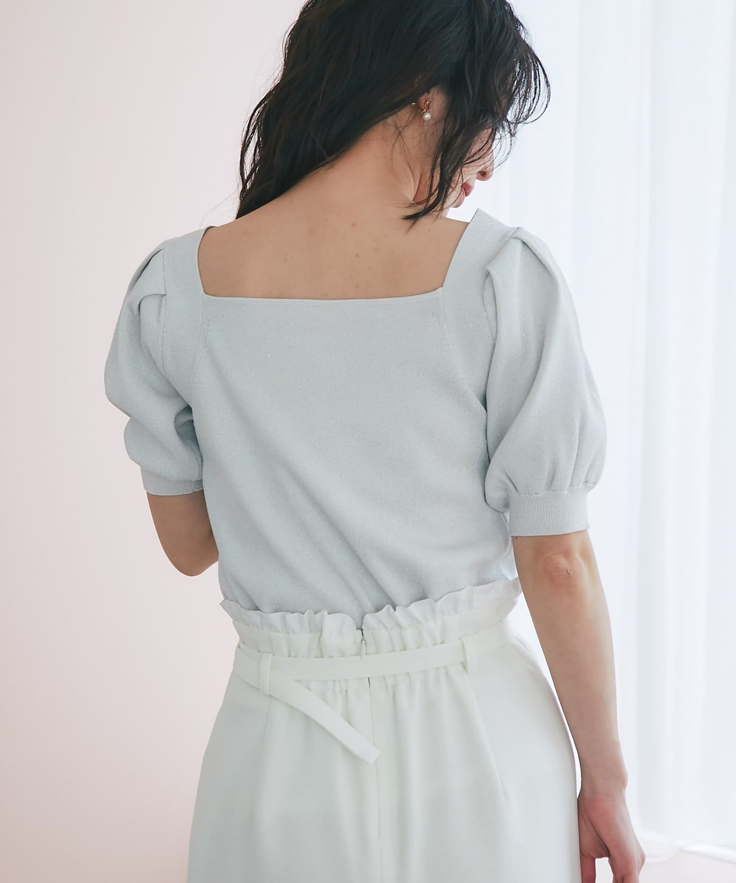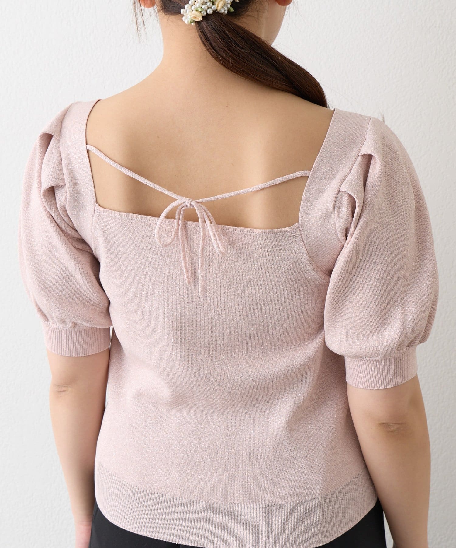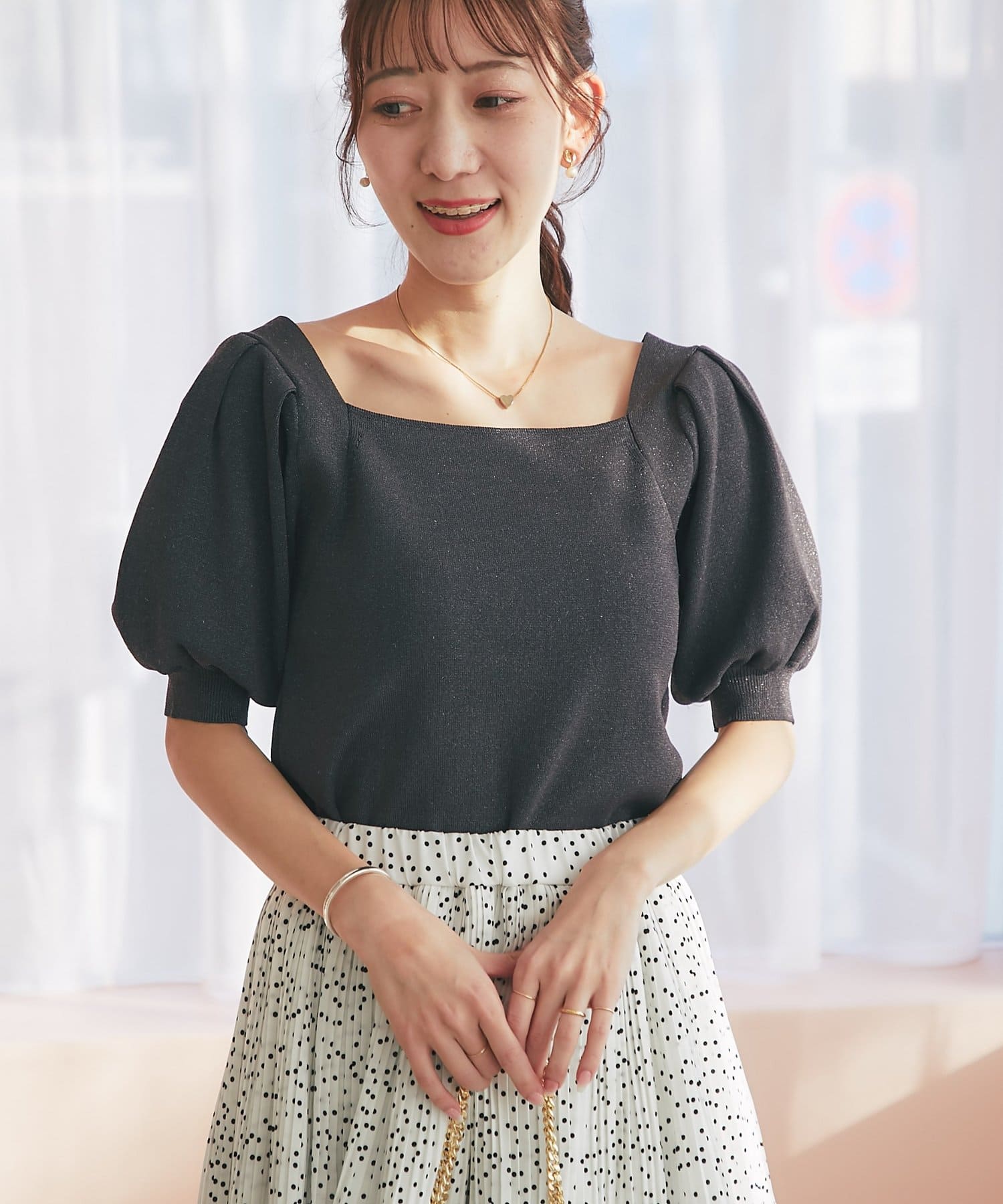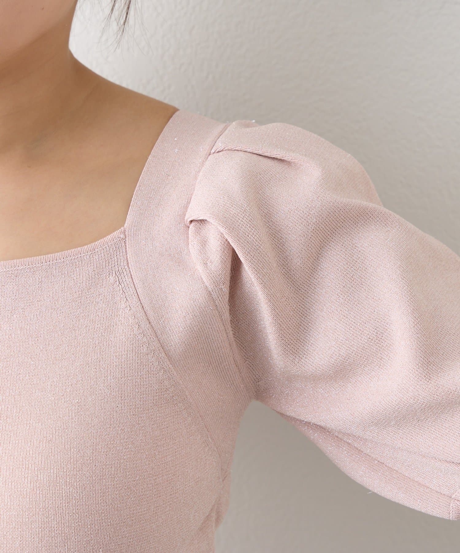 ふんわりとしたパフスリーブと、さりげなくきらめくラメが