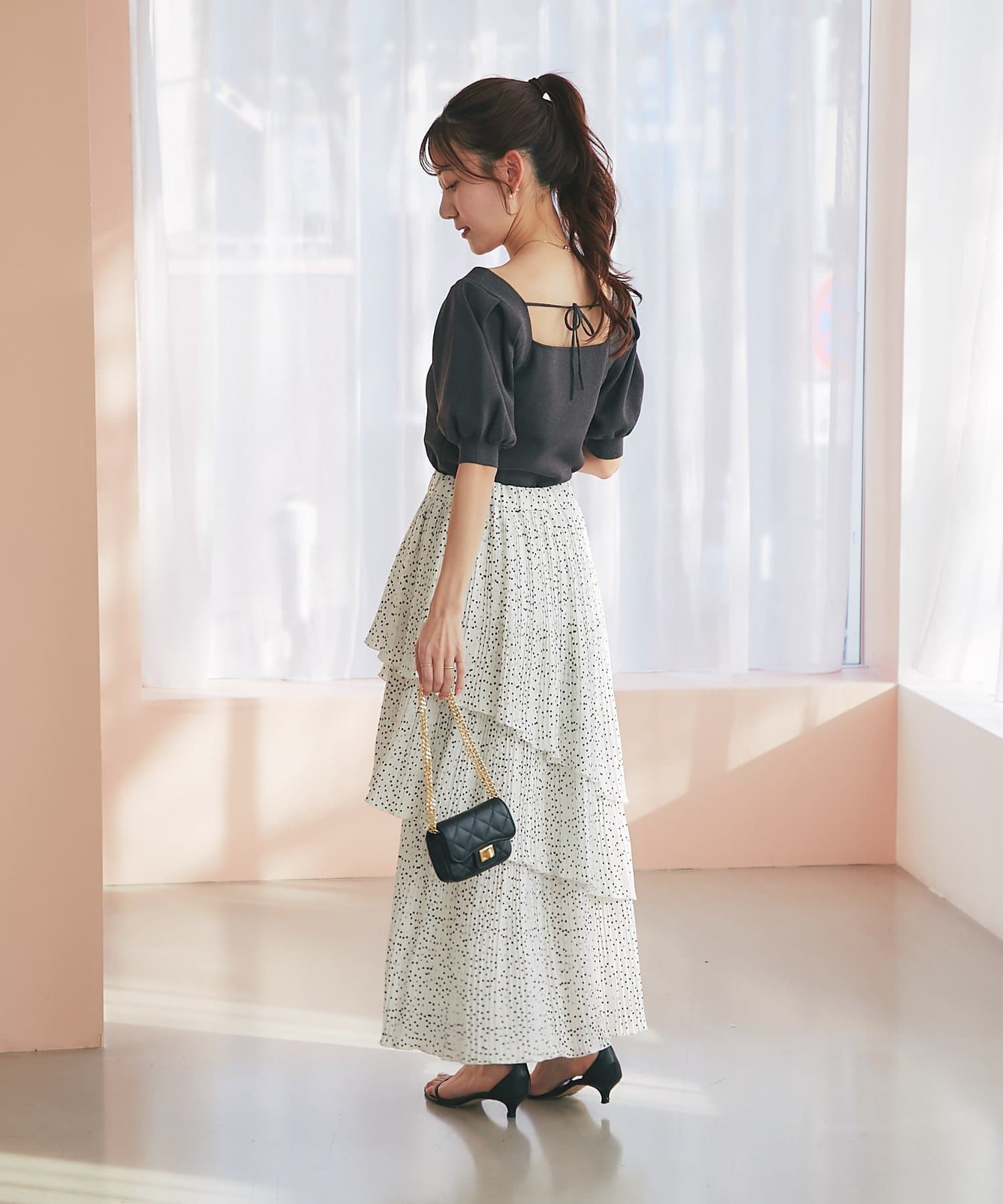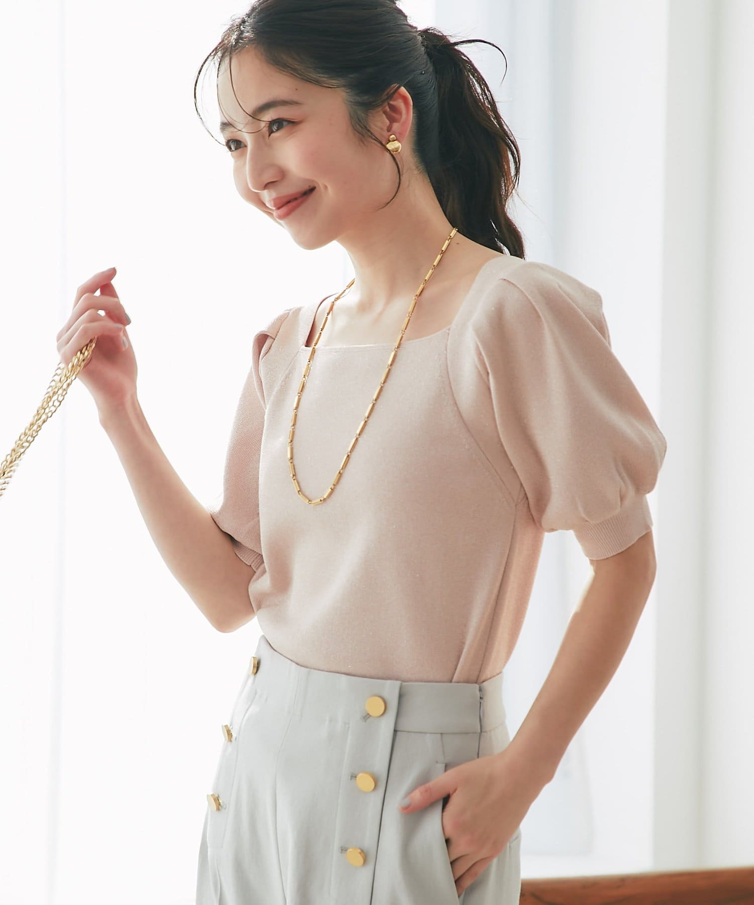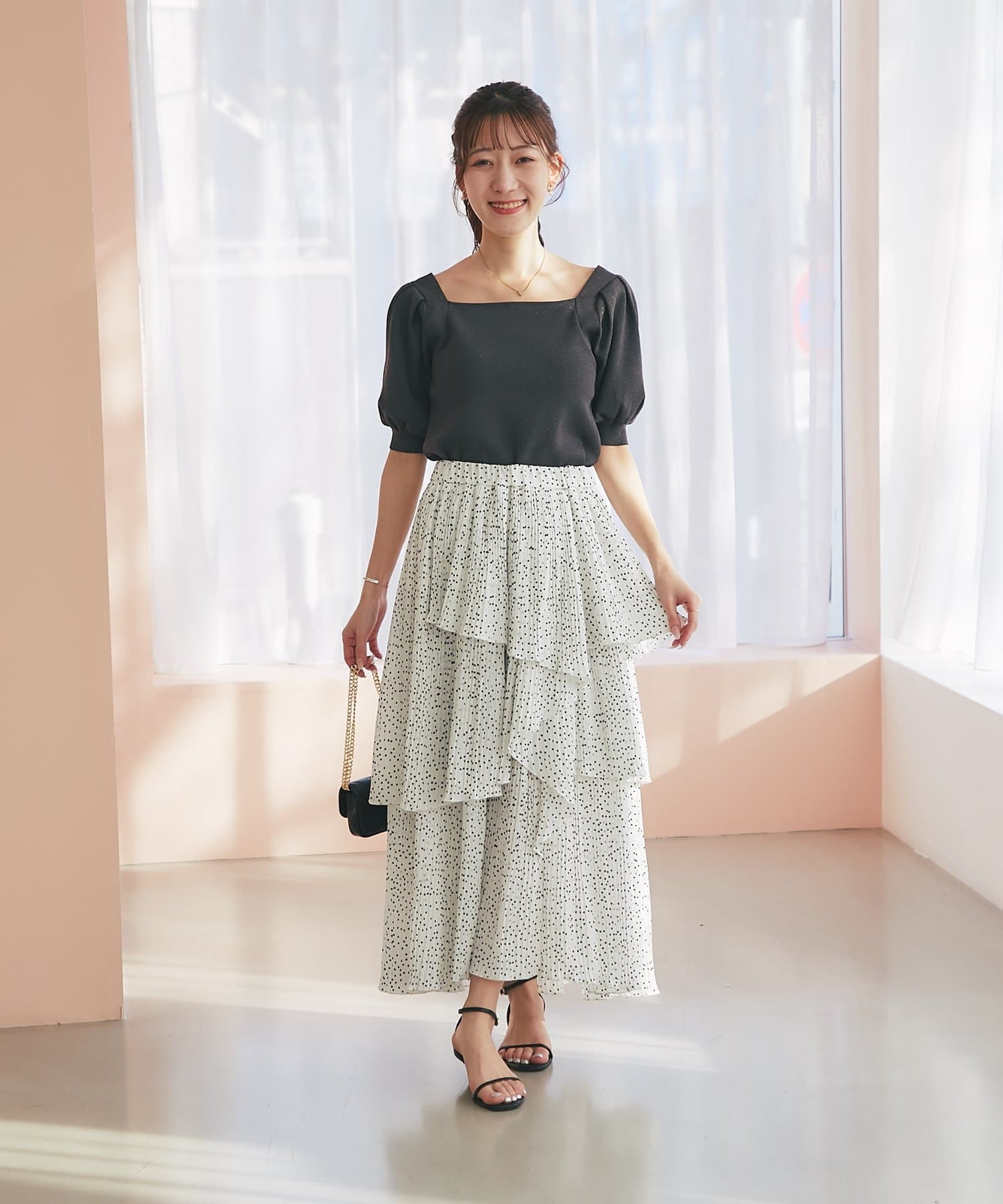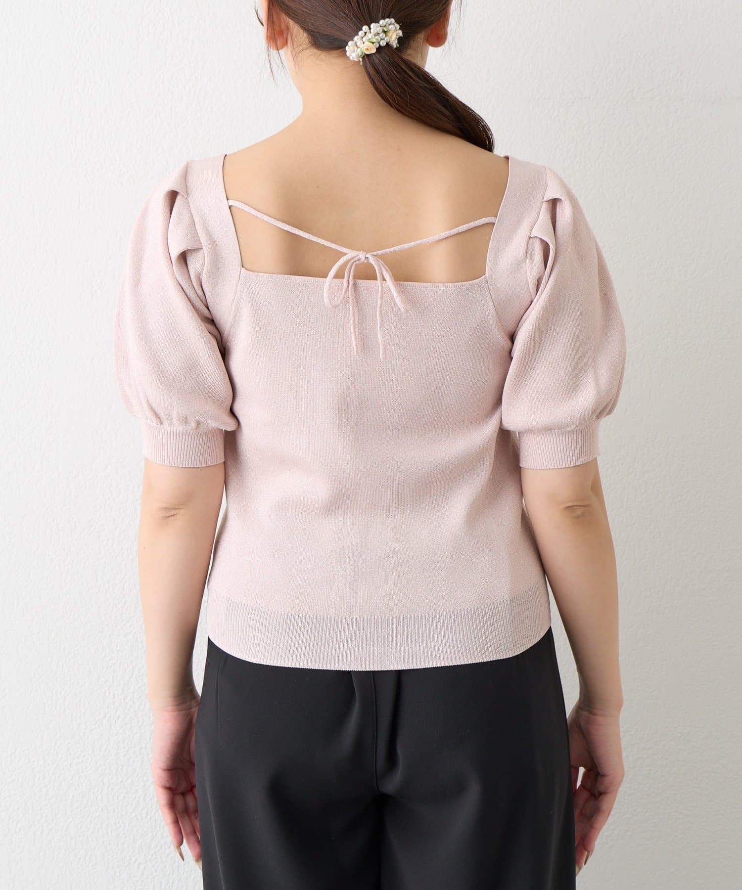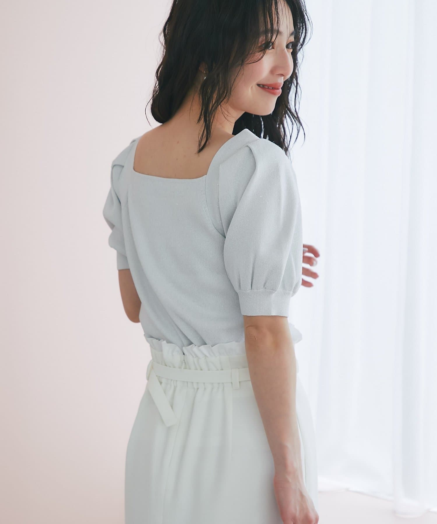 ふんわりとしたパフスリーブと、さりげなくきらめくラメが