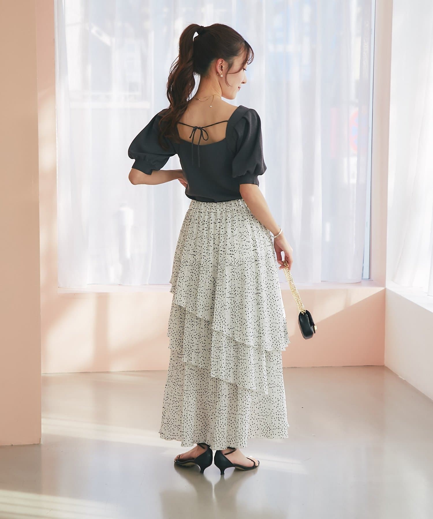 ・女性らしいパフスリーブ×華奢なリボンデザイン