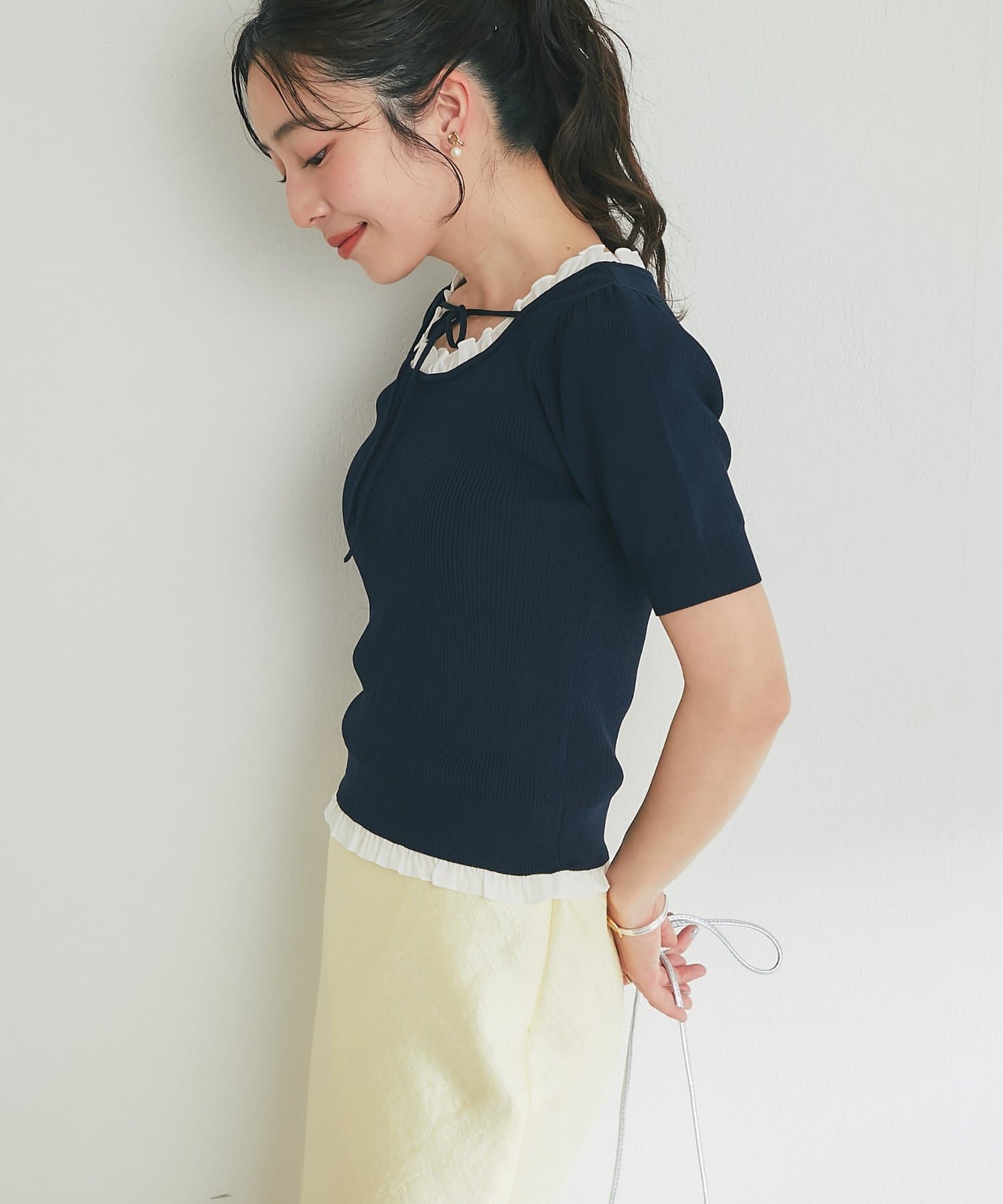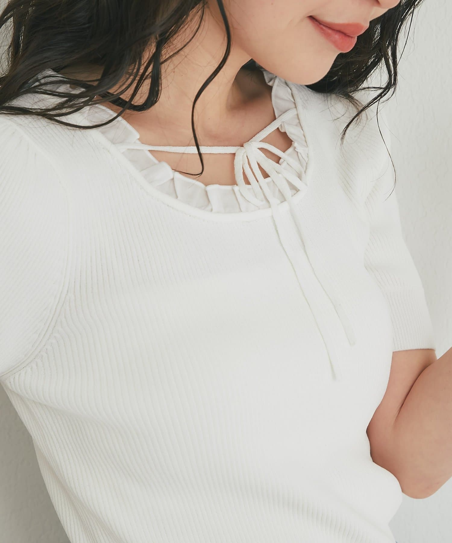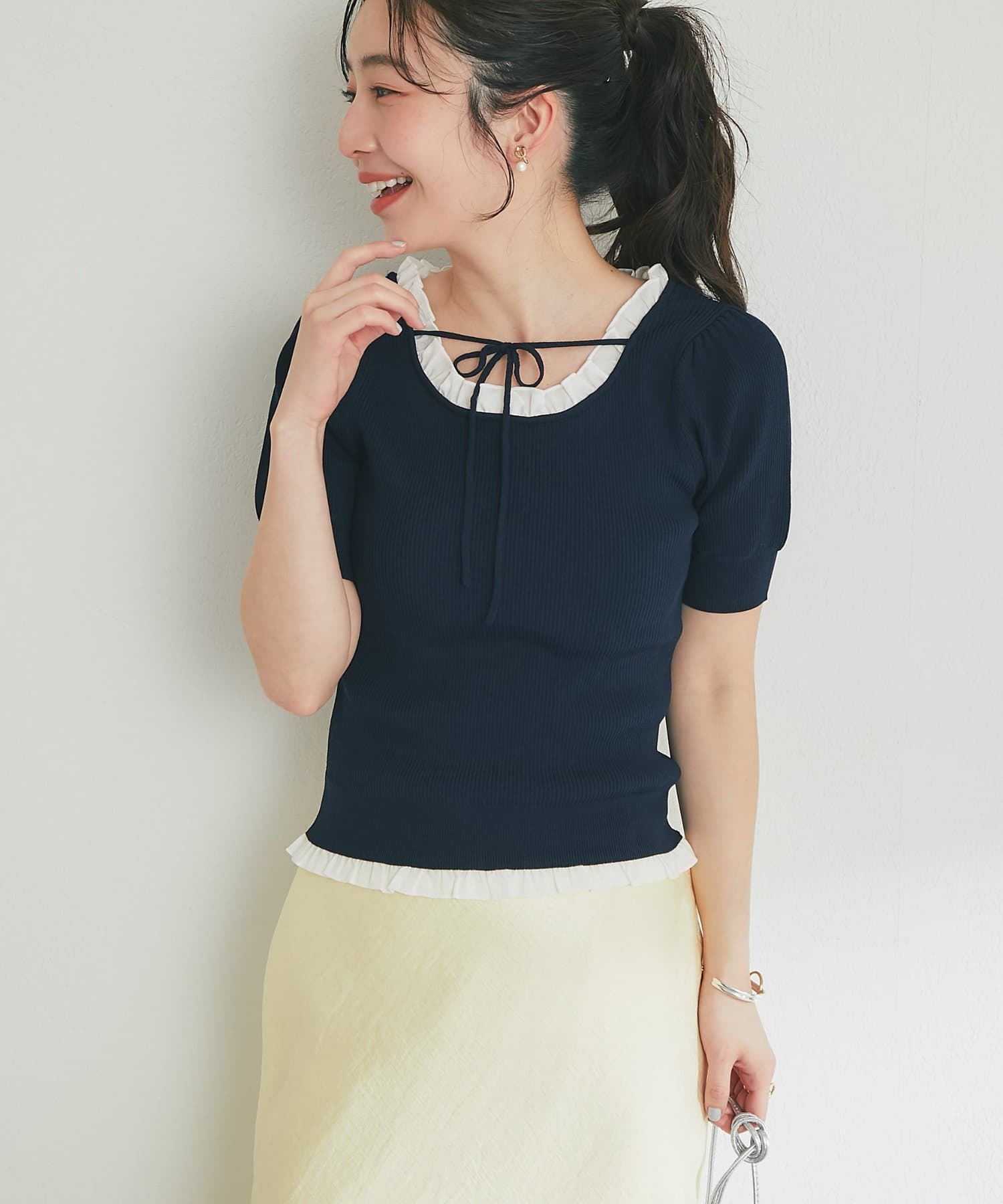 トレンドの甘さを纏う、クールタッチフェミニンニット
