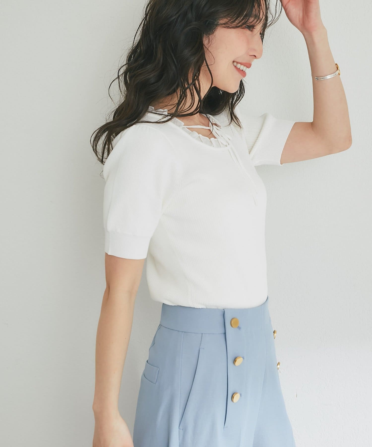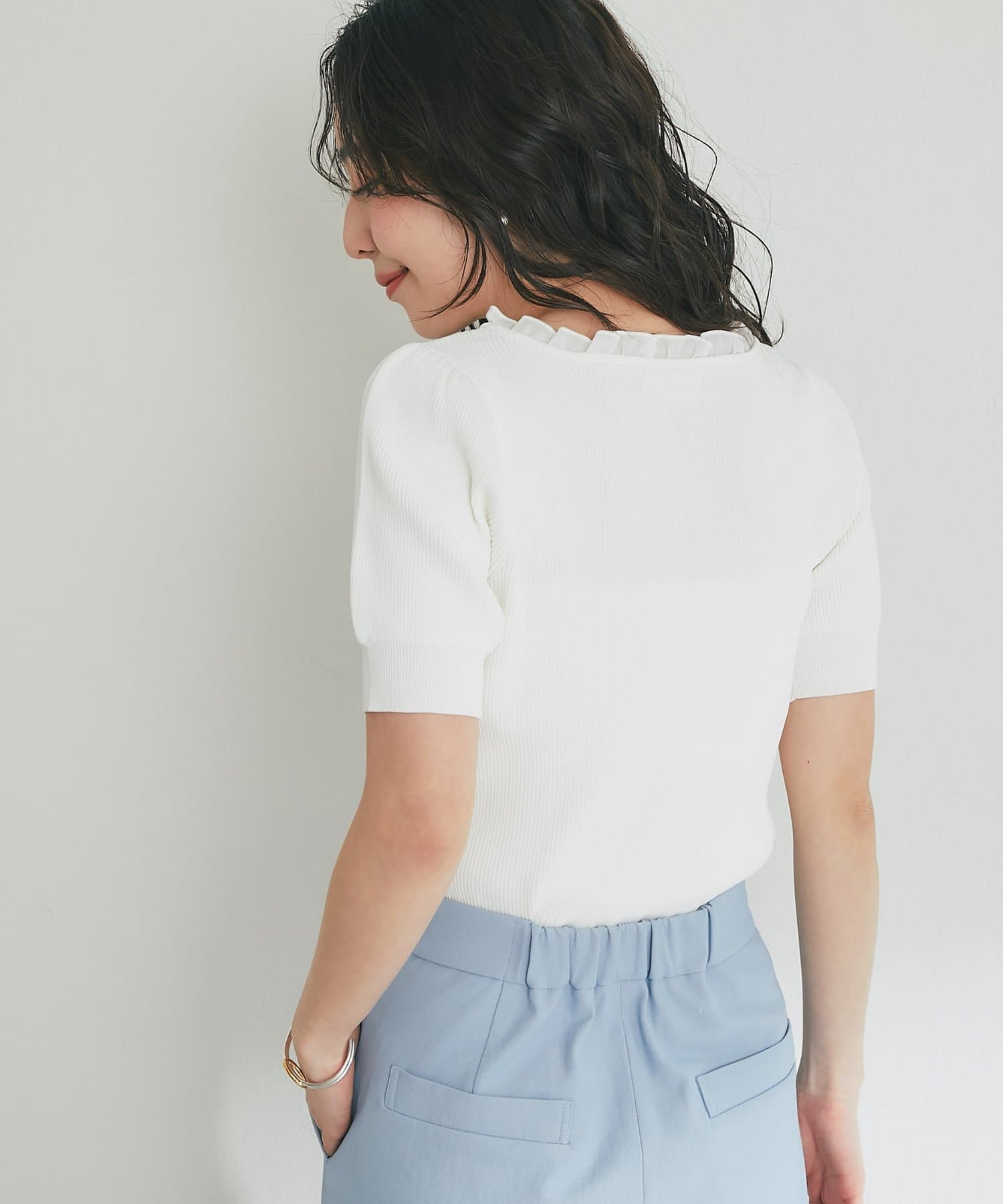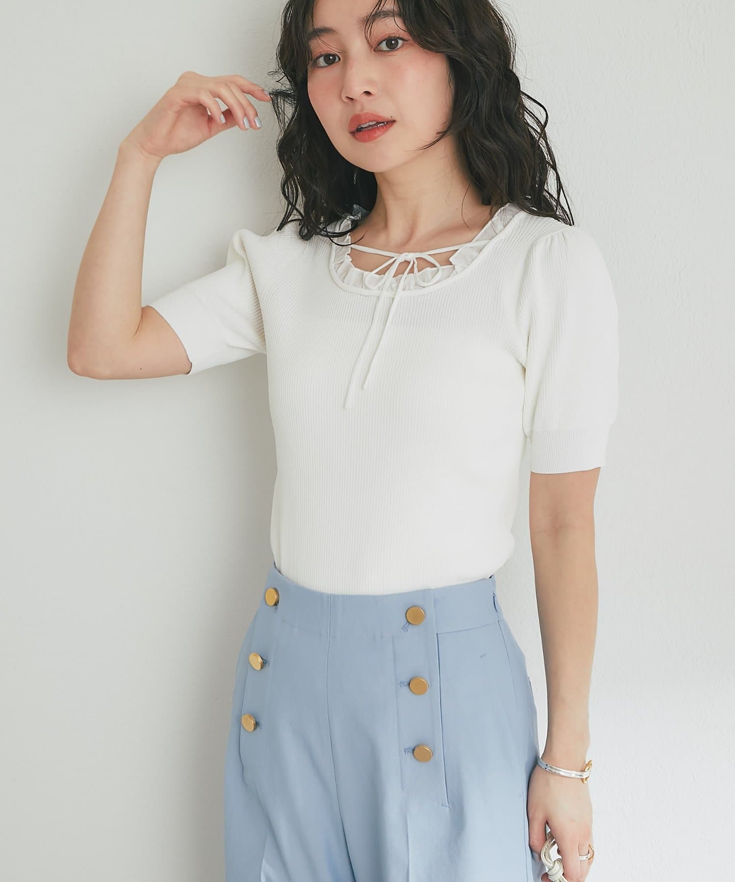 トレンドの甘さを纏う、クールタッチフェミニンニット