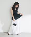 華やかな印象を生かしてタイトスカート合わせで品よく。