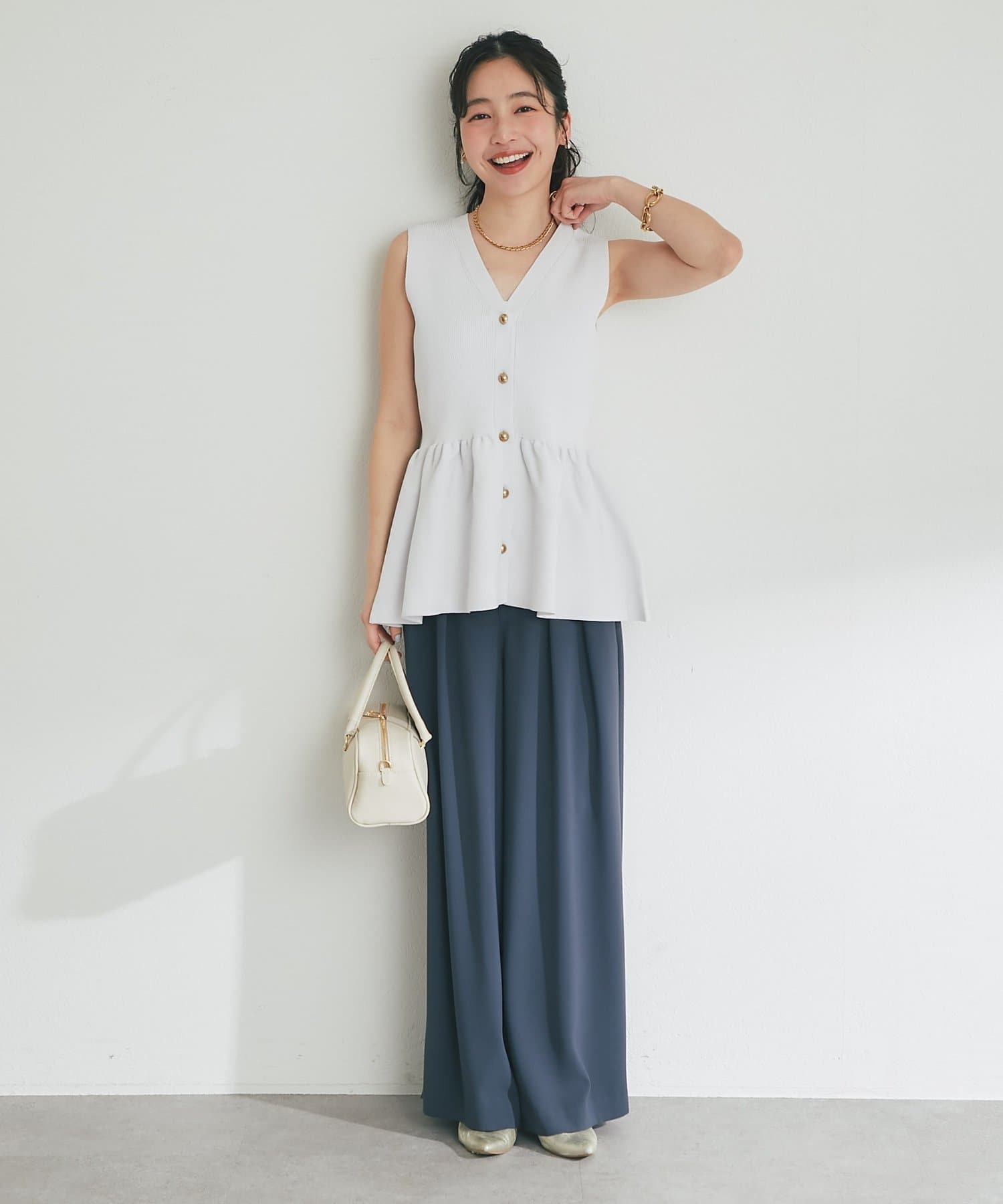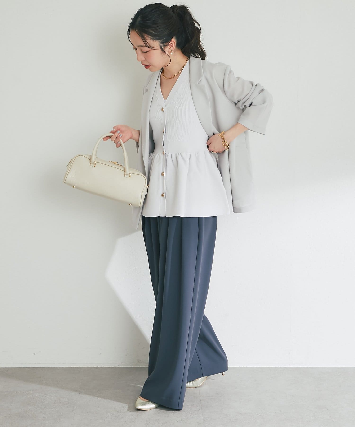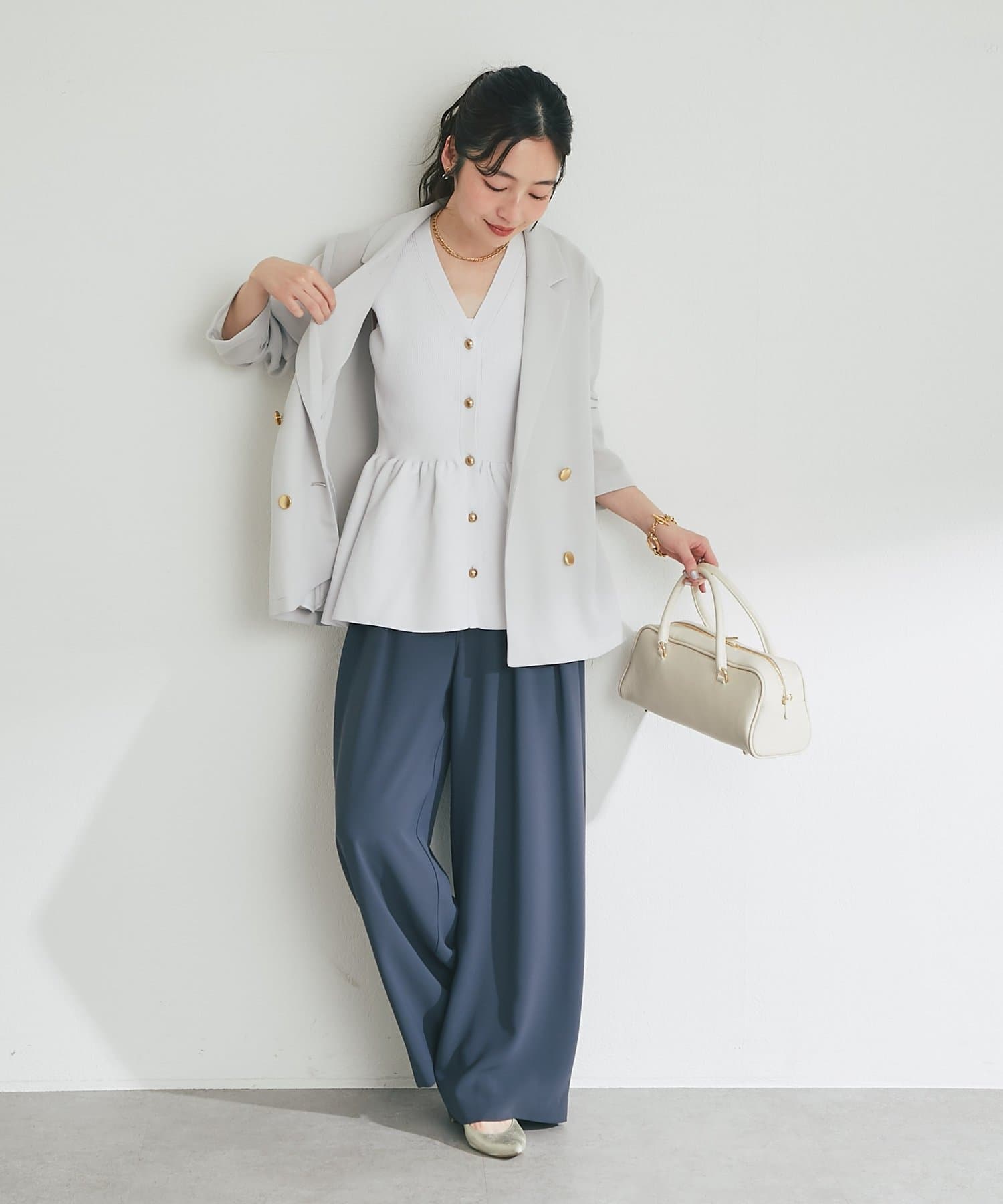 デニムやワイドパンツと合わせると、きれいめなのに気張らない大人カジュアルに。