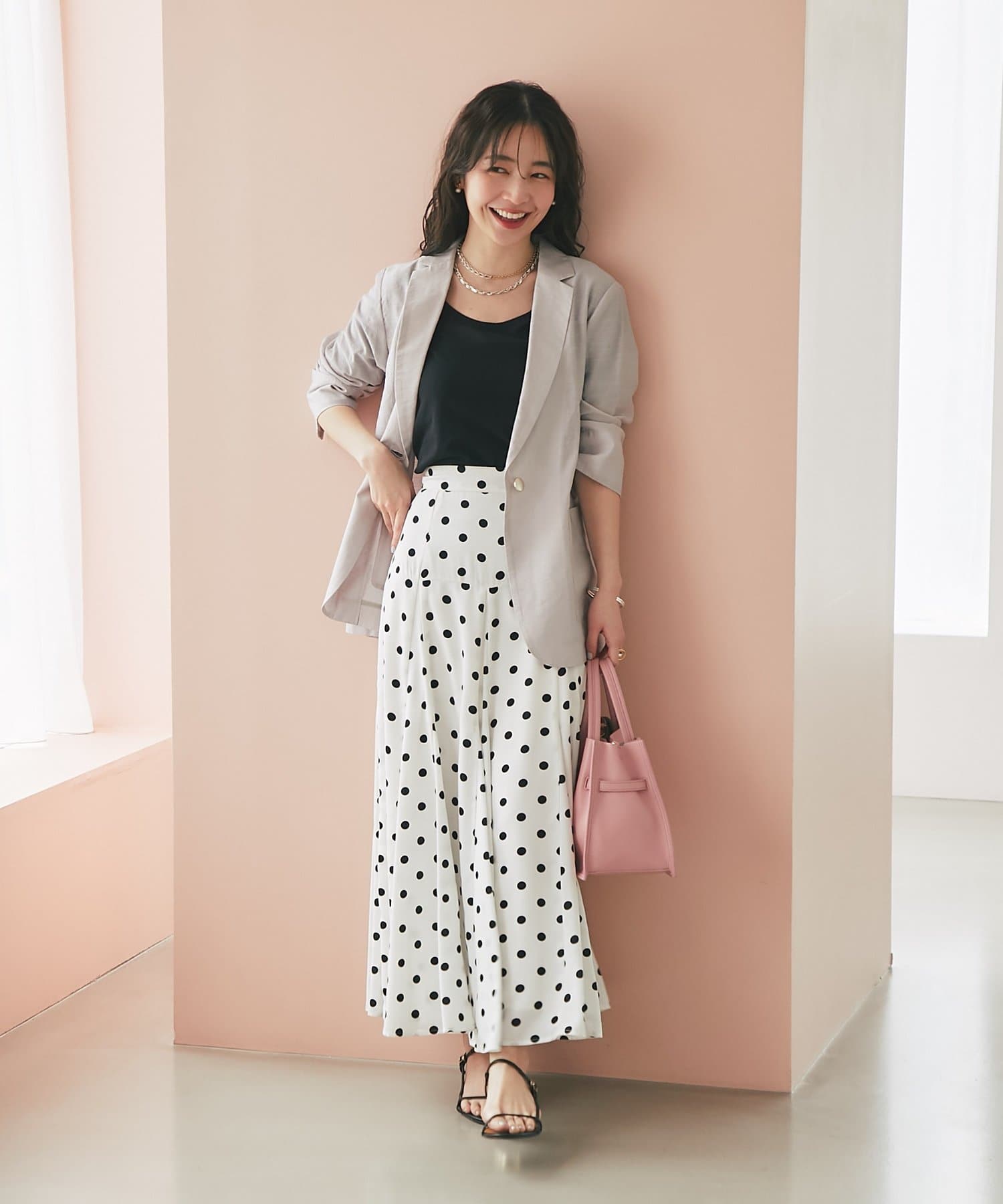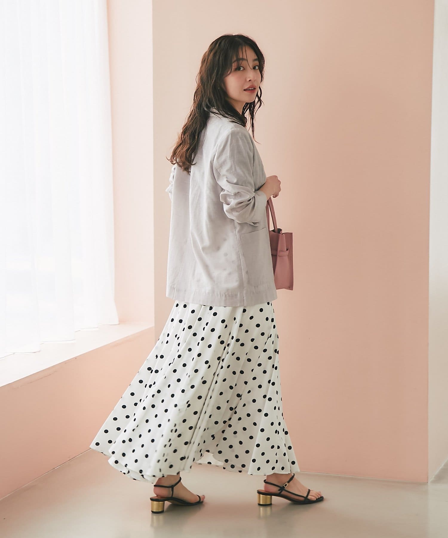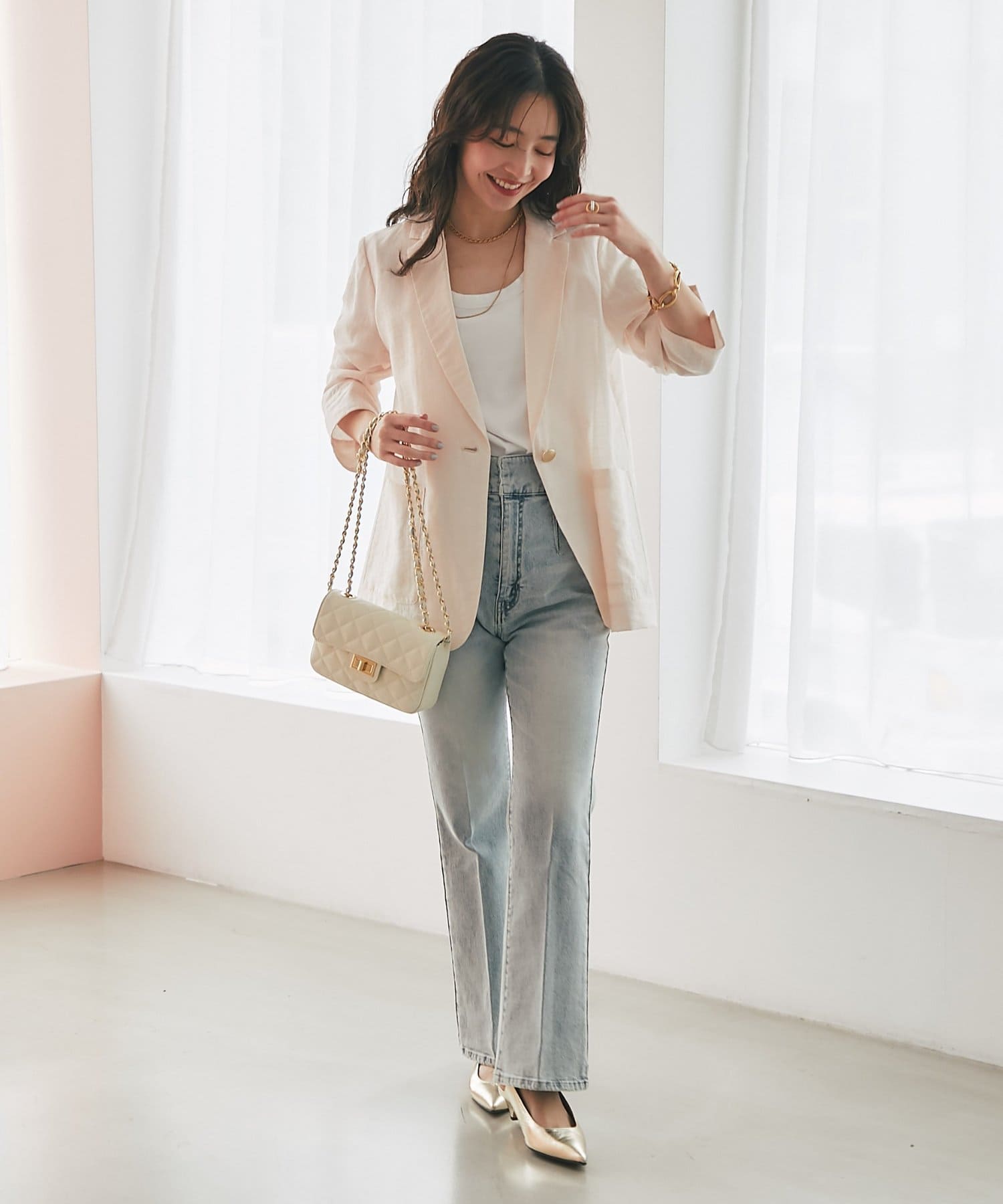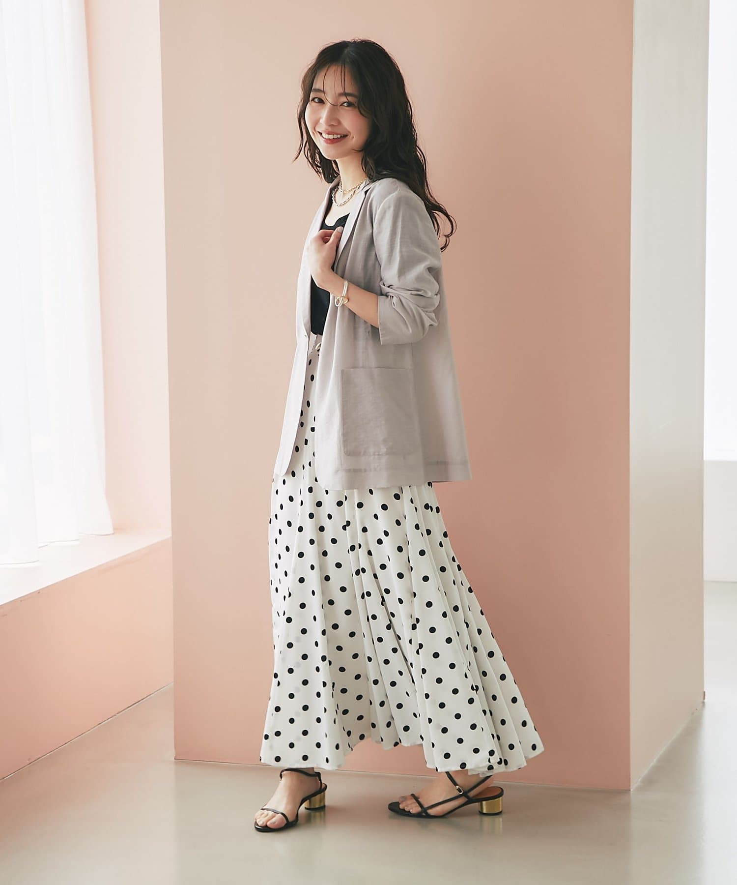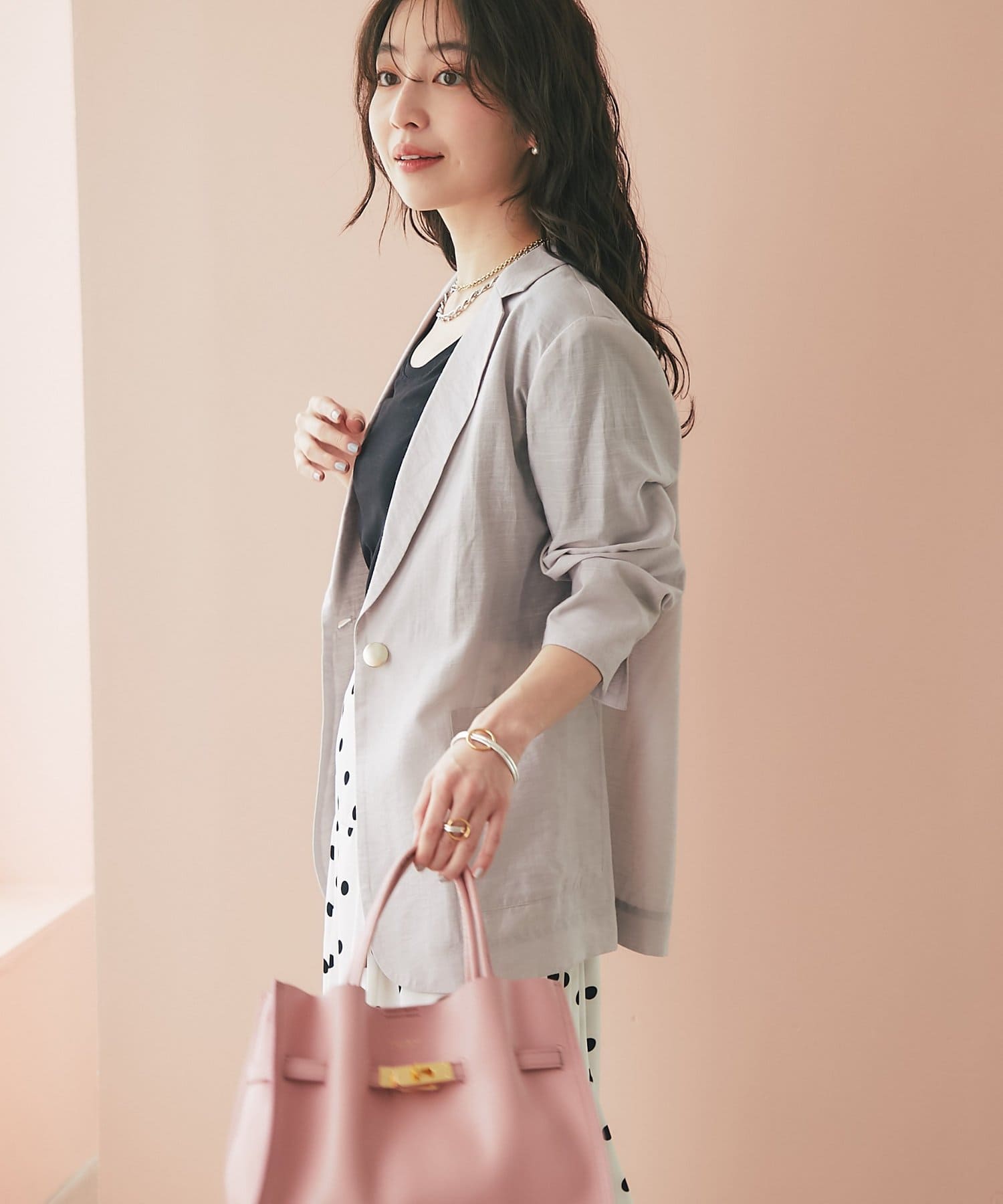 ゴールドのひとつボタンがぐ上品な印象をプラス。
