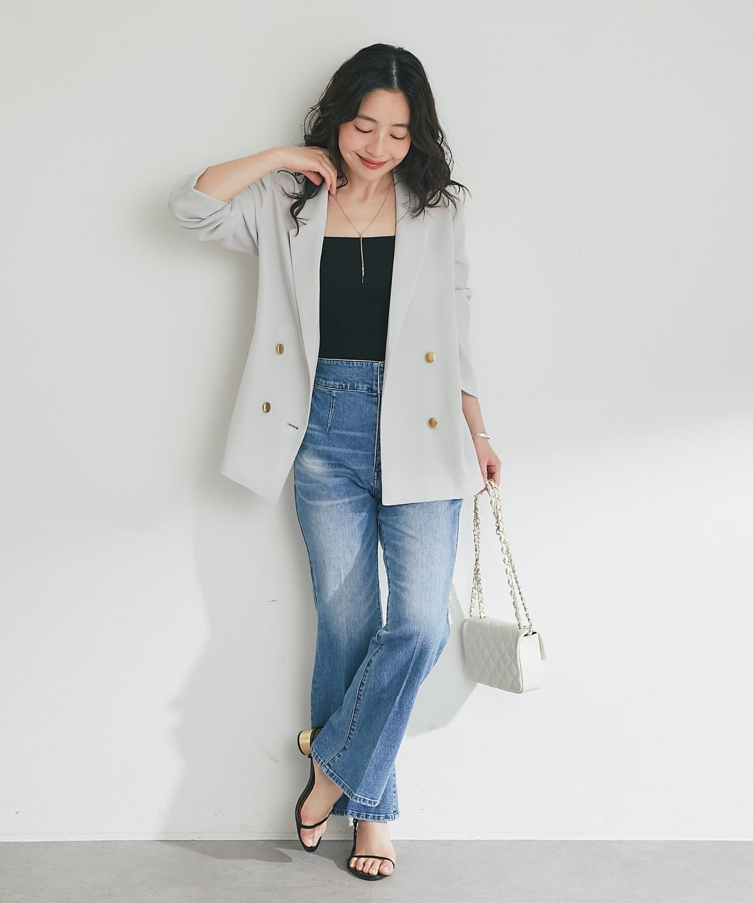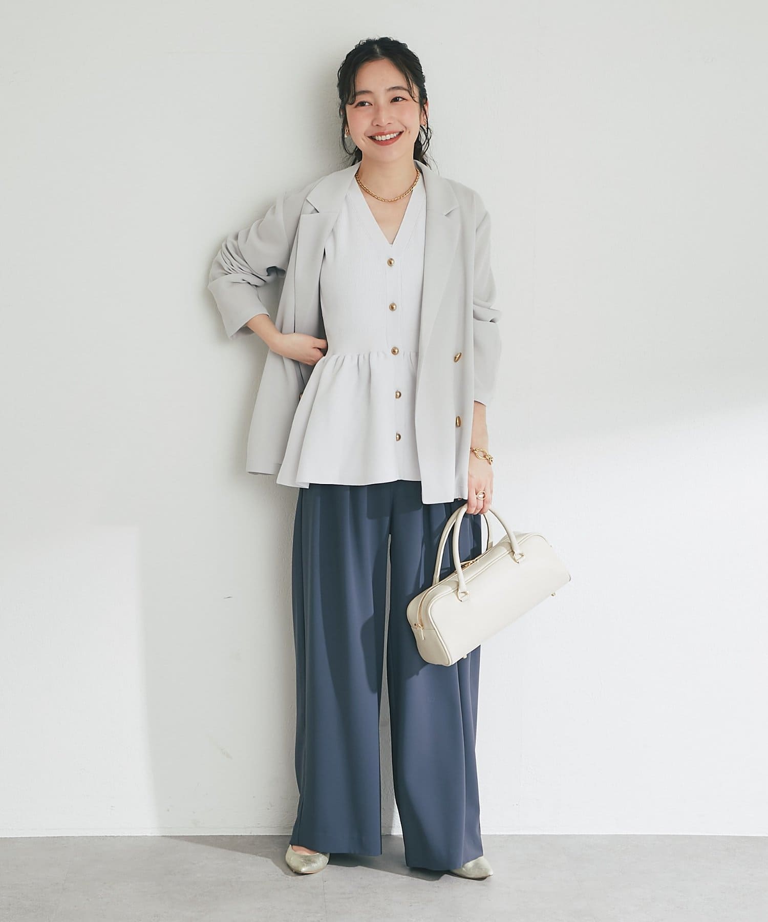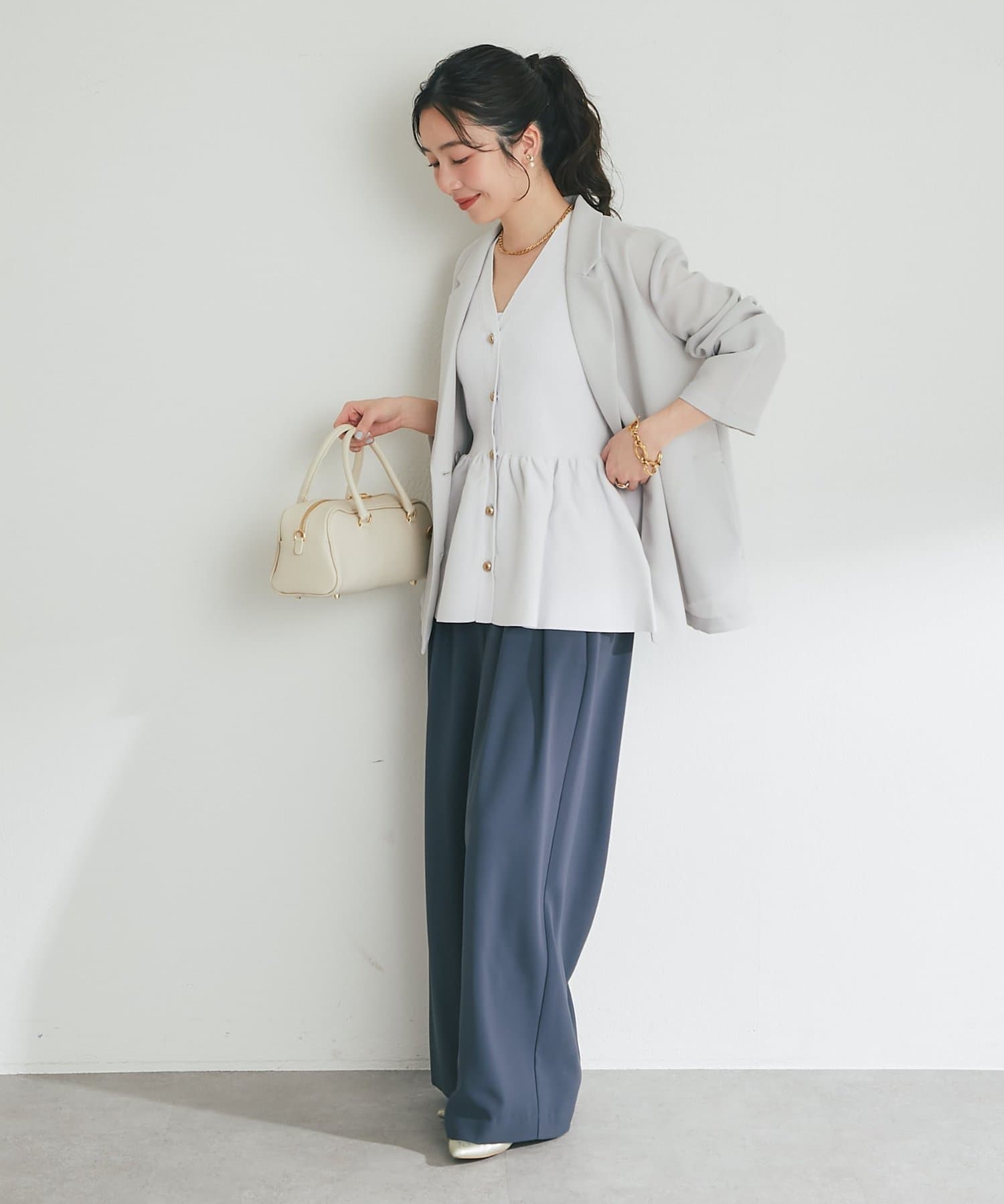 ブラウスやコンパクトニットに羽織れば、きれいめな通勤スタイルに。