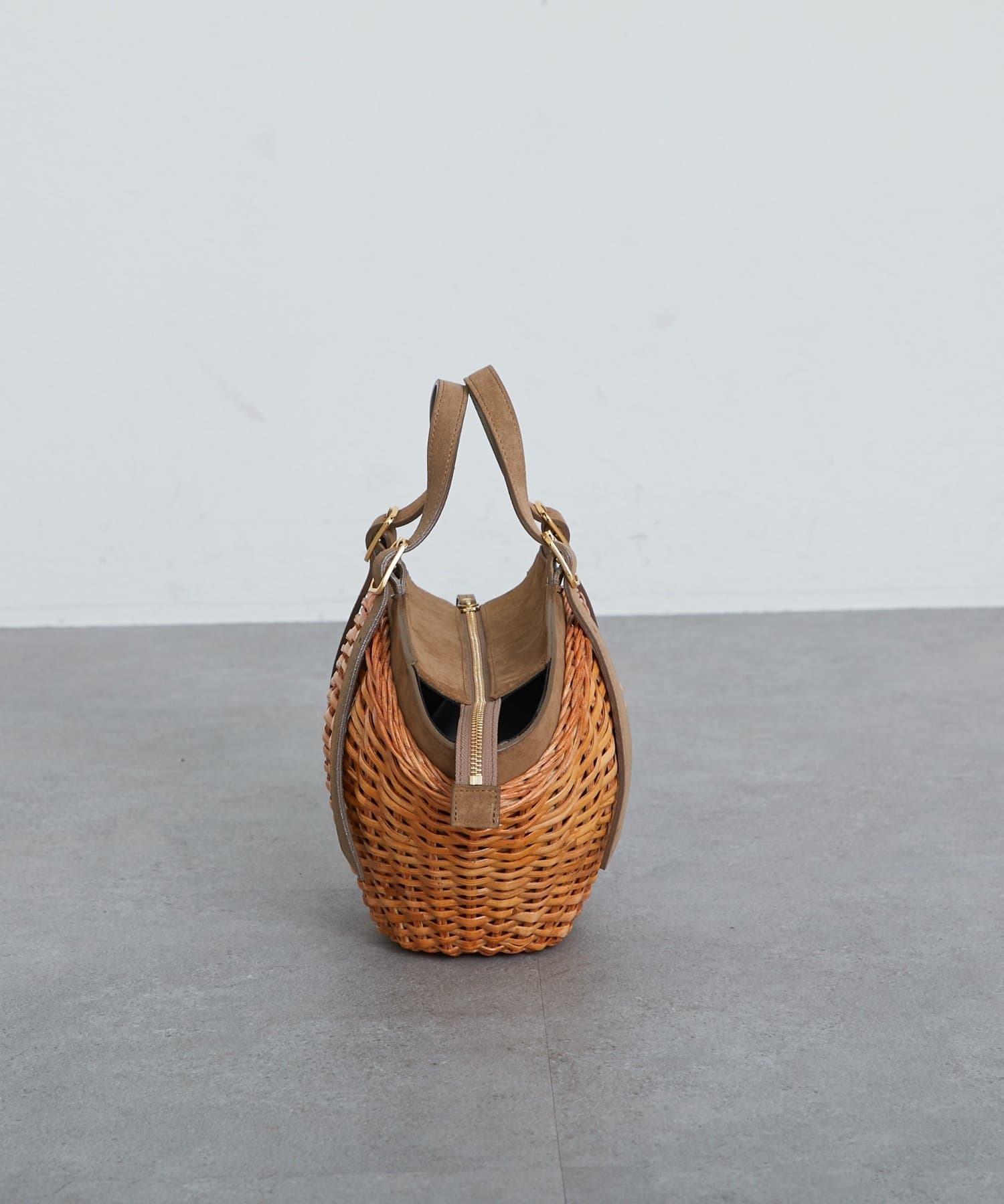 【ヴィオラドーロ】スプリットラタンスエードトリミングかごBAG