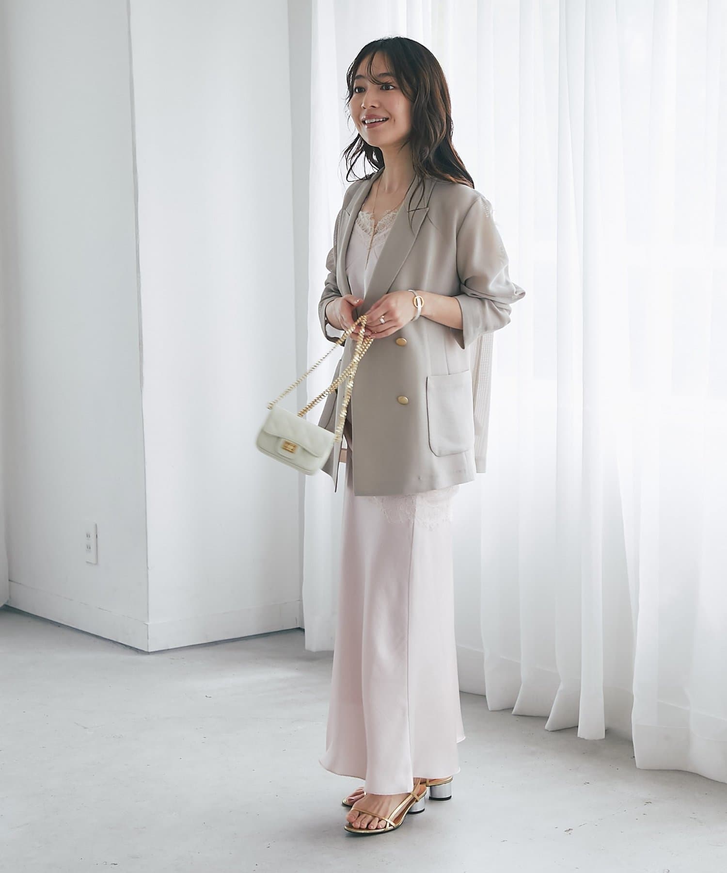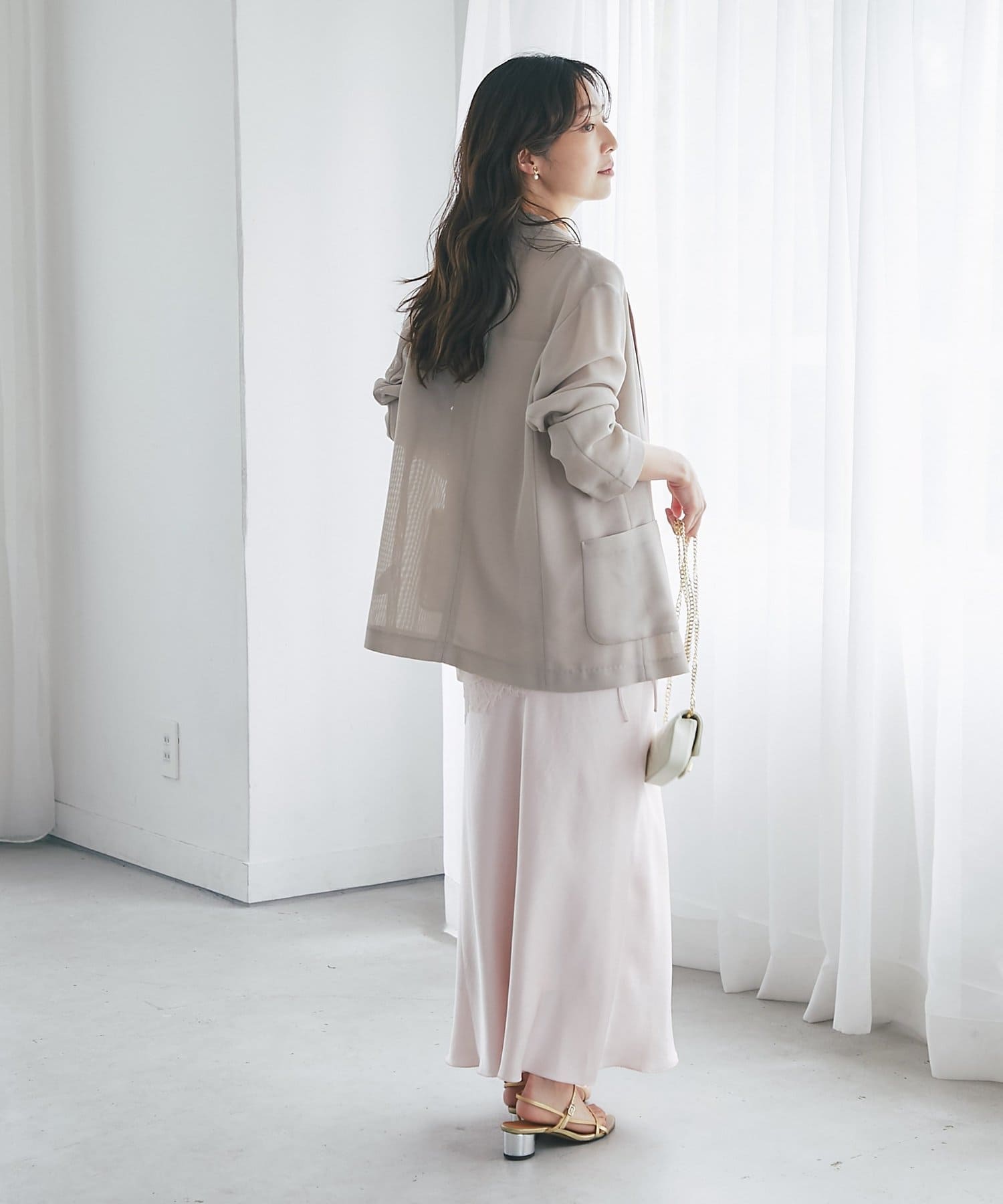 ストンと落ちるシルエットが、女性らしいラインを際立たせてくれます。