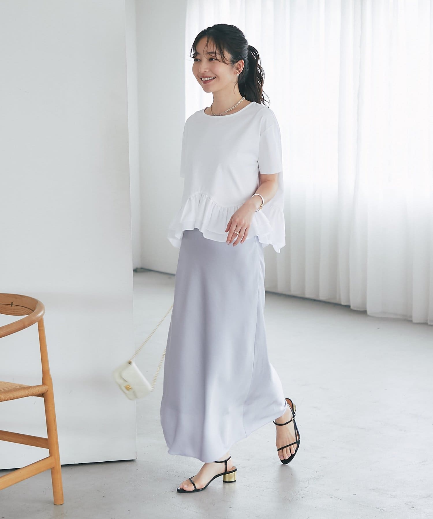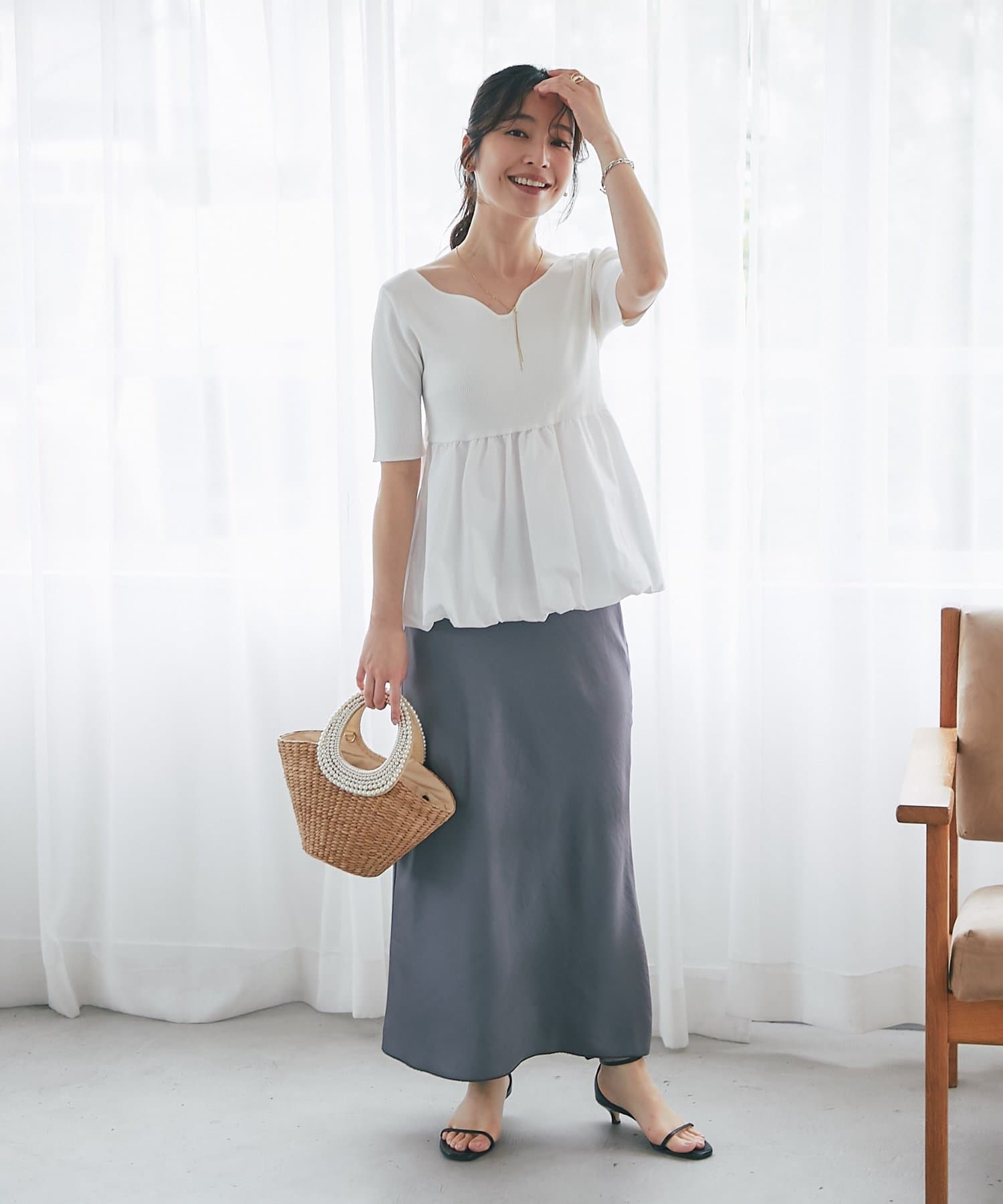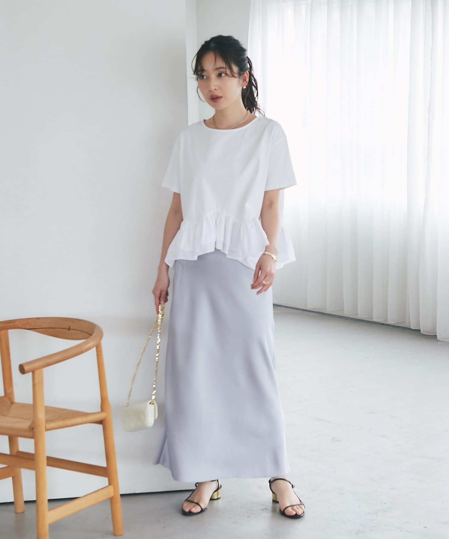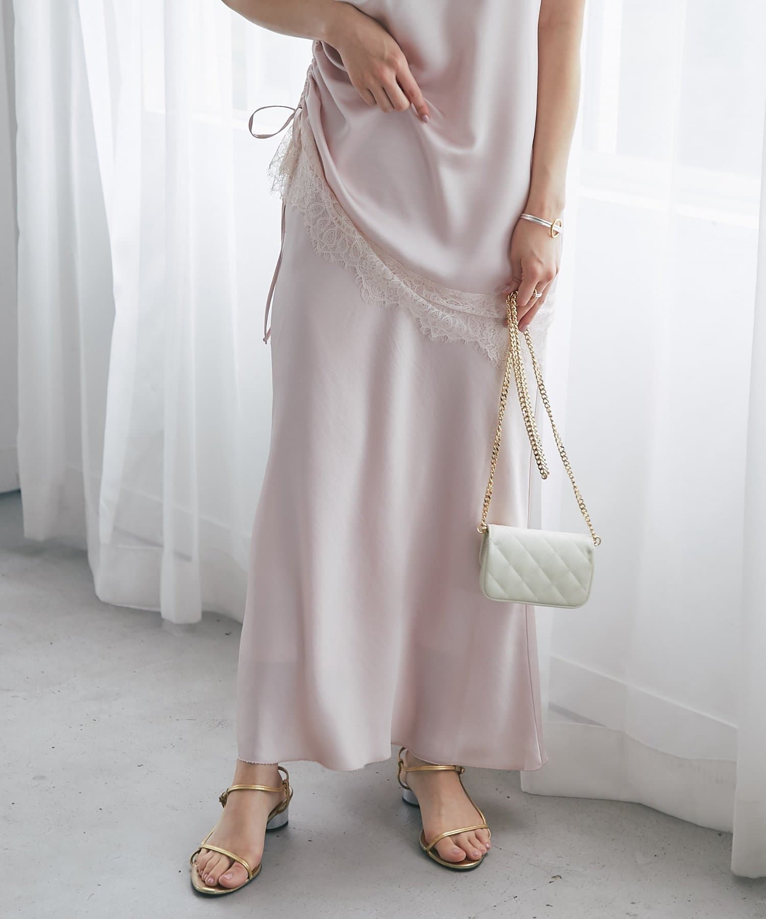 艶めく素材と落ち感が女性らしさを引き立てるスカート