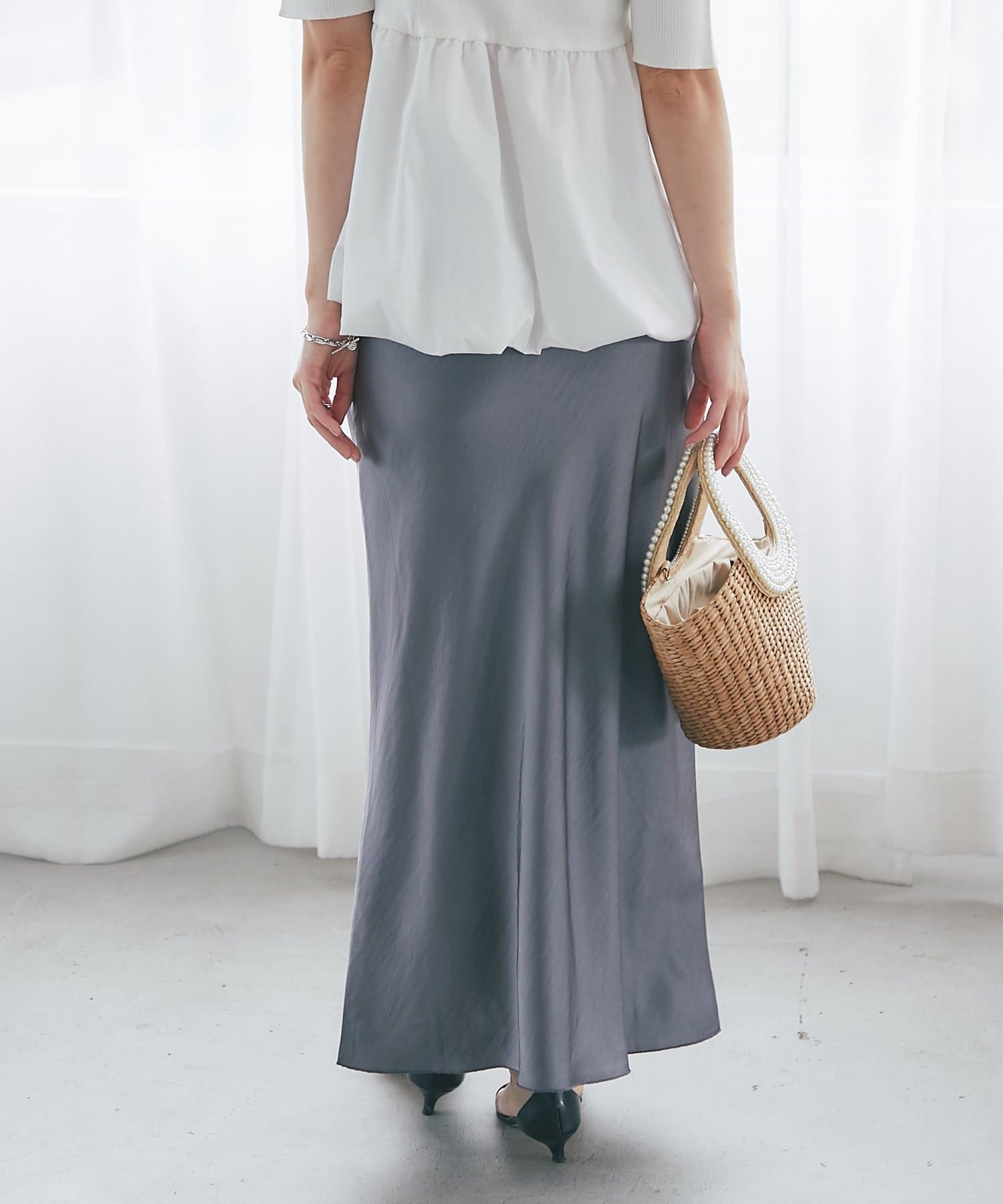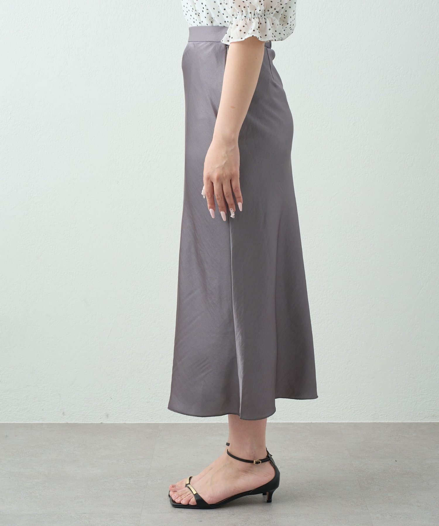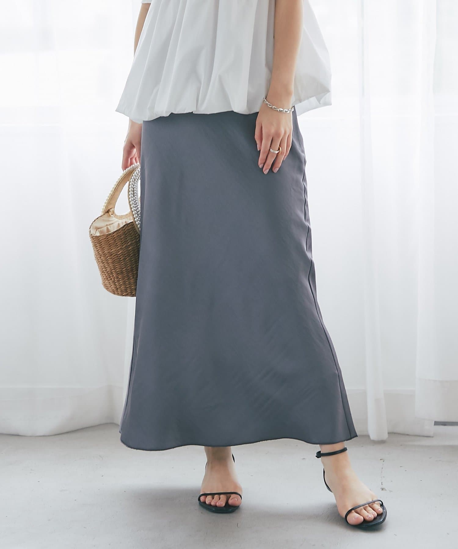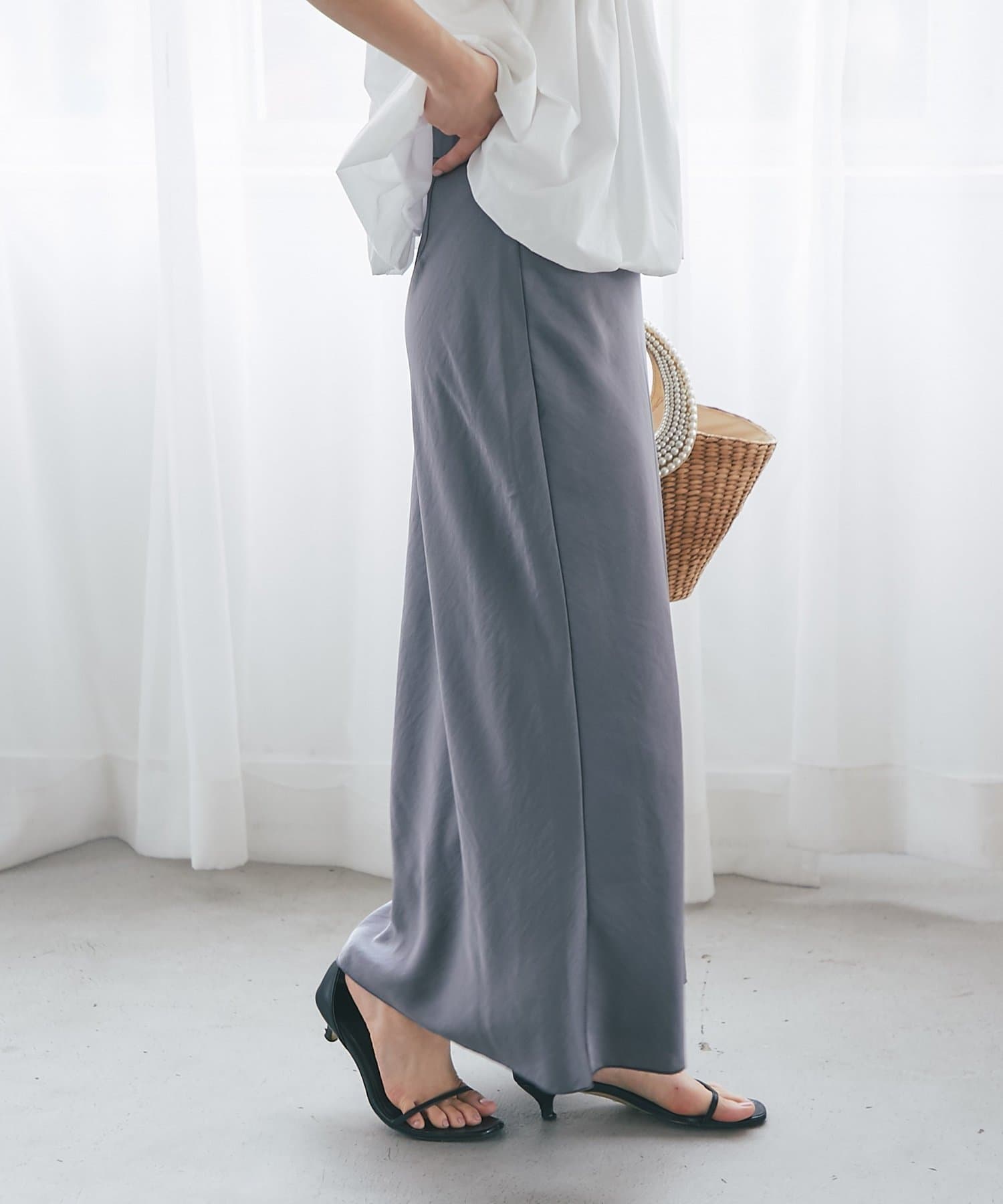 上品な光沢感とすっきりとしたしなやかなシルエットが魅力のサテンスカート。