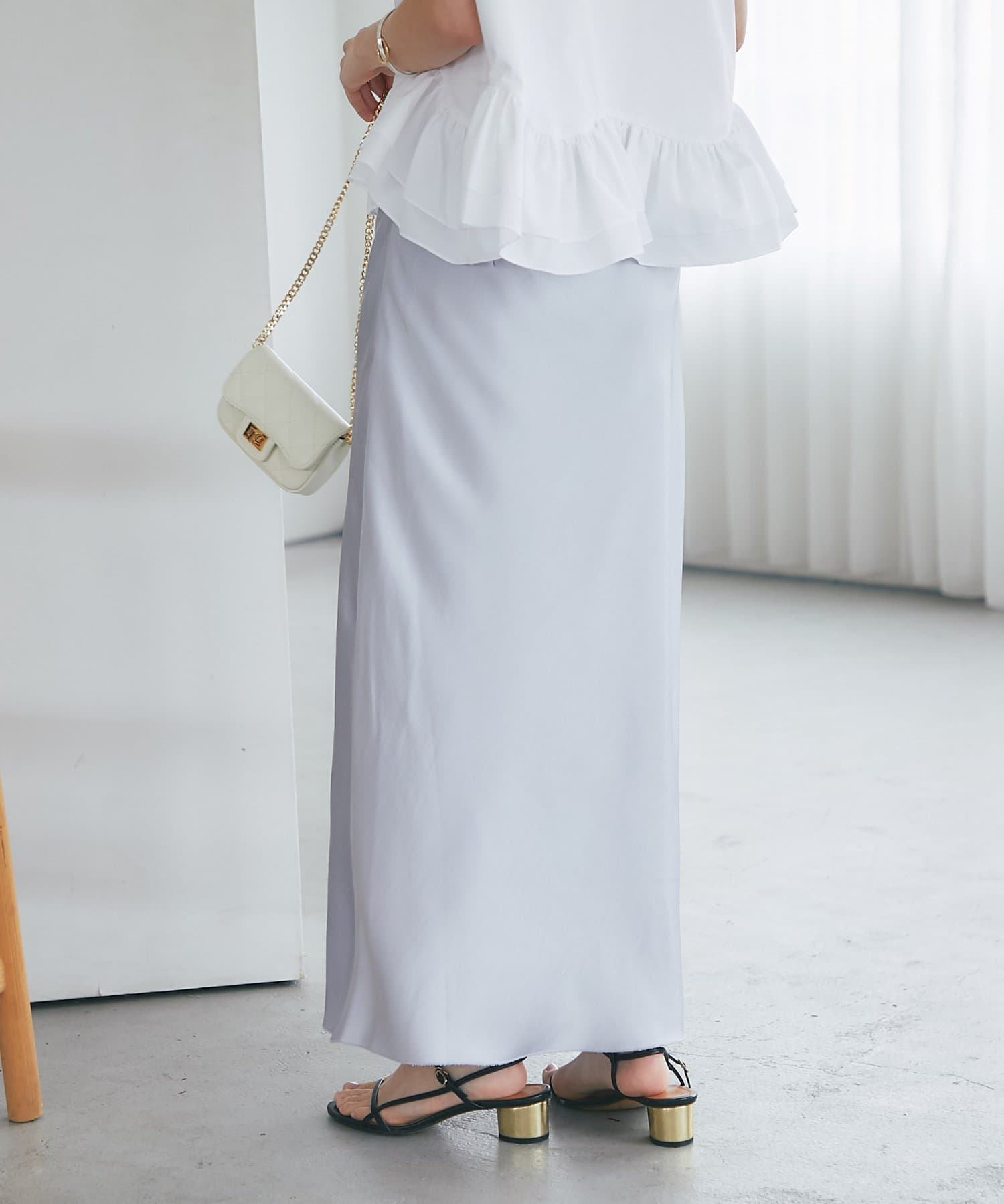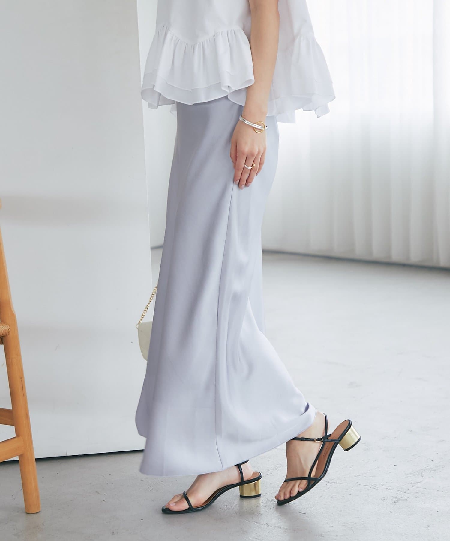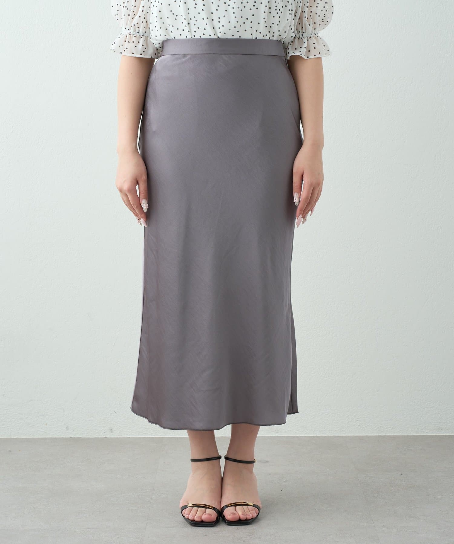 上品な光沢感とすっきりとしたしなやかなシルエットが魅力のサテンスカート。