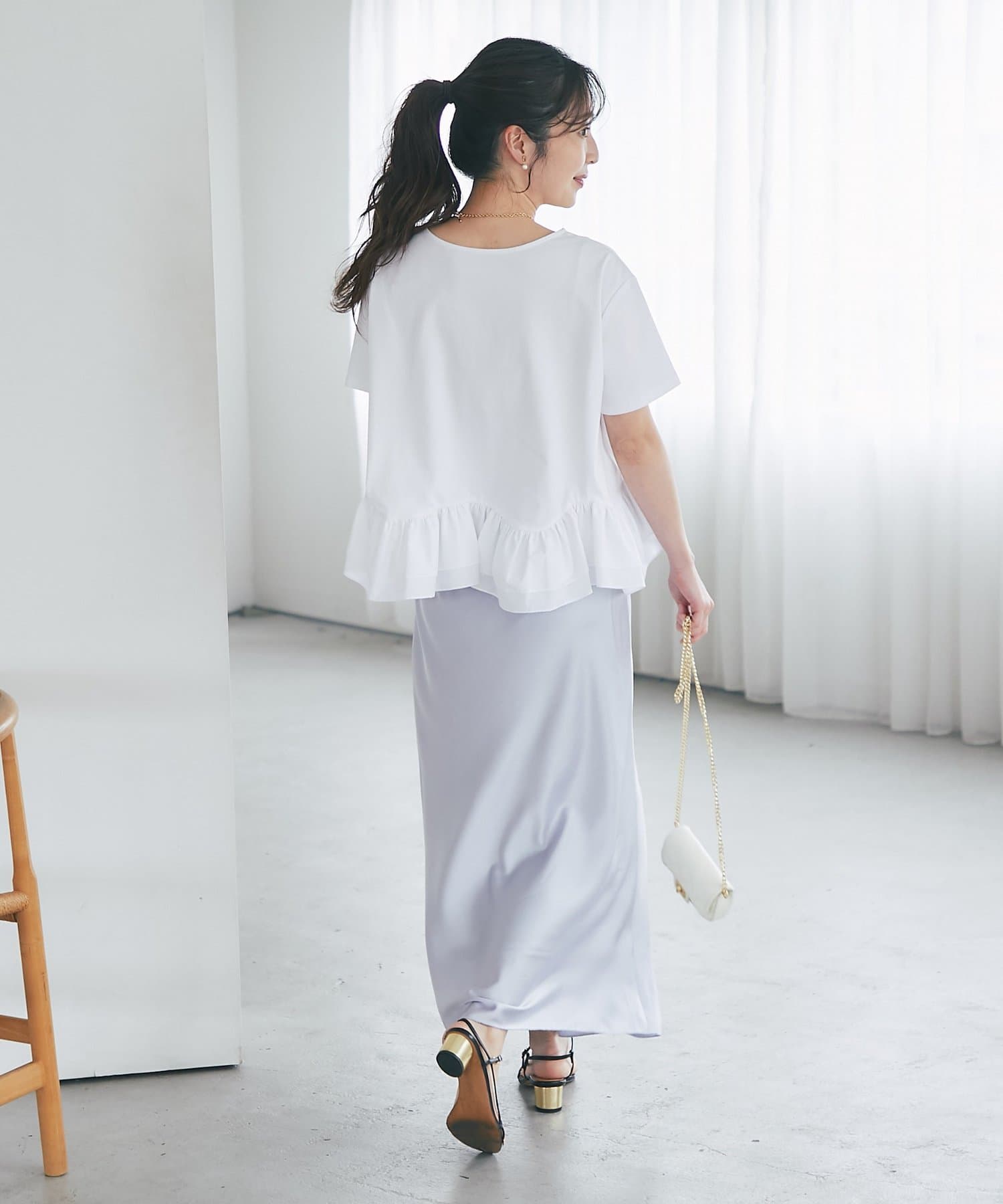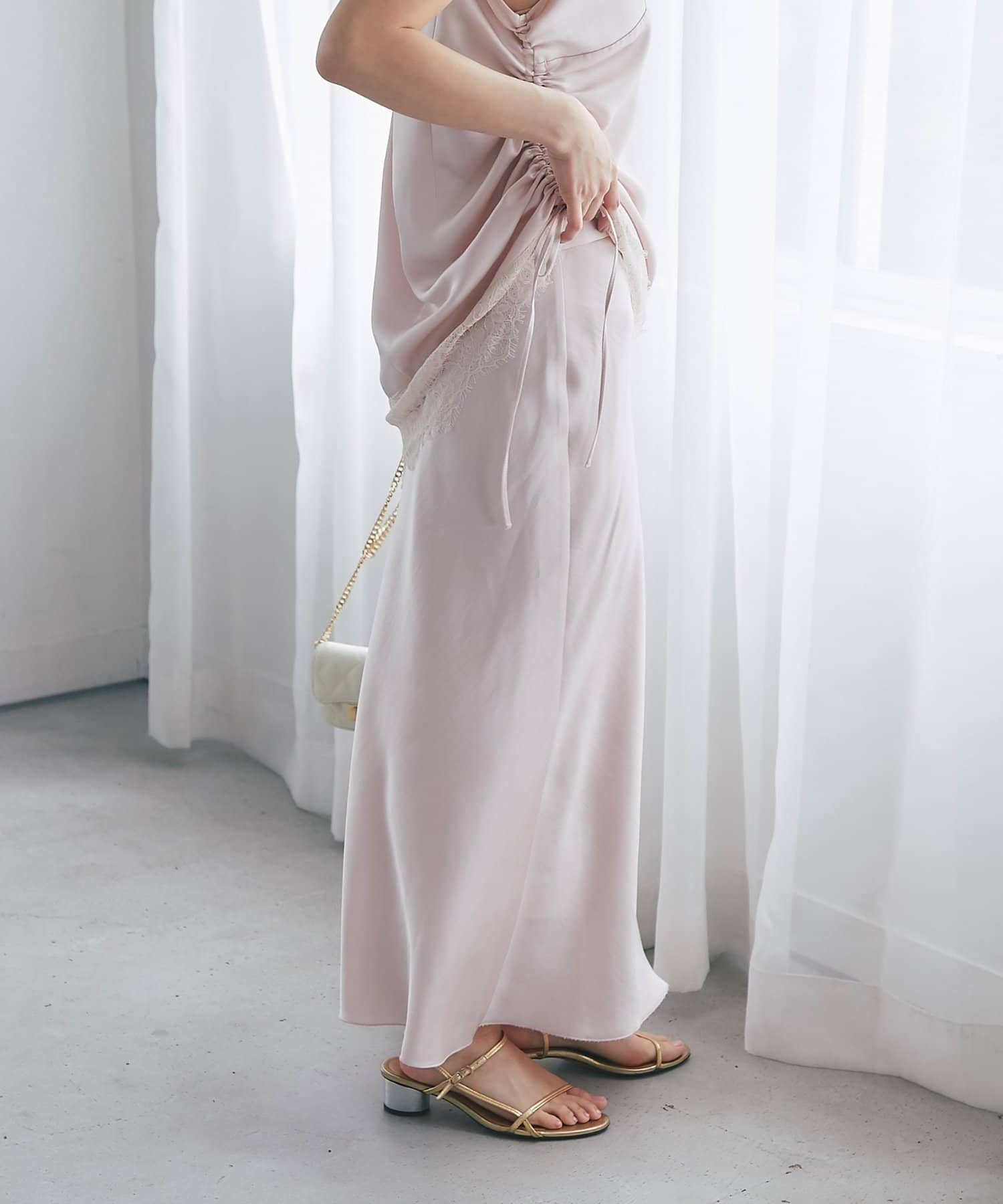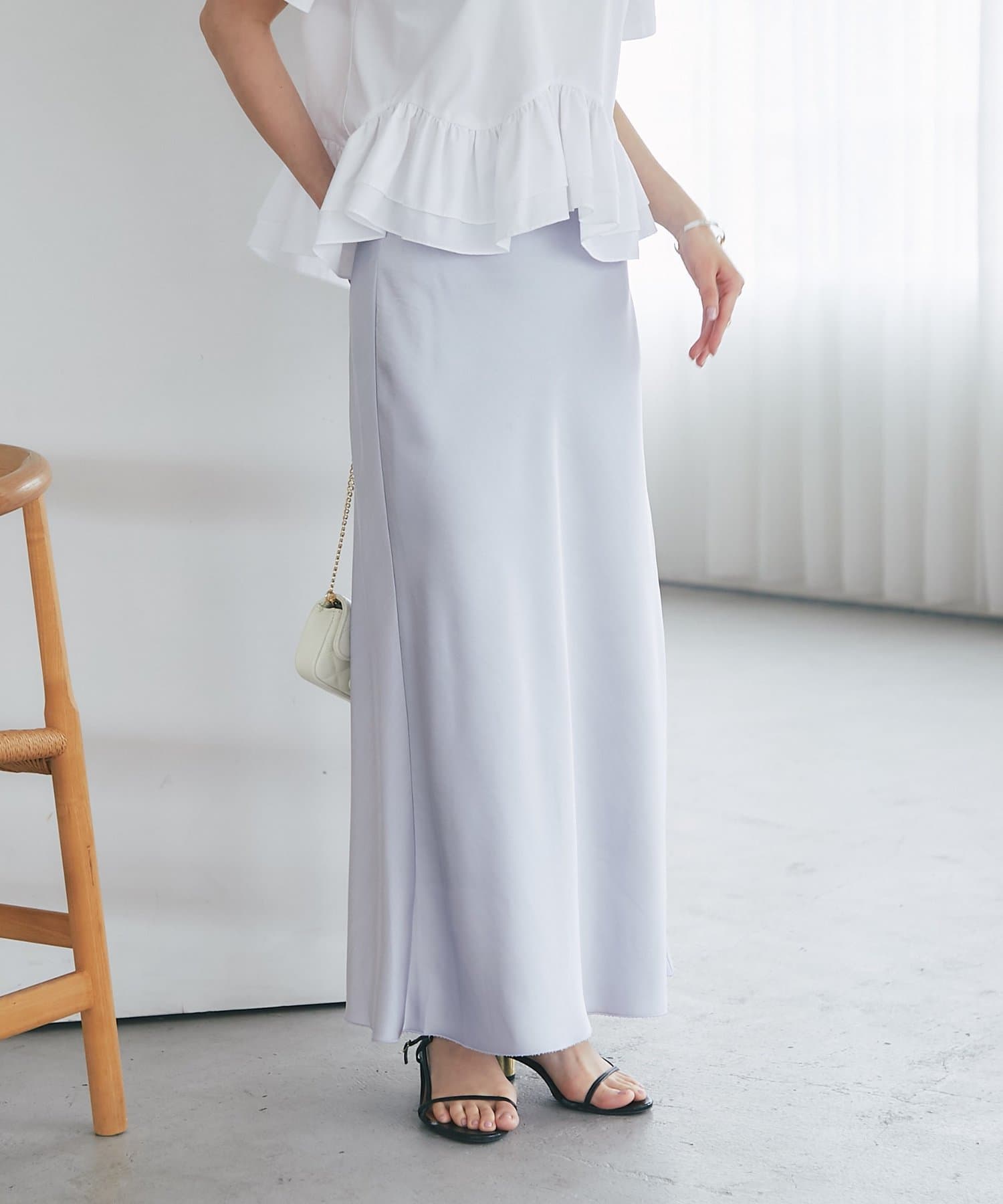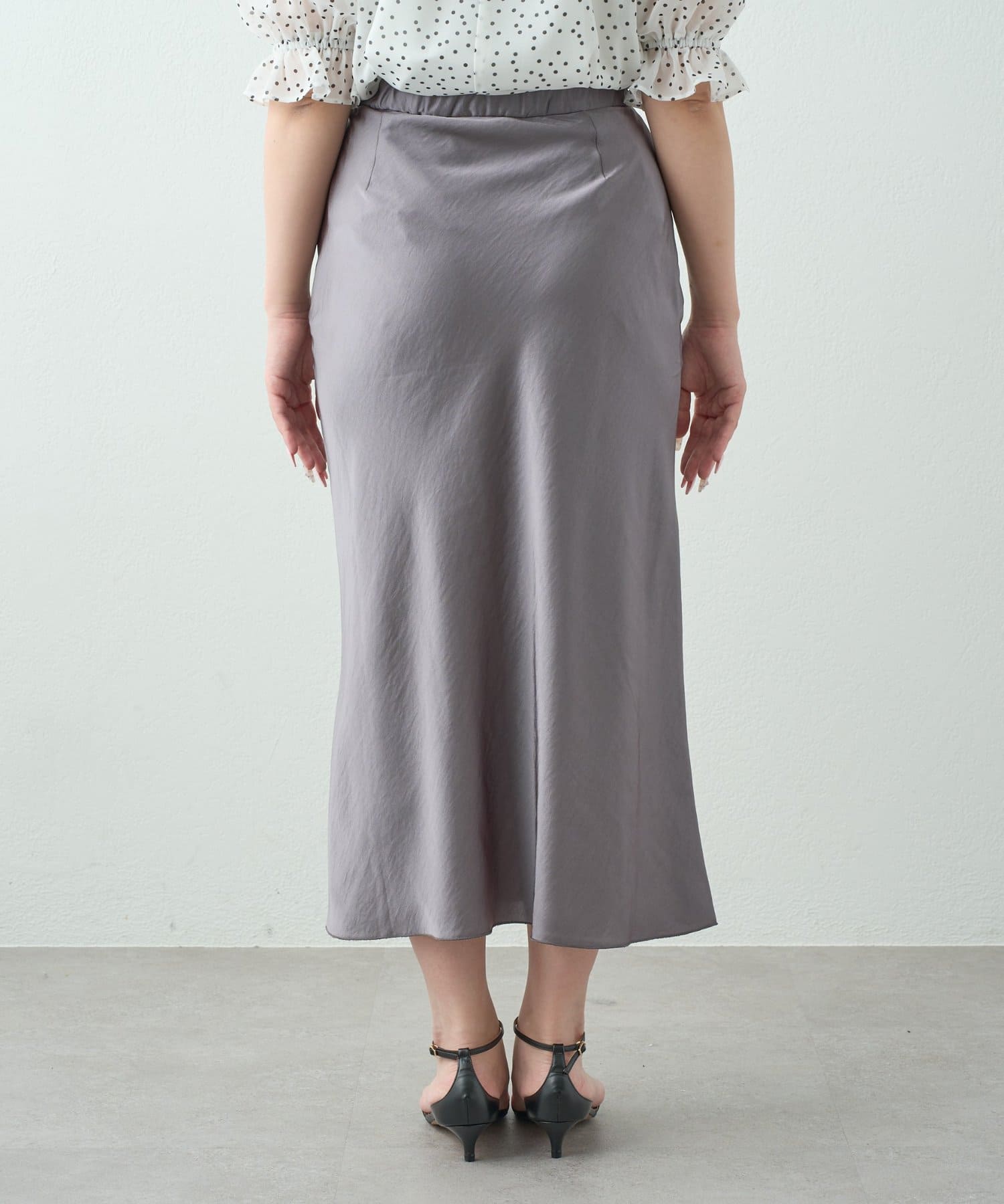 上品な光沢感とすっきりとしたしなやかなシルエットが魅力のサテンスカート。