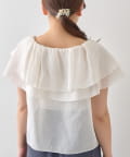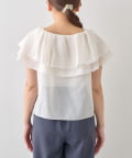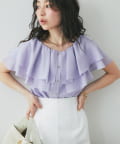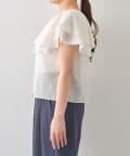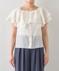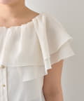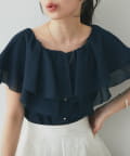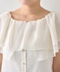 顔まわりを華やかに演出する、ケープ風デザインのノースリーブブラウス。