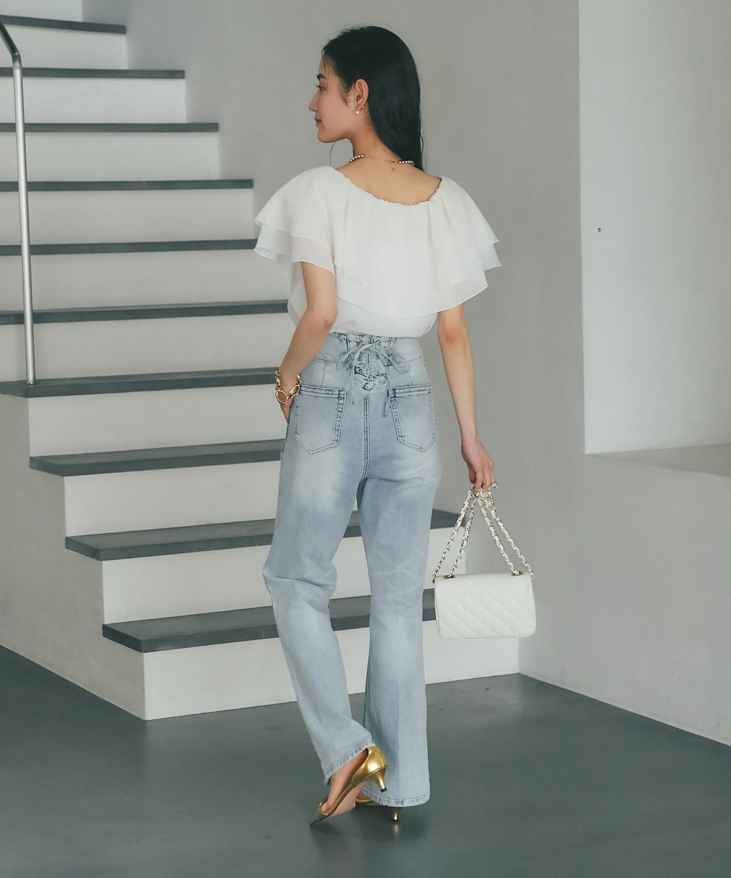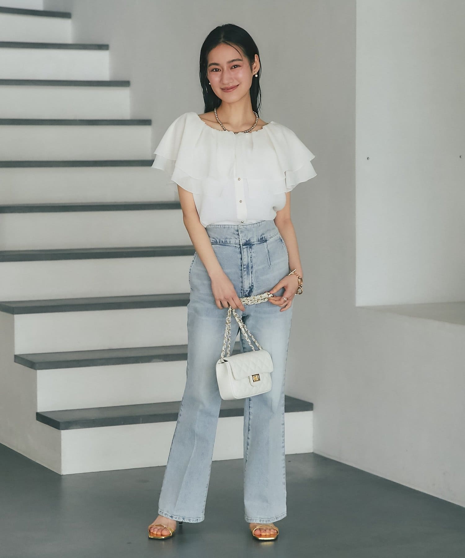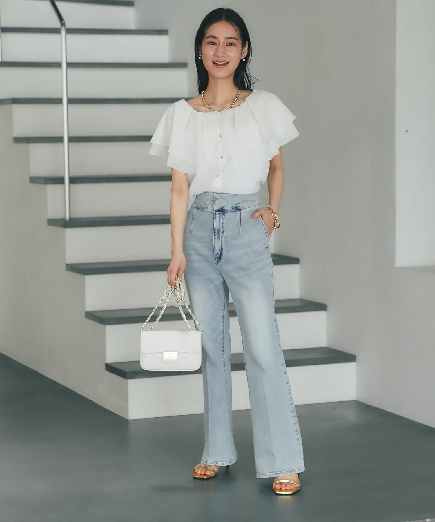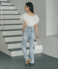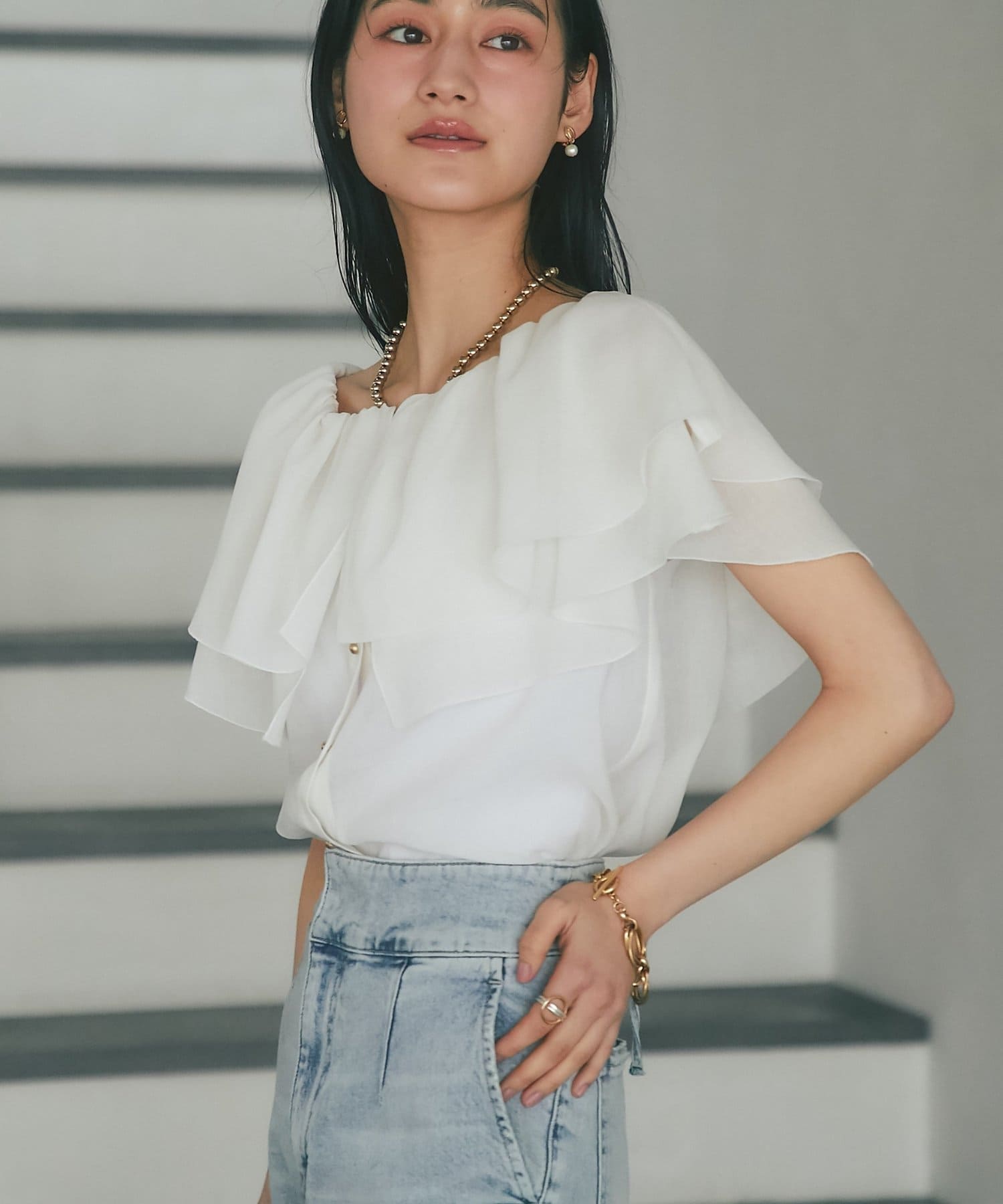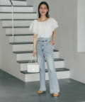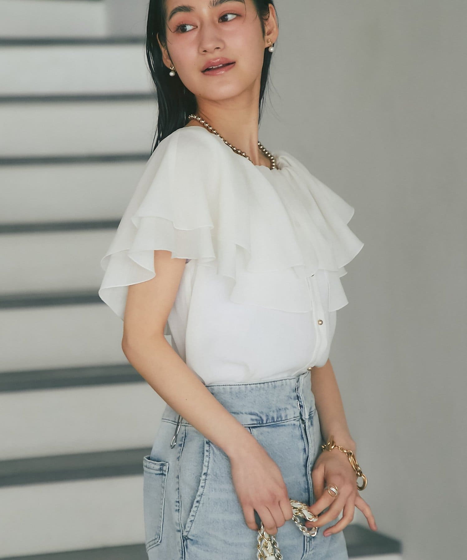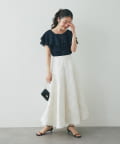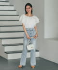 デニムを合わせて甘さを程よく抑えた、大人カジュアルなスタイリングも◎