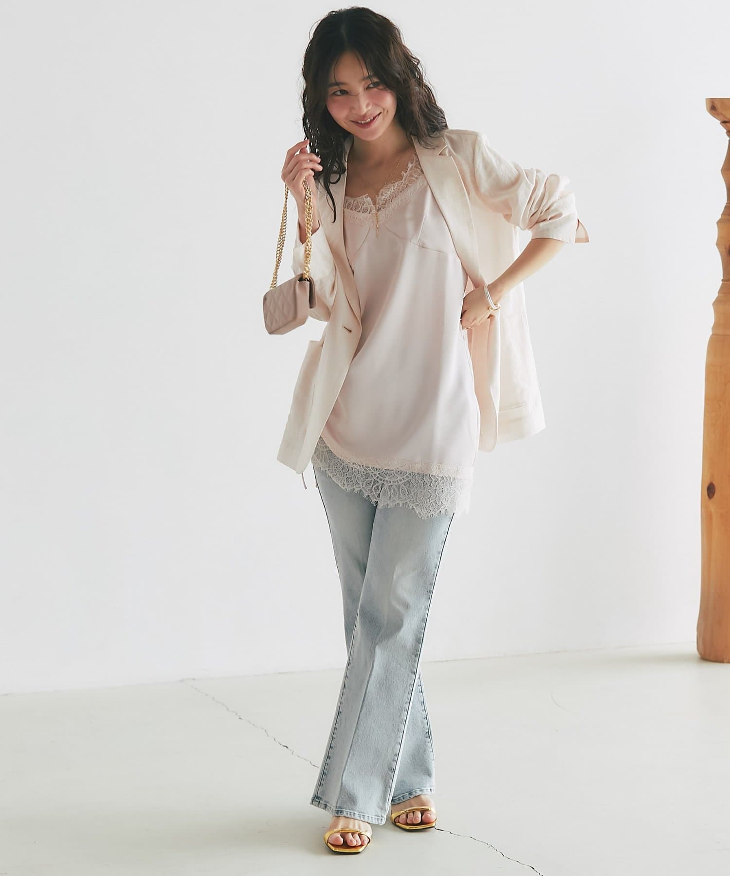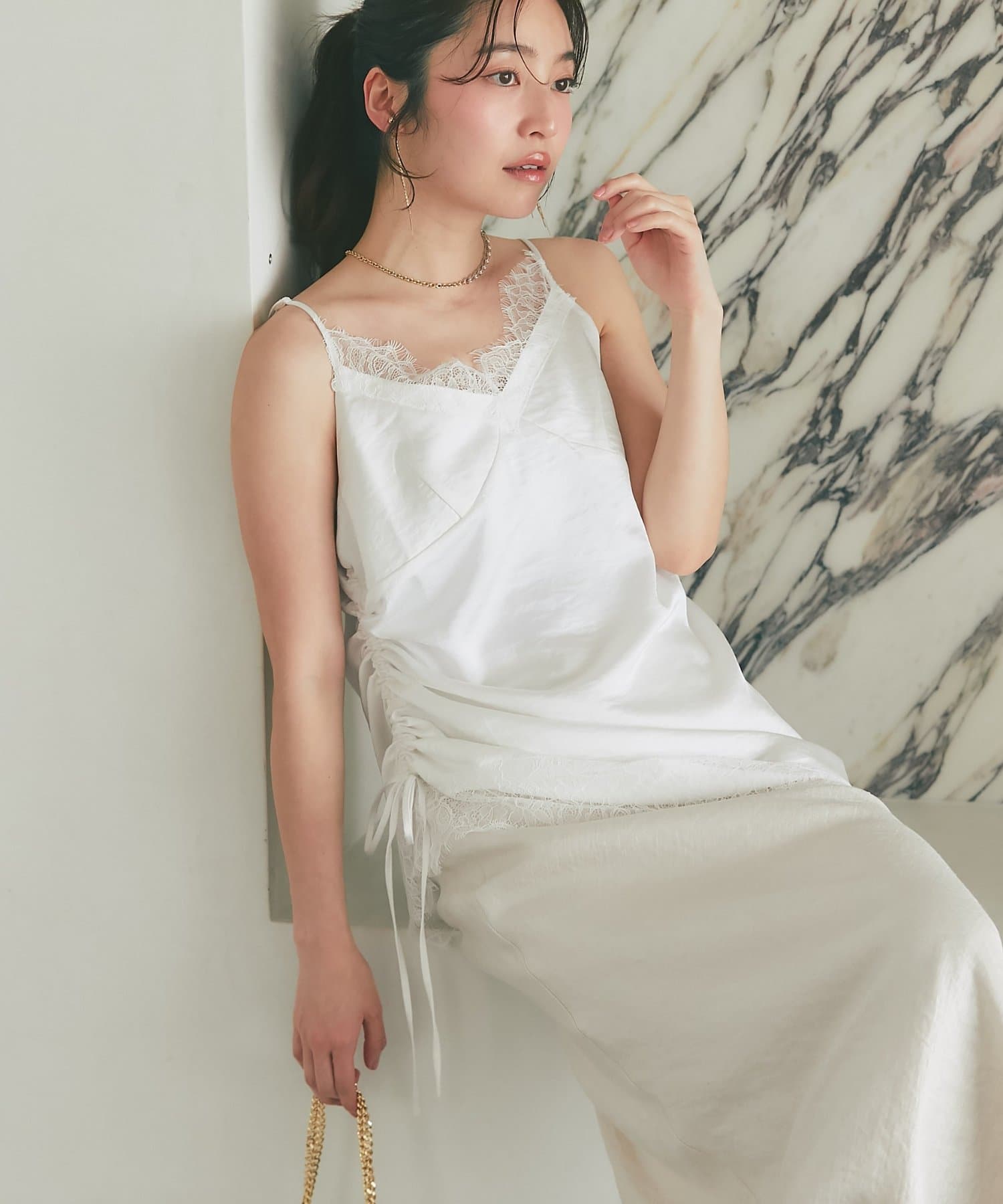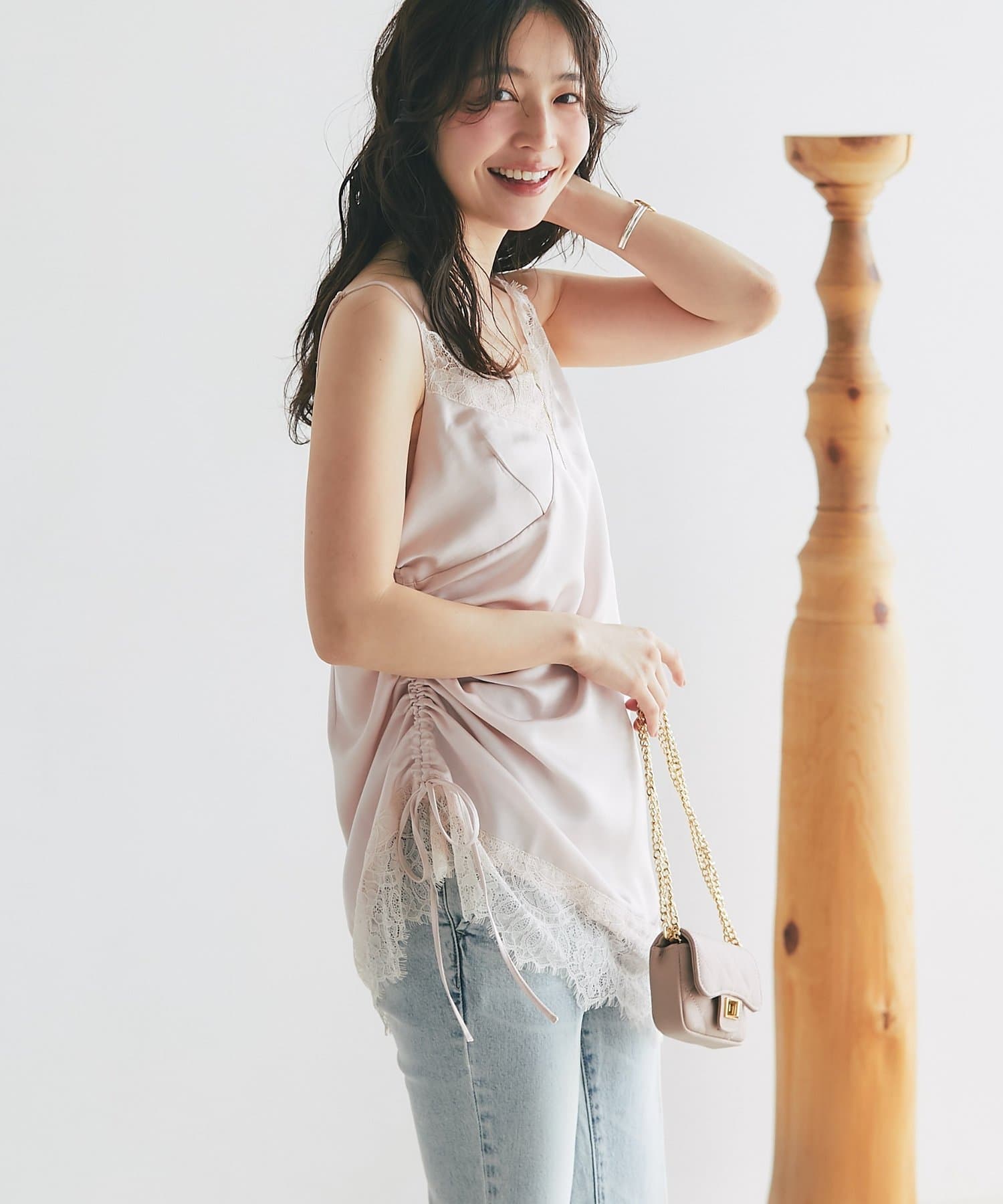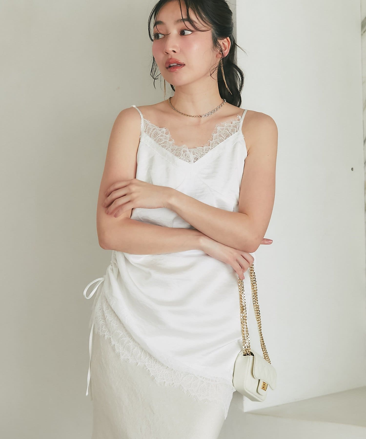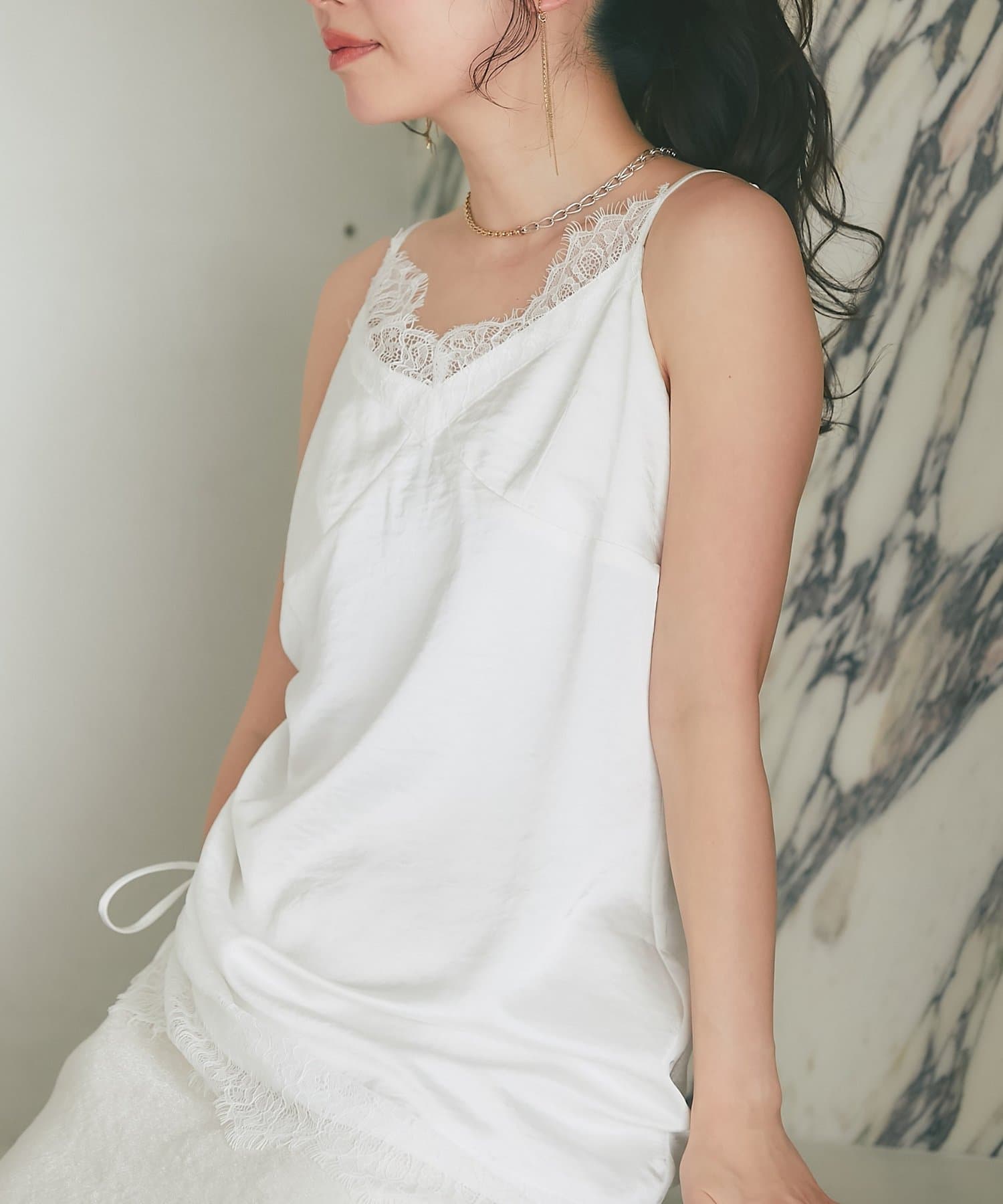 TOP > La boutique BonBon > レディース > トップス > キャミソール > レースサテンアシメドロストキャミ