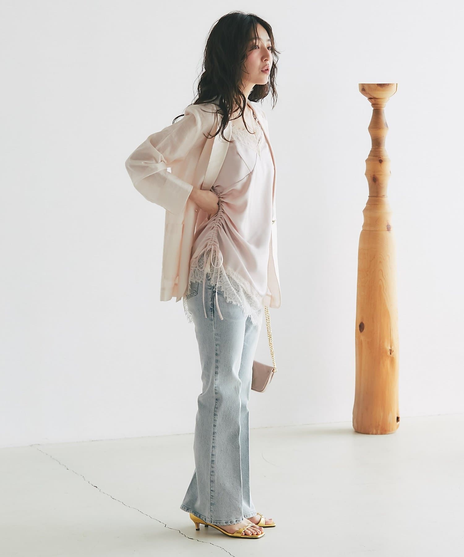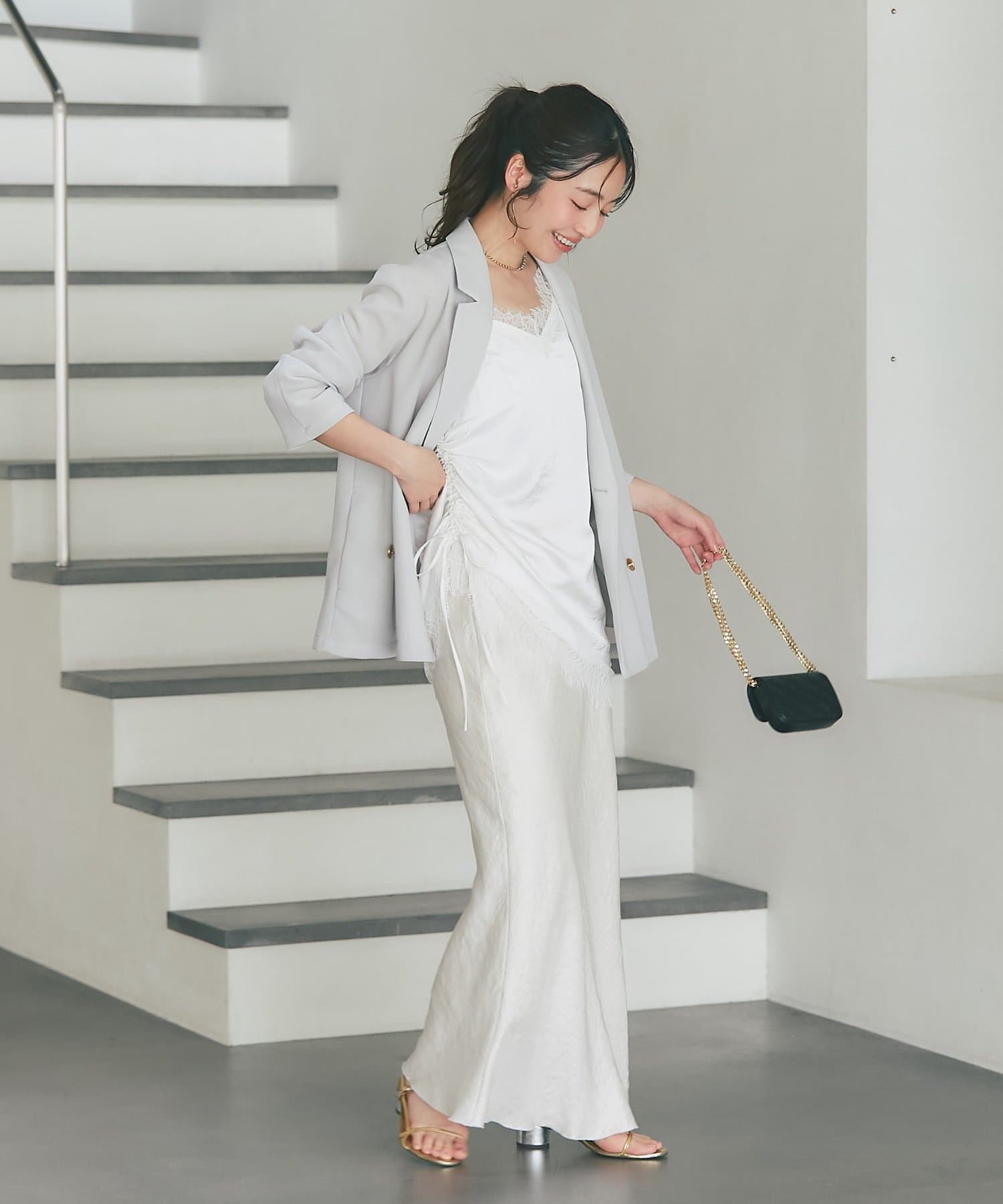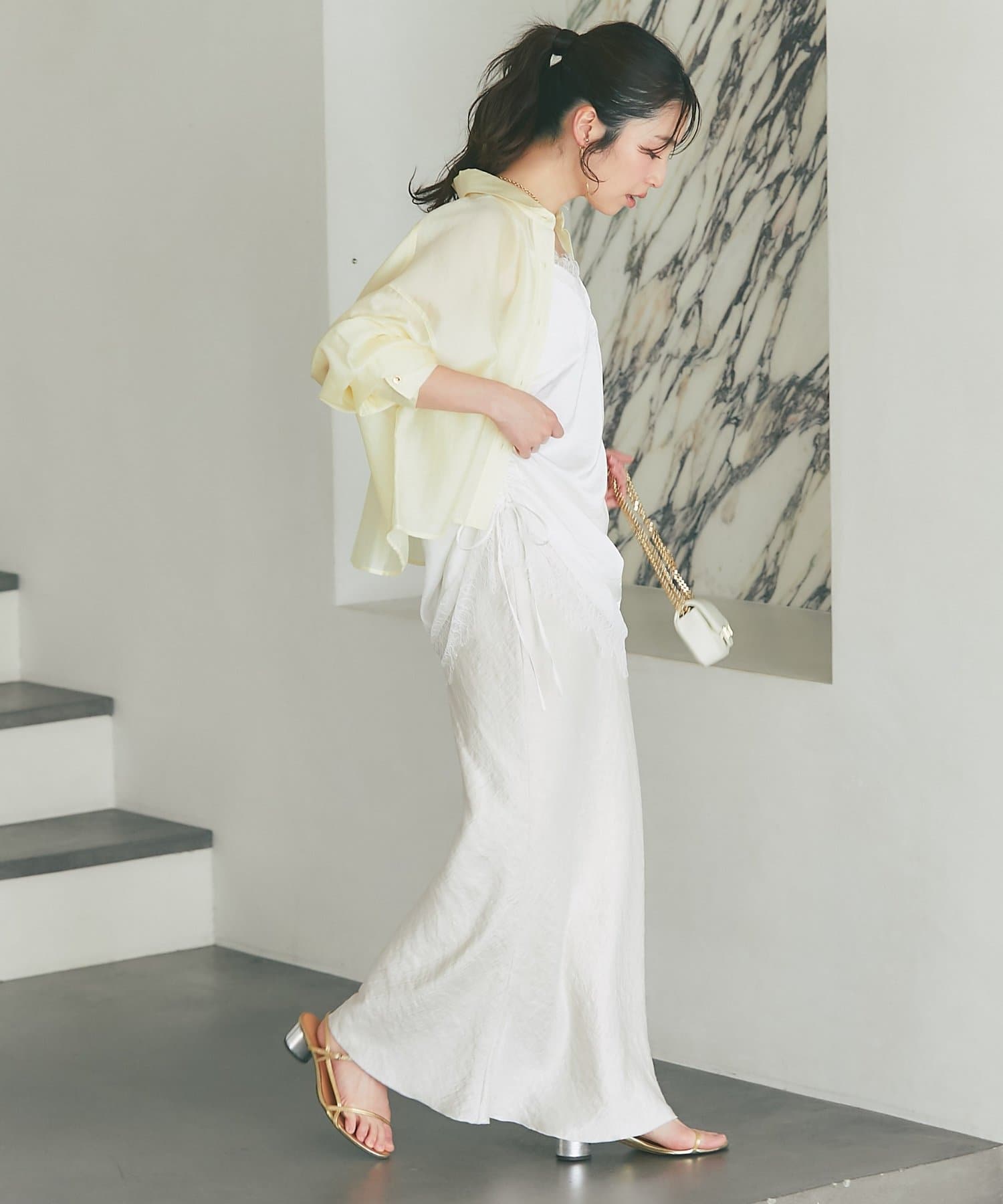 サテン生地は程よい光沢感があり、女性らしさを惹きたてる素材感です。