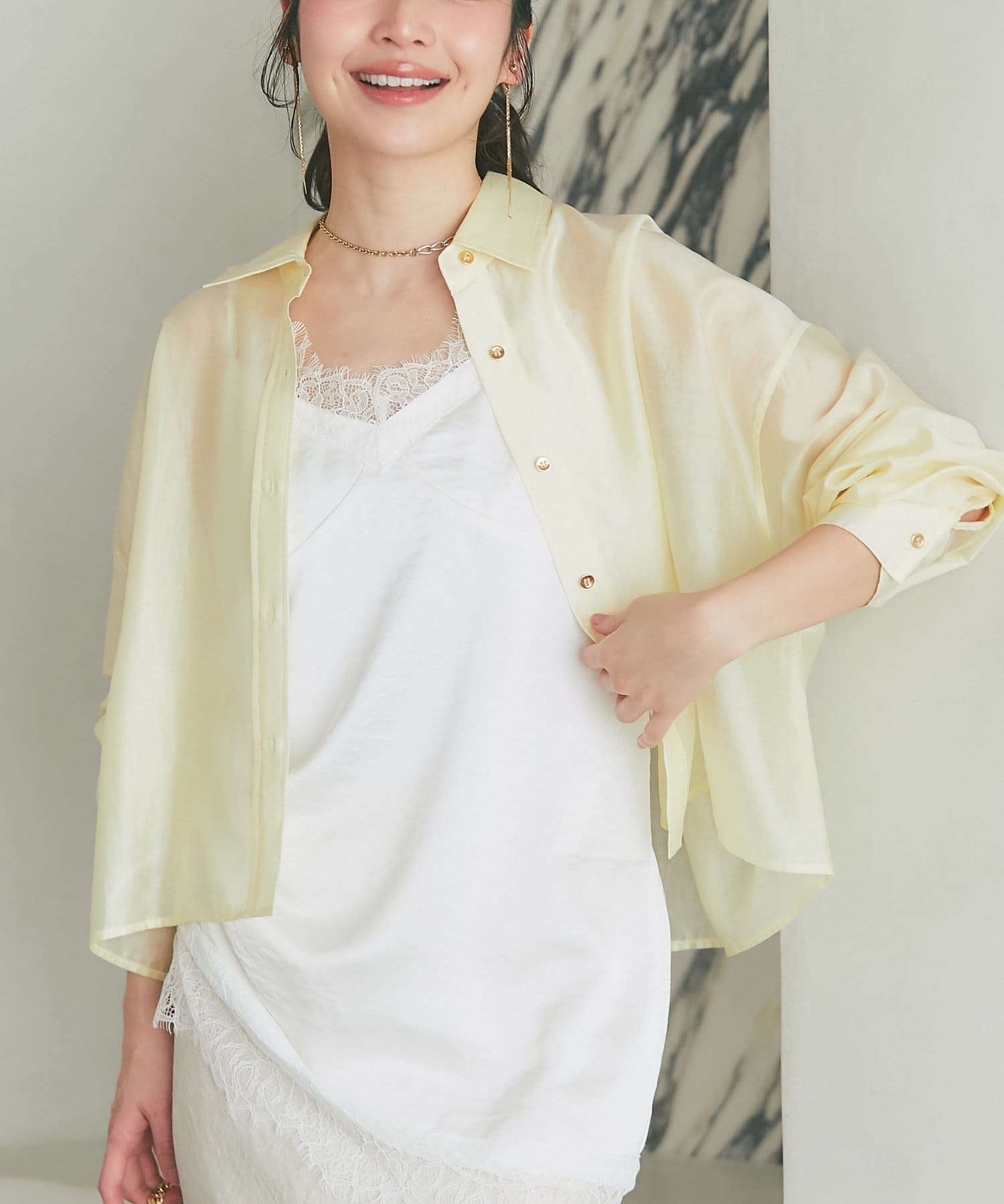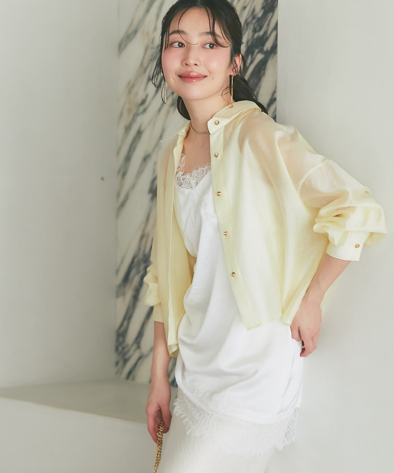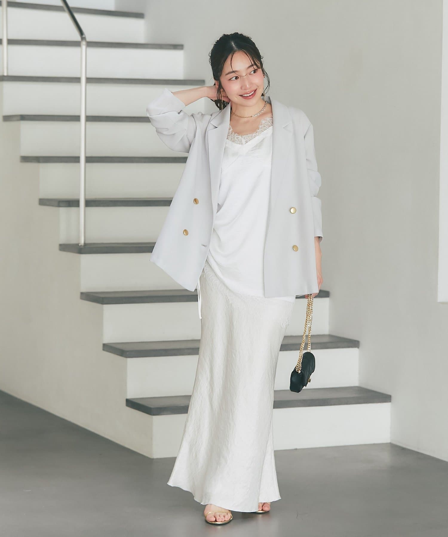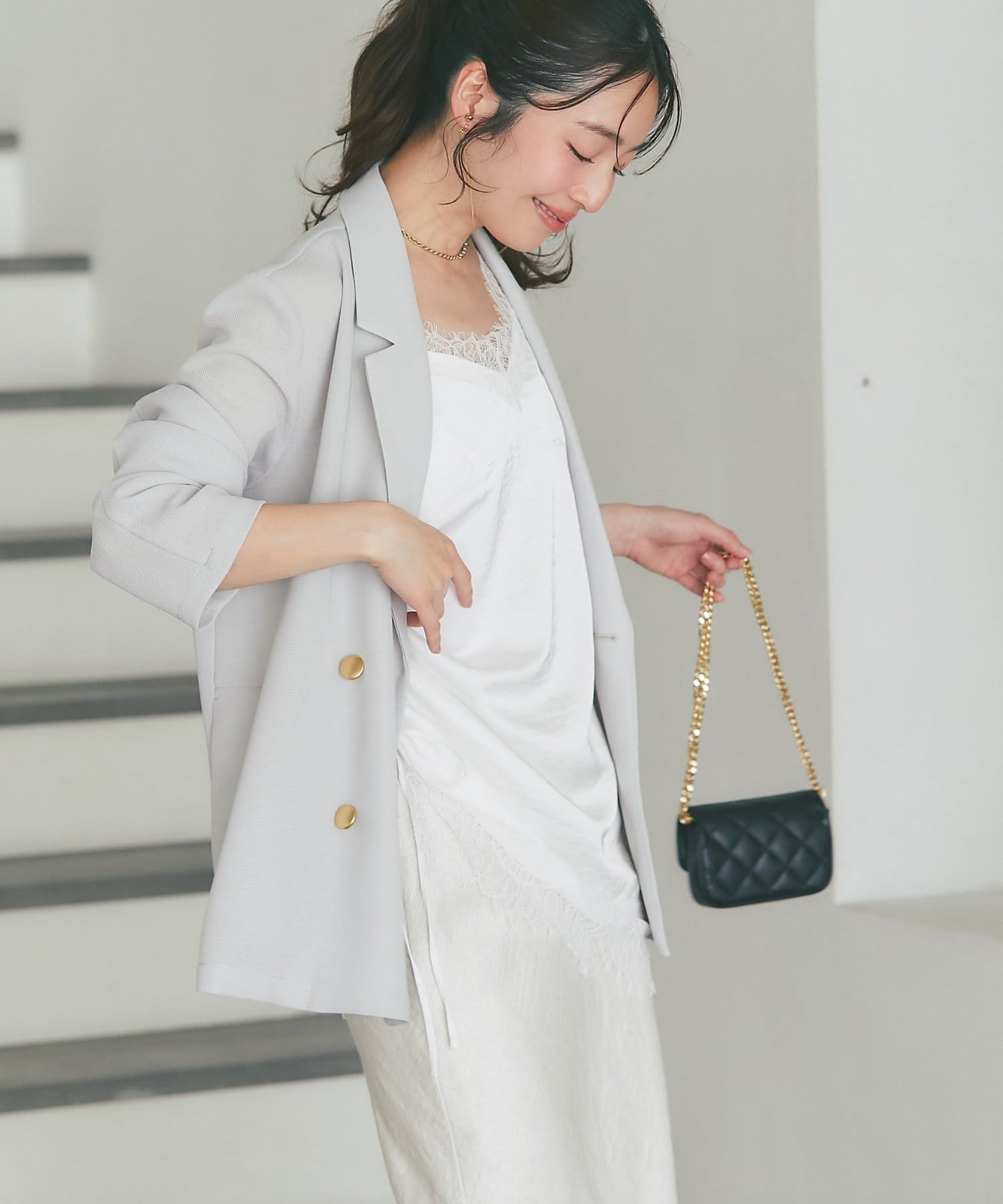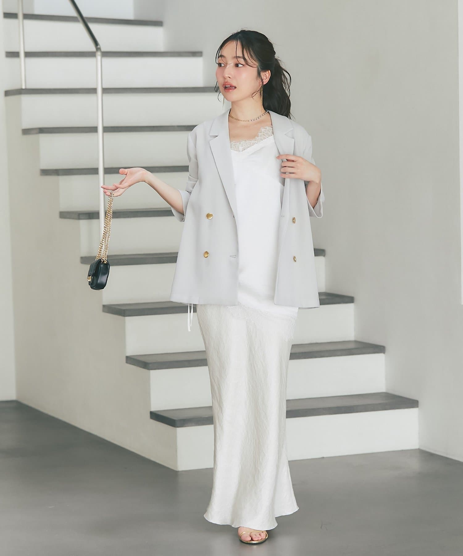 ジャケットやカーディガンを上から羽織った抜け感のあるスタイリングにも。