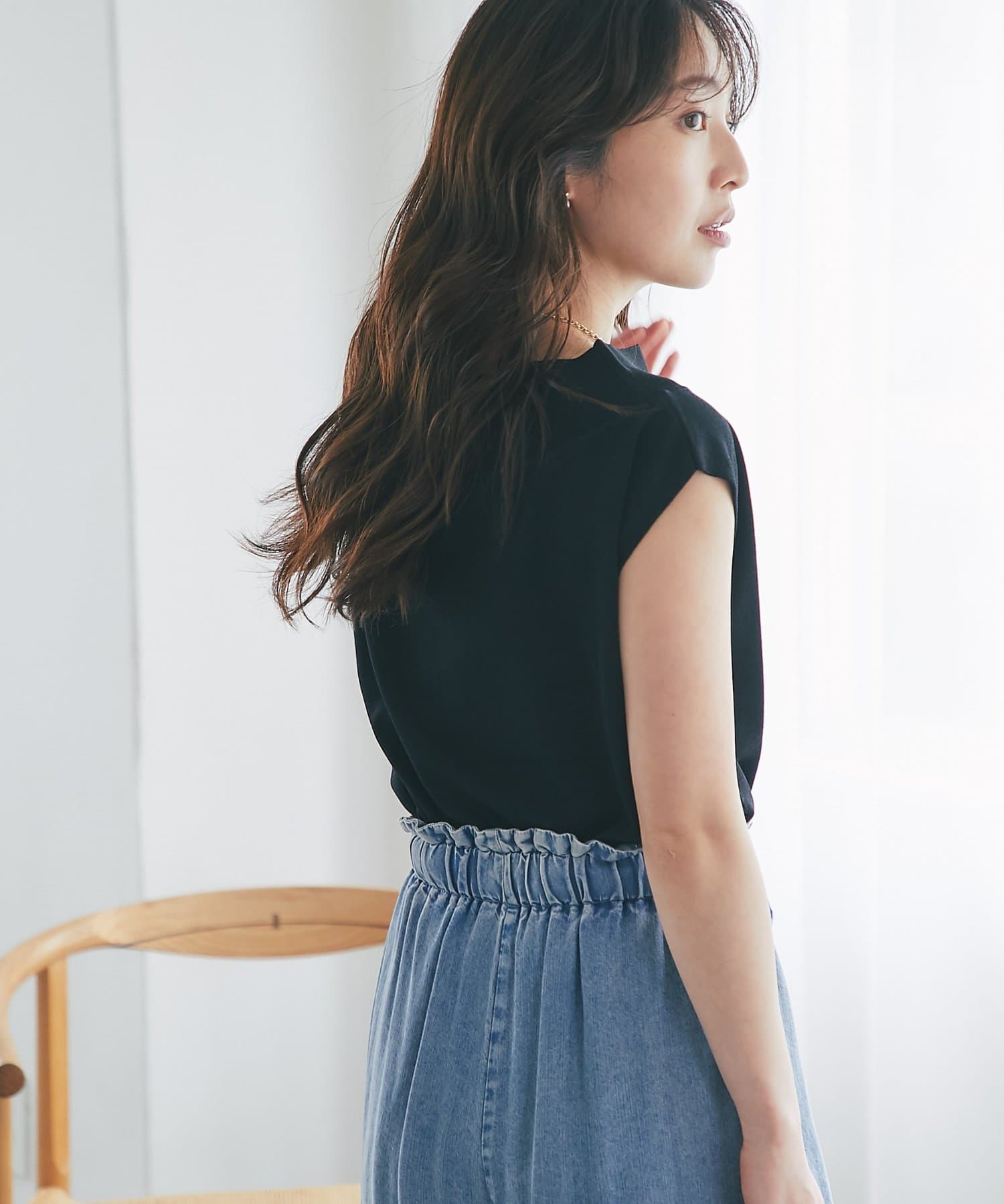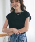ベーシックながらも、フレンチスリーブの上品さで、洗練された大人の印象に。