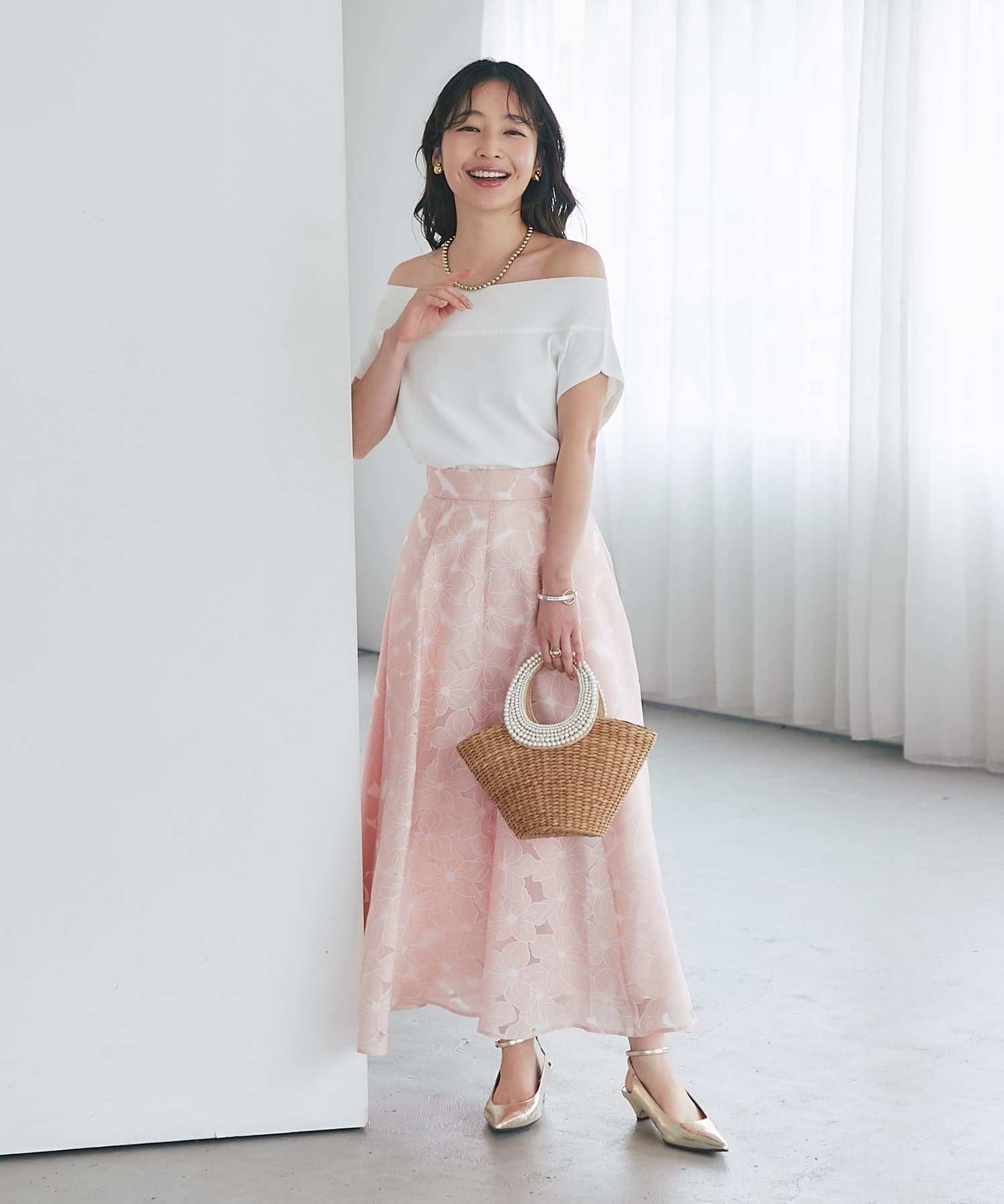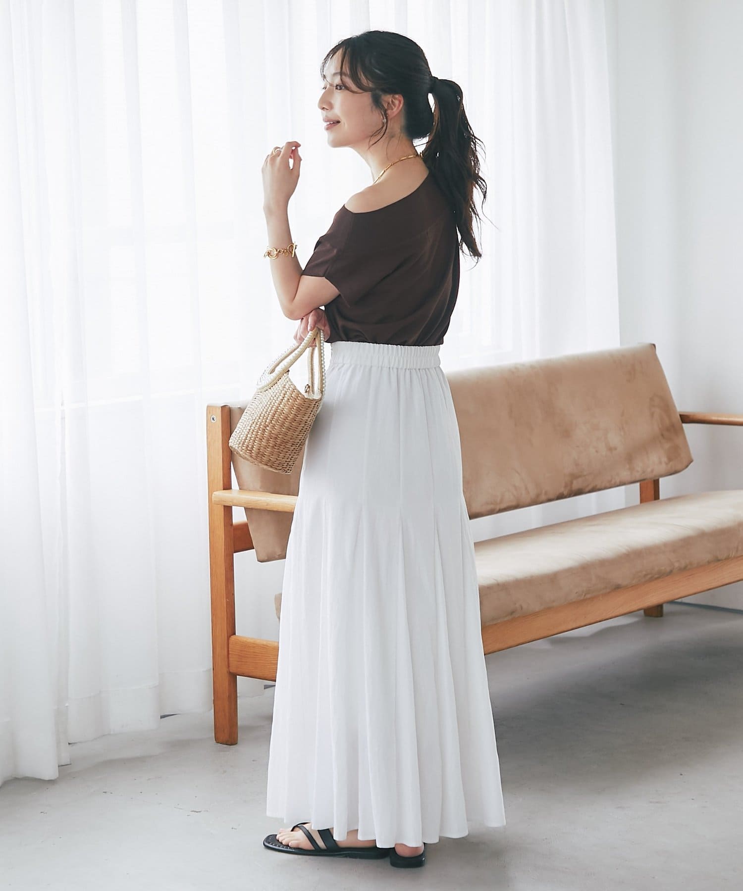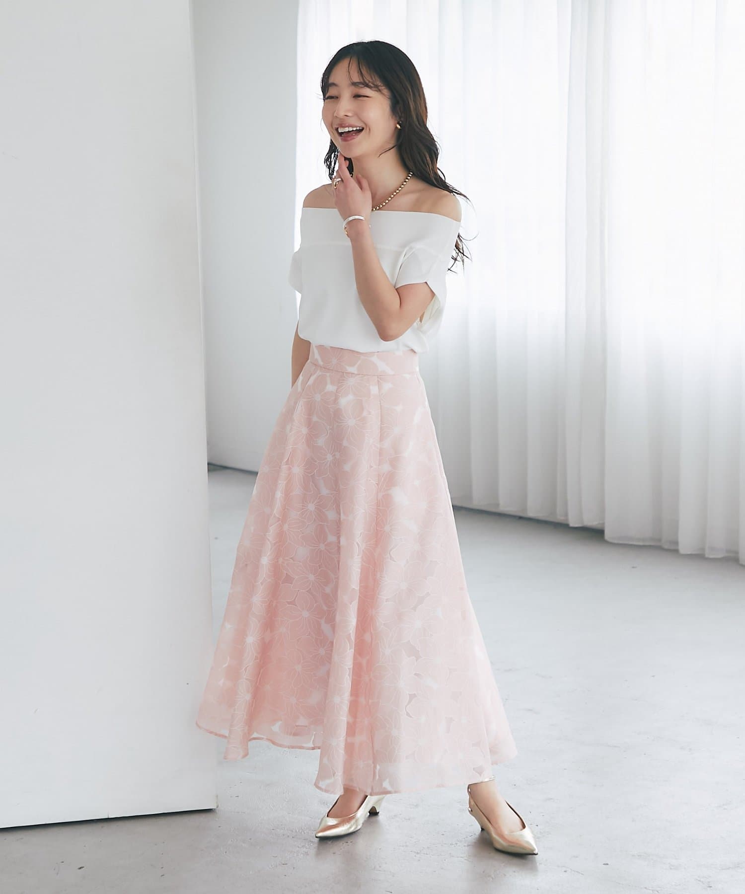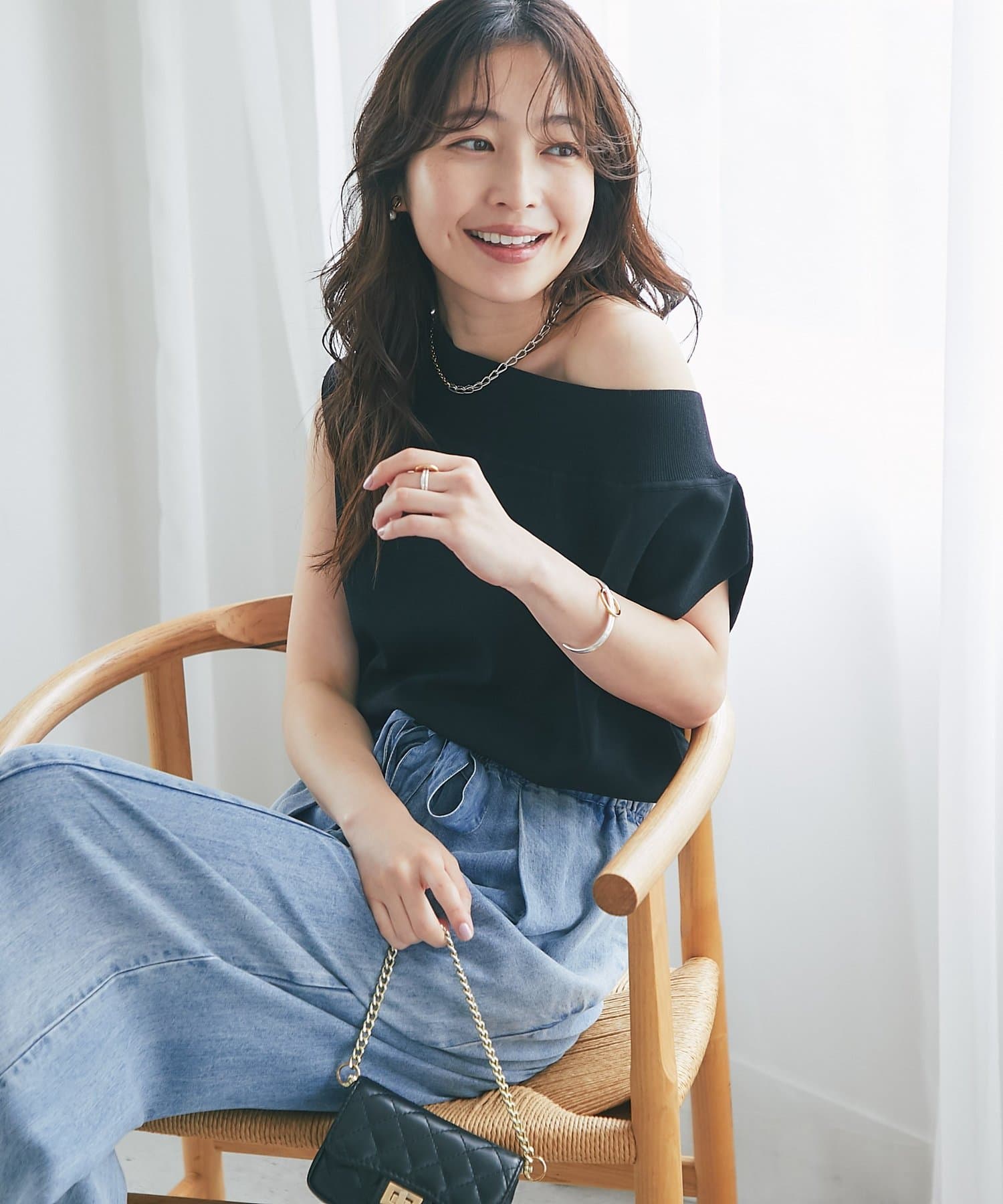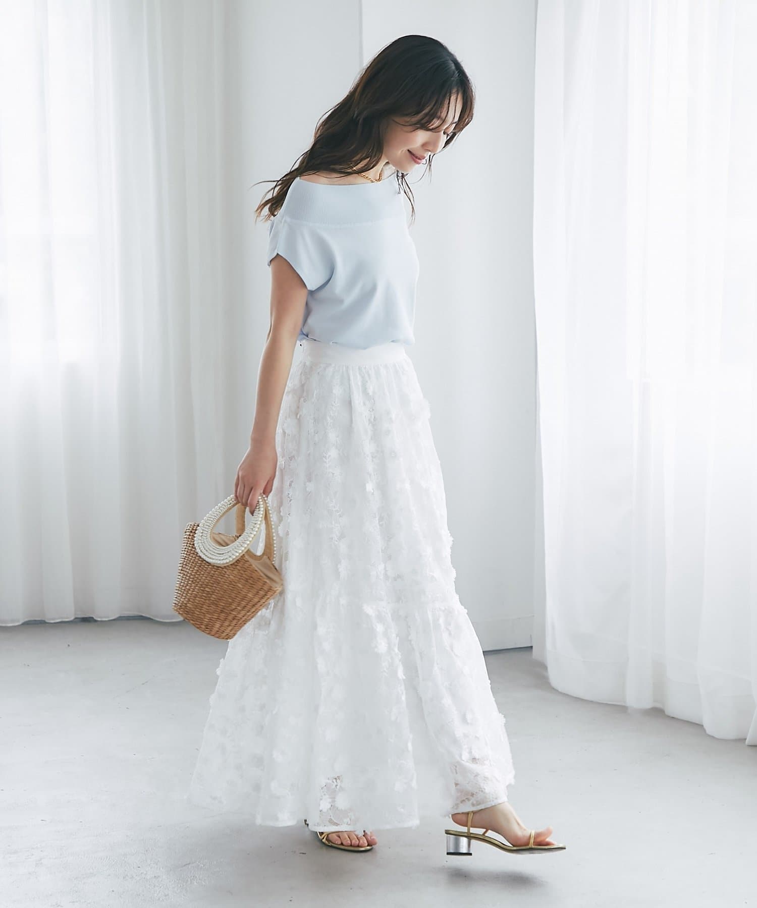 軽く肩を落とせばオフショルとしての着こなしも楽しめます。