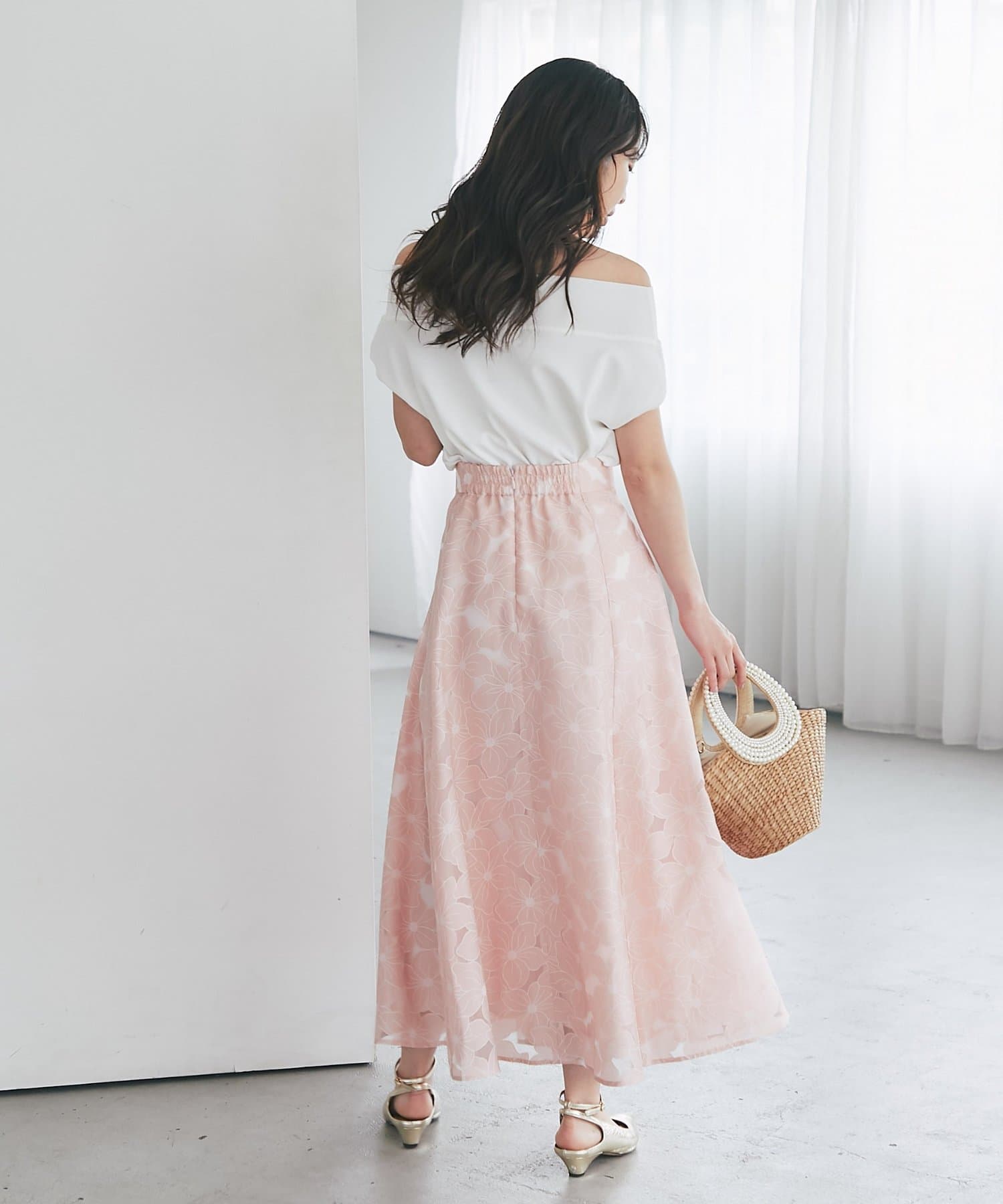 ボリュームのあるスカートに合わせて大人のお出かけスタイルにも◎