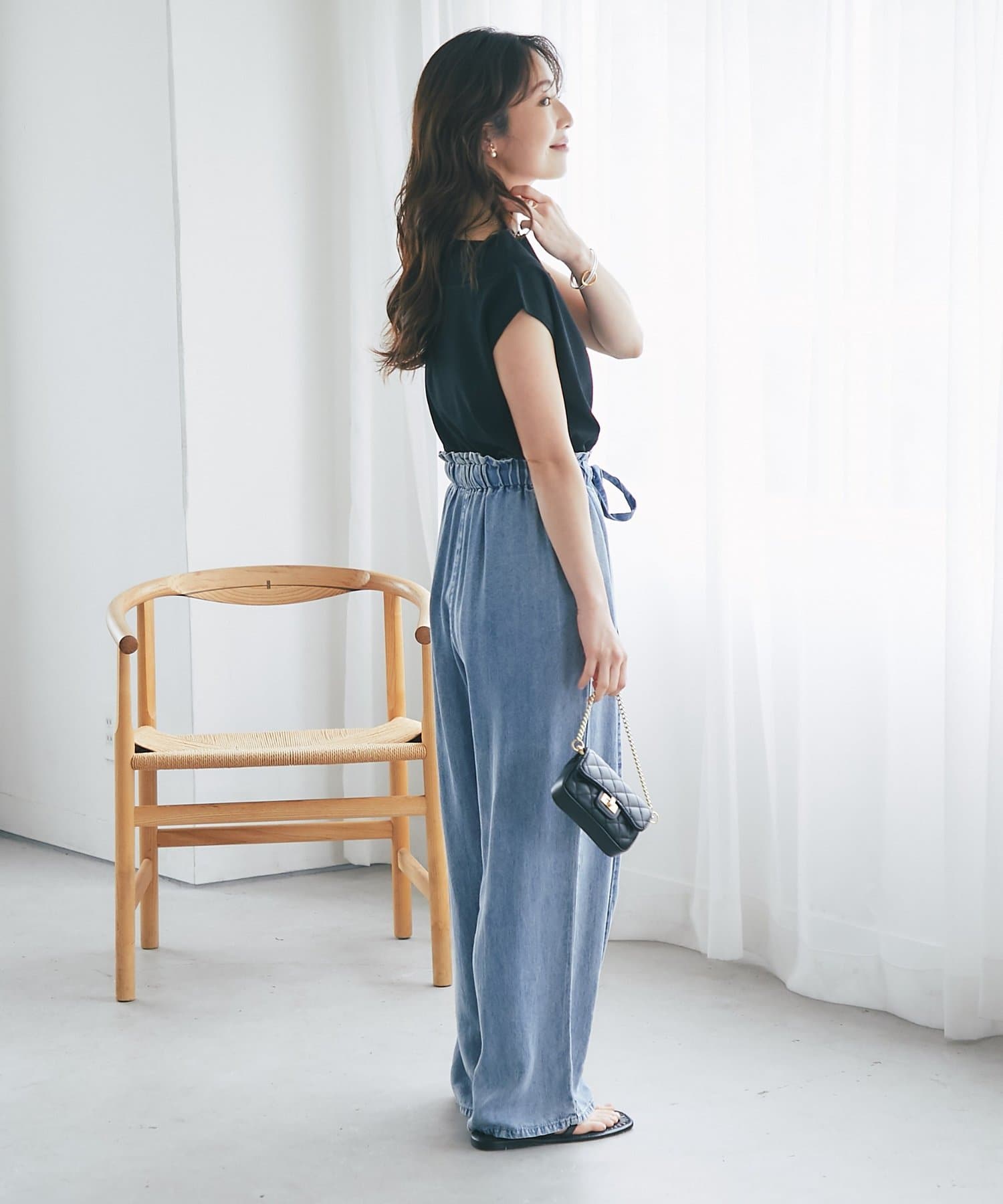 デニム合わせでカジュアルダウンするのもおすすめ。